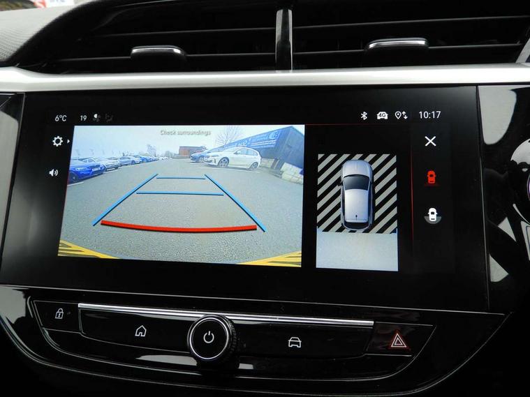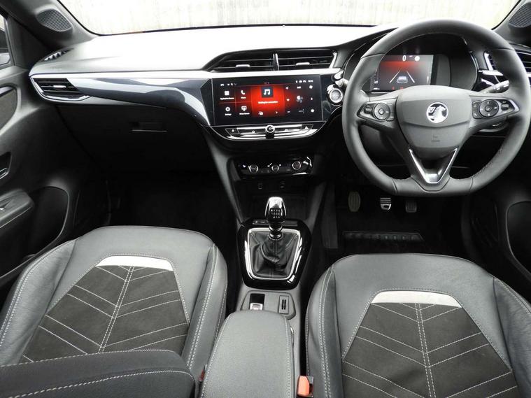 180 degree panoramic rear view camera, 2D/3D street level mapping, 7 inch digital instrument cluster display, Auto tele unit 3S vehicle communication system, Breakdown call (b-call), Central facia display with digital clock, outside air temperature and audio information, Cruise control with intelligent speed limiter, Driver drowsiness alert system, E-call, Engine oil life indicator, Enhanced traffic sign recognition, European coverage, Front and rear parking sensors, Front camera system, Instrumentation - Speedometer, rev counter, low fuel gauge warning light + water temperature gauge warning light, Lane departure warning, Lane keep assist, Lights on audible warning, MAP OTA updates, Multi function trip computer, POI (search), RDS with traffic programme, Service indicator, Side blind spot alert, Smartphone projection, Speed sensitive power steering, Speed sign recognition, Sport drive mode selector, Start/stop system, Vauxhall connect box, Voice recognition, Wireless Apple CarPlay/Android Auto, Wireless charger, Electronic returnless fuel system, Petrol Particulate Filter, Under body shield for aero, AM/FM stereo radio, Bluetooth A2DP audio streaming function (Advanced audio distribuition profile), DAB Digital radio, Multimedia Navi with 10-inch touchscreen, Rear USB port, Six speakers, Steering wheel audio, phone and cruise controls, USB type C port, 3rd brake light, Automatic headlamp levelling, Automatic headlight control system, Black door mirror housings, Black Griffin logo and vizor frame, Black lower side window mouldings, Body colour door handles, Body colour front and rear bumpers, Bonnet/headlight/wiper structure, Corsa lettering in tailgate, Dark tinted rear side windows + tailgate window, Electrically adjustable and heated door mirrors, Electrically folding door mirrors, Electrically operated front and rear windows with safety auto reverse and one touch up/down facility, Electrochromic automatic anti-dazzle rear view mirror, Glazed tailgate and heated rear window with wash/wipe facility, Hazard warning lights, Headlamps for left side traffic, High beam assist, High gloss black finish B pillar, Intelli-Lux Matrix LED Headlights, LED daytime running lights, LED front fog lights, LED tail lamp, Rain sensitive windscreen wipers, Rear fog lamp, Rear reversing lights, Rear side wing doors, Rear wiper, Shark fin aerial, Solar heat absorbing windscreen and windows, Sports front and rear body styling for upper and lower bumper design, Two speed windscreen wipers with variable intermittent wipe, Windscreen and side window demist vents, 12V power sockets, 3 bench rear seats in 2nd row, 3 spoke steering wheel, 4 speed fan with illuminated controls, 6 way manual adjustable co-driver seat height up/down, reach fore/aft, backrest upright/recline, 6 way manual adjustable driver seat with massage function height up/down, reach fore/aft, backrest upright/recline, 60/40 split folding rear seat, Alcantara upholstery, Black headliner, Cabin particulate filter - removes dust, airborne particles and pollen, Comfort front seats, Driver's seat lumbar support, Driver/passenger sunvisors with vanity mirrors + covers, Electronic climate control (ECC), Four adjustable facia vents, Front centre armrest with storage, Front cupholder, Front headrests, Height adjustable head restraints, Illuminated glovebox with lid, Interior courtesy light, Internal chrome door handles, LED ambient lighting, LED boot light, Polyurethane gear knob/lever, Reach and rake adjustable steering column, Rear cupholder, Rear headrests, Right hand drive (RHD), Single dome lamp with dual front reading lamps, Single front passenger seat, Standard floor mats, Two litre open door pockets, Winter pack - Corsa, 3 rear 3 point seatbelts, Anti-lock braking system (ABS), Cornering brake control, Deactivation switch for front passenger's airbag, Drag torque control, Driver and front passenger airbags, front seat side impact airbags, full size curtain airbags, EBD - Electronic brakeforce distribution, Electrical child lock system in rear door latch, Electronic parking brake, Electronic Stability Programme (ESP), Emergency brake assist, Enhanced automatic emergency braking, Forward collision alert, Front seatbelt unfastened audible warning and warning light, Hill hold and start system, ISOFIX child seat mountings incorporating top tether anchor points located on second row rear seats, Seatbelt pretensioners, Single tone horn, Straight line stability control, Traction control, Tyre deflation detection system, 2 keys one folding with integral remote, Electronically protected audio equipment, Engine deadlock and immobiliser, Freewheeling door locks, Keyless entry and start, Locking wheel nuts, Remote control central locking, Remote control security alarm system, Remote locking fuel filler flap, Steering column lock, Visible vehicle identification number, Silent black fascia with blanc banquise insert, 17" Diamond-cut hi-gloss black alloy wheels,