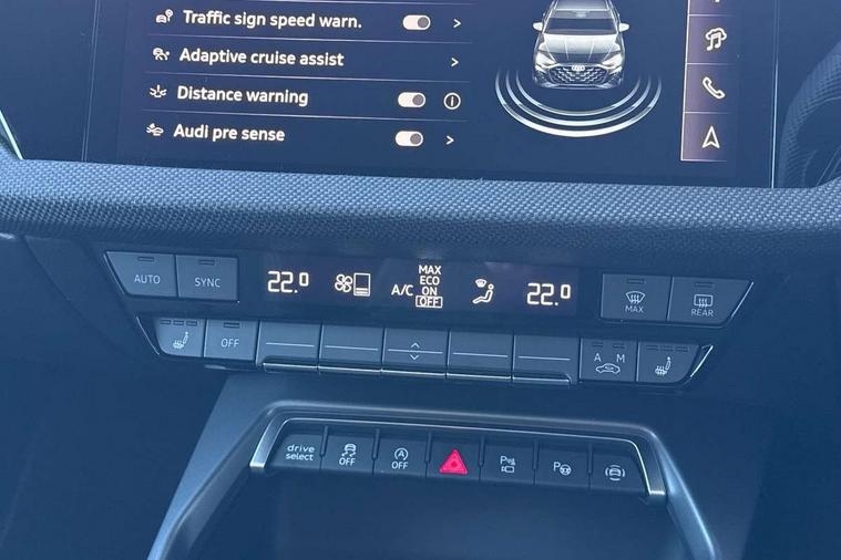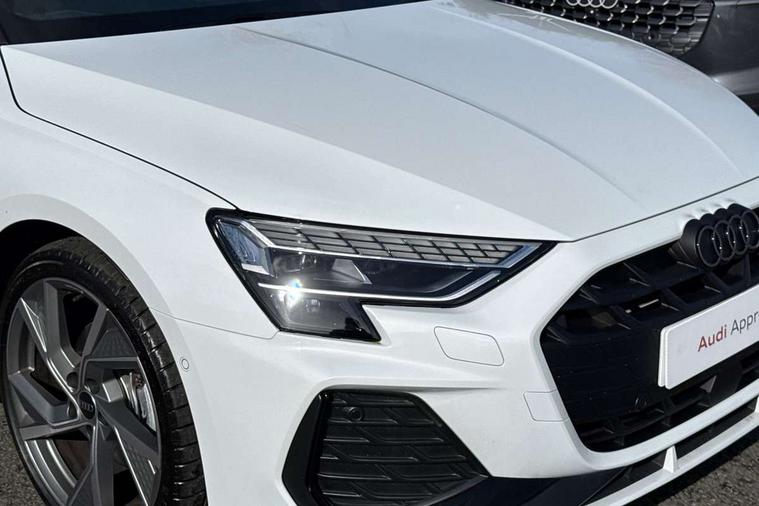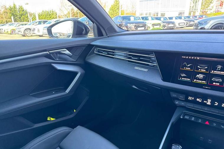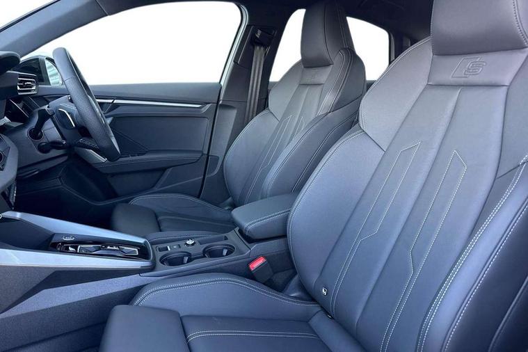 Adaptive cruise control (ACC), Adjustable speed limiter, Audi drive select (Auto, Comfort, Dynamic, Efficiency and Individual), Audi virtual cockpit plus - 12.3" full HD resolution dynamic digital instrument cluster, Automatic start/stop system with recuperation, Bluetooth interface, Camera based traffic sign recognition, Collision avoidance assistant, Driver attention and fatigue detection, e-Call (emergency call), Electromechanical power speed sensitive steering, Emergency assist, Intersection assist, Lane departure warning system, MMI Navigation Plus with high resolution 10.1" colour touch screen display, Park Assist with parking system Plus, Reversing camera, Service indicator, Smartphone interface with app store includes wireless Apple carplay, Android auto and Amazon alexa integration, Trip computer, Voice control system with natural language interaction, Sports suspension, Audi Phonebox light with wireless charging, Audi sound system - 10 loudspeakers including centre loudspeaker and subwoofer, DAB Digital radio, USB ports with charging function in the rear, Acoustic glass windscreen, All weather light, Anthracite grey Audi rings (front and rear), Audi beam uses LEDs to project the Audi logo onto the ground as you exit your A3, Auto dimming frameless rear view mirror, Automatic dynamic range control, Black accents front and rear bumpers, Black accents in the area of the Audi single frame grille, Black accents window trims strips, Dipped beam, main beam, position light and turning light, Electrically adjustable/heated/folding/auto dimming door mirrors with integrated LED indications + kerb view function for passenger side, Exterior model badging, Front and rear side air inlets in grained matt black with dark liquid chrome frame, Front electric windows, Front radiator grill in high gloss dark chrome, Heat insulating glass windscreen, Illuminated door sills with aluminium inserts at the front with S logo, Intersection light, LED 3rd brake light, LED brake lights, LED daytime running x3, LED headlights with LED rear lights and dynamic rear indicators, LED rear number plate lights, LED reverse light, LED tail lights, Light and rain sensors, Manoeuvring light, Motorway light, Privacy glass - dark tinted rear window, rear door and side windows, Rear boot, Rear diffuser and grill in grained matt black with inlay in dark liquid chrome, Rear electric windows, Rear side wing doors, Side sill trim in dark liquid chrome, Static cornering light, 12V socket and storage compartment in front centre console, 3 seat bench in 2nd row, 3 spoke flat bottomed leather multifunction sport steering wheel with gear shift paddles, 3-zone deluxe automatic air conditioning, 4 way electrically adjustable lumbar support for driver and front passenger, 40/20/40 split folding rear seat bench, Black cloth headlining, Black front and rear floor mats, Front and rear centre armrest in artificial leather with contrasting stitching on armrests and instrument panel, Front and rear headrests, Heated front seats, Height and reach adjustable steering wheel, i-Size child seat mounting on the front passenger side and outer rear seats, i-Size and top tether on the outer rear seats, Manual boot compartment lid, Manually adjustable front seats, Rear centre armrest with cupholder, S badging on the steering wheel, Seat side bolsters, Single front passenger seat, Stainless steel pedals and front footrest in black, Twin leather upholstery with front sports seats S embossed logo, Aluminium interior elements pack - A3, 3x3 point rear seat belts, Driver and front passenger airbag with passenger airbag deactivation, Electronic Stabilisation Control (ESC) including ABS, ASR and EDL, First aid kit with warning triangle and 2 safety vests, Front side airbags with head airbags and interaction airbag, Hill hold assist, Pre-sense front with pedestrian and cyclist detection, Seatbelt monitoring, Tyre pressure loss indicator, Anti theft alarm, Anti-theft wheel bolts, Electronically operated child locks, Immobiliser, Black dashboard,