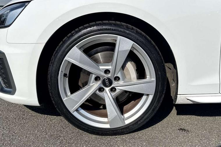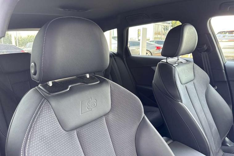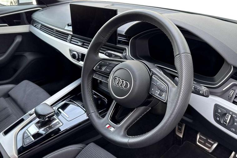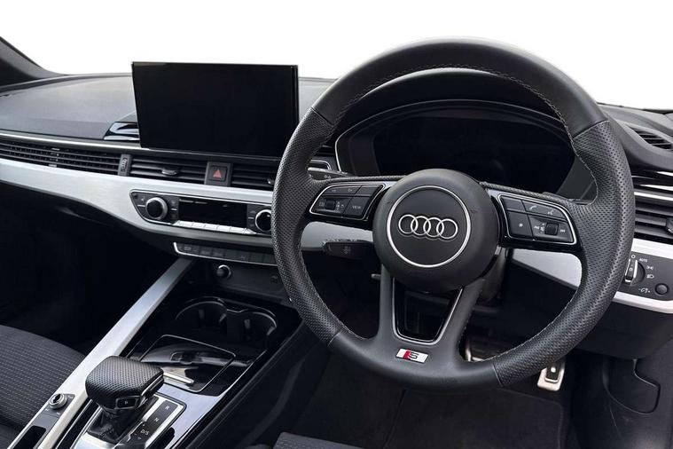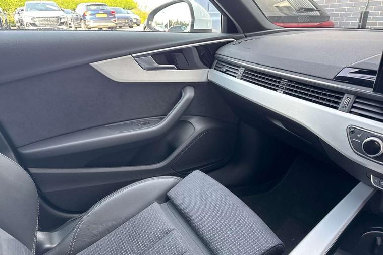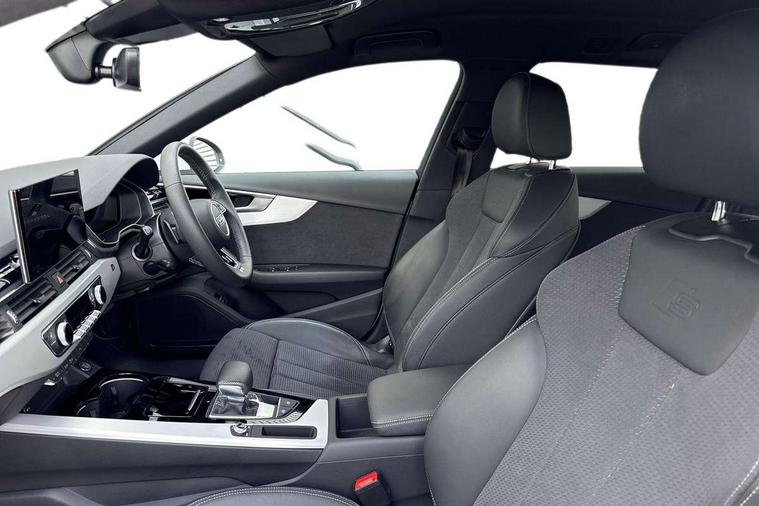 Audi connect safety and service (e-call), Audi drive select, Audi smartphone interface, Audi virtual cockpit, Automatic start-stop system with coasting functionality and efficiency programme, Bluetooth interface, Camera based traffic sign recognition, Electromechanical power steering, Email, calendar and text messages displayed via MMI, Front and rear parking sensors, Lane departure warning, MMI Navigation plus with MMI touch includes 10.1" high resolution colour MMI display, 3D map, Power operated tailgate, Rear view camera, Voice control system, 54 litre fuel tank, Sports suspension lowered by 23mm, 2 USB charging ports, 8 passive loudspeakers, DAB digital radio reception, Aluminium roof rails, Auto dimming rear view mirror, Body colour door handles, Body colour front spoiler lip, Body colour side sill trim, Body coloured door mirrors, Electric adjustable/heated/folding door mirrors with auto dimming, Grained matt black side air inlets with matt aluminium silver inlay, High beam assistant, Honeycomb structure radiator grille in grained matt black, LED headlights with LED rear lights + dynamic rear indicators + headlight adjustment and high beam, turning light + LED daytime running lights, LED third brake light, Matt aluminium silver tailpipe trim, Privacy glass, Rain and light sensors, Rear side wing doors, Rear wiper, S Line badges on the front wings, S line front and rear bumpers with side skirts, S Line rear diffuser in matt anthracite black with trim strip in matt aluminium silver, S Line roof edge spoiler, Variable intermittent front wash/wipe, Windscreen with acoustic glazing, 3 spoke high multi-function sports leather steering wheel grips in perforated leather with S badging including paddle shift, 4 way electric lumbar support for driver and front passenger, 40/20/40 split folding 3 rear seat bench in 3 parts with rear centre armrest, Black carpets, Black cloth headlining, Black perforated leather gearknob, Contrast stitching on seats, steering wheel and gear lever gaiter, Deluxe 3 zone electronic climate control, Electric load area cover, Front and rear head restraints, Front centre armrest, Heated front seats, Illuminated door sill trims with S logo, ISOFIX child seat mounting and top tether, Manual seat adjustment, Single front passenger seat, Stainless steel pedals and foot rest, High gloss package - A4, LED Interior light pack - A4/S4, 3 rear seatbelts, 6 airbags - Driver, front passenger, curtain and side windows, Attention and drowsiness assist, Electronic Stabilisation Control (ESC) including ABS, ASR and EDL, Hill hold assist, Multi collision brake assist, Pop-up bonnet for pedestrian protection, Pre sense city, Rear door child safety locks, Seatbelt monitoring, Warning triangle and first aid kit, Anti theft alarm, Anti theft wheel bolts, Central locking, Keyless Go, Matt brushed aluminium inlays, Tool kit, Tyre repair kit,