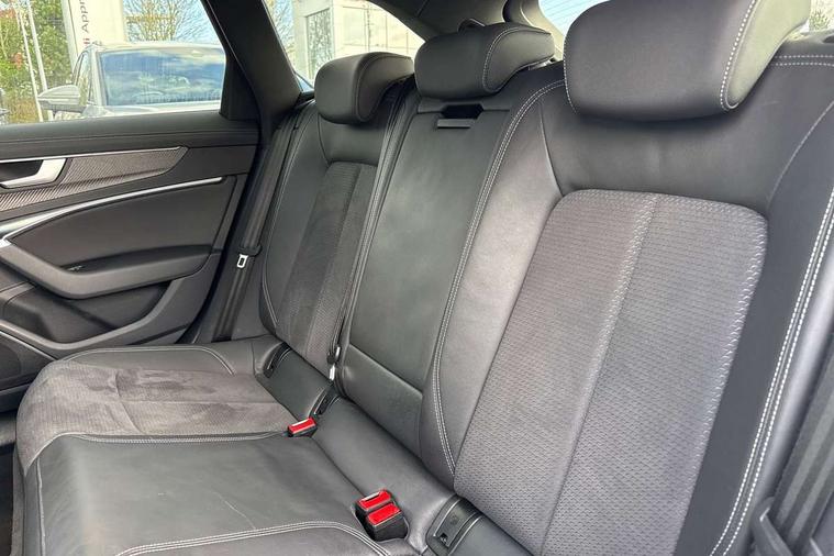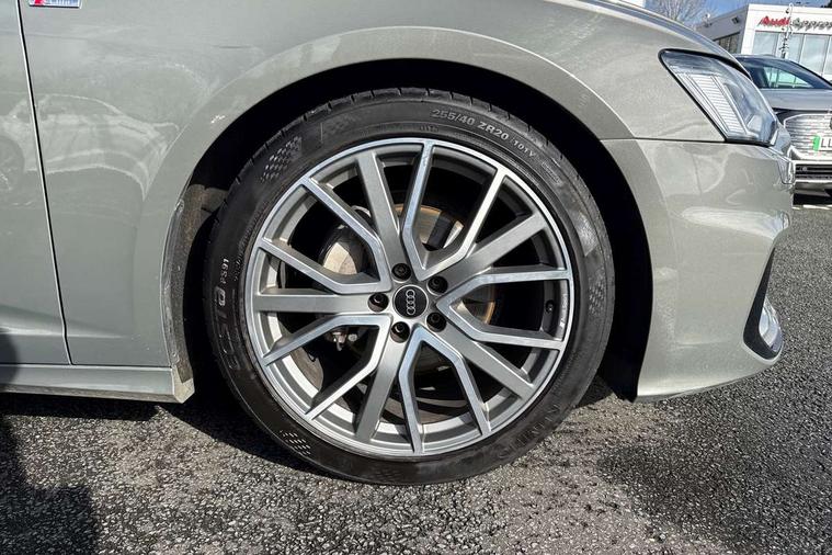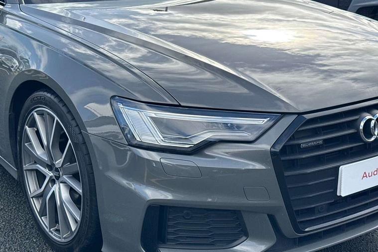 7" high resolution colour driver information display system, Audi connect safety and service (e-call), Audi connect with Amazon Alexa Integration, Audi drive select, Audi parking system plus - acoustic and visual park assist system for front and rear, Automatic start/stop system with coasting functionality, Bluetooth interface, Lane departure warning system, Power operated tailgate, Progressive steering, Rear view camera, Service interval indicator, Smartphone interface includes wireless Apple carplay/Android Auto, Voice control system, 12V Mild hybrid, 24 litre AdBlue tank, Diesel particulate filter, Quattro on demand, Sports suspension, Audi front music interface, Audi sound system, Auxiliary input socket, DAB Digital radio, USB connection, All weather LED headlights, Black roof rails, Electric front/rear windows, Frameless auto dimming interior rear view mirror, Front intermittent wipers, Gloss black highlights on the exterior area of the Audi Single frame, Gloss black highlights on the front and rear bumpers, Gloss black highlights on the radiator grille, Gloss black highlights on the side windows trim strips, Headlight washers, Heat insulating darkened glass in side and rear windows, Heat insulating glass in windshield, LED rear lights, LED signature front daytime running light, LED third brake light, Matt black rear diffuser with diffuser strip and tailpipes in chrome, Matt black side air intake grille with inlay in matt aluminium, Privacy glass, Rain and light sensors, Rear roof spoiler, Rear side wing doors, Rear wiper, 2 zone deluxe electronic climate control, 4 way electric lumbar support for driver and front passenger, 40/20/40 split folding 3 rear seat bench in 3 parts with rear centre armrest, Black cloth headlining, Black front and rear carpet floor mat, Black steering wheel insert, Electrically adjustable front seats with driver memory, Front centre armrest, Front head restraints, Heated front seats, Height/reach adjust steering wheel, Illuminated door sill trims with S logo, Illuminated sun visors with vanity mirrors, ISOFIX child seat mounting and Top Tether with front passenger airbag deactivation, Leather gear knob, Luggage compartment system, Rear headrests, Single front passenger seat, Stainless steel pedals and foot rest, LED Interior Ambient Lighting Pack - A6, Non smoking pack - A6, Technology pack - A6, 3 point seatbelts on all seats, Airbags - Front side, front and rear including head, Audi pre-sense front, Black seatbelts, EBD - Electronic brakeforce distribution, Electromechanical parking brake, Electronic Stability Control (ESC) including ABS, ASR and EDL, Extended pedestrian protection measures, Manual child proof rear door locks, Seatbelt monitoring, Tyre pressure warning light, Warning triangle and first aid kit, Anti theft alarm with tow away protection, Anti-theft wheel bolts and wheel loosening detection, Immobiliser, Keyless Go, Remote central locking, Carbon twill inlays, 20" 5 V spoke star design Audi sport cast aluminium alloy wheels in matt titanium look,