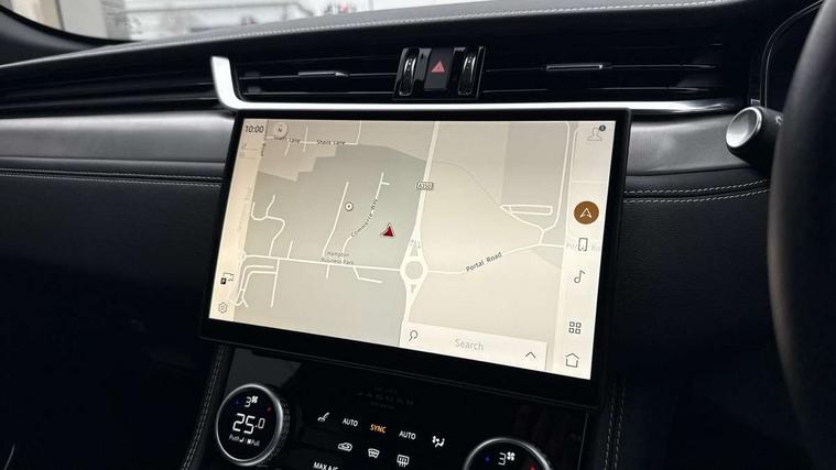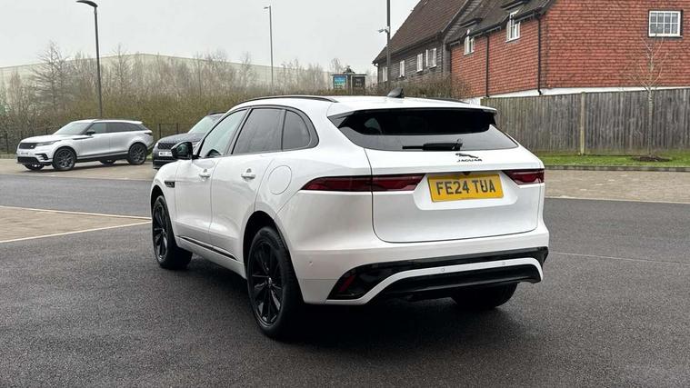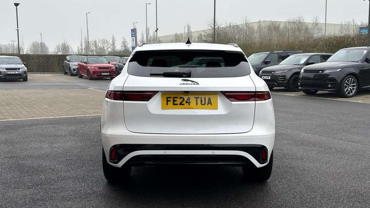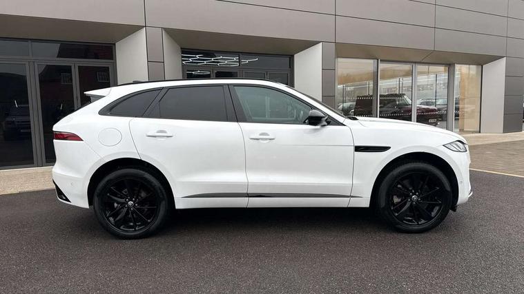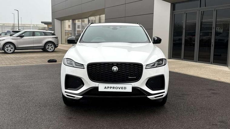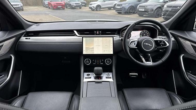 11.4" touchscreen, Android Auto, Apple car play, Blind spot assist, Bluetooth connectivity, Clear exit monitor, Driver alert system, Driver condition monitor, eCall emergency call system, Eco driving style assistant, Electric power assisted steering, InControl remote, Interactive driver display digital with 12" TFT display, Jaguar Toggle shift selector, Lane departure warning system, Lane keep assist, Outside temperature gauge, Personalisation profile management, Pivi pro connected navigation system with app interface and media storage, Pro services and wifi hotspot, Push button starter, Rear traffic monitor, Service interval indicator, Speed proportional steering, Start up sequence with movement in dials and lighting, Traffic sign recognition with adaptive speed limiter, Trip computer, Voice control system, Wireless device charging, 7 kW onboard charger, 8 speed automatic transmission, AC/DC charging, Adaptive dynamics, All terrain progress control, All Wheel Drive (AWD), Configurable dynamics, Home charging cable, Open differential with torque vectoring by braking, Public charging cable, AM/FM radio, Bluetooth streaming, DAB Radio (Digital Audio Broadcasting), Dynamic volume control, InControl apps, InControl protect, iPod integration, 3 flash lane change indicators, AHBA and animated directional indicators, Approach Illumination, Auto dimming rear view mirror, Automatic headlights, Electric heated/power fold memory door mirrors with approach lights and auto dimming driver side, Electric windows with one touch open/close and anti trap, F-Pace and R Dynamic badge, Green tinted glass, Heated front windscreen + heated washer jets, Heated rear window with timer, Jaguar script and leaper, LED High level third brake light, LED tail lights, Metal load space scuff plates, Non acoustic front windscreen, P400e AWD badge, Privacy glass (rear side windows and rear screen), R Dynamic badge on side door, Rain sensor windscreen wipers, Rear fog lights, Rear metal tread plates, Rear side wing doors, Rear wiper, Trailer stability assist, Variable front intermittent wipers, 12V power point front, 3 rear headrests, 3 seat bench in 2nd row, Additional power sockets - Two additional USB sockets in rear centre console and one 12V socket in trunk, Air distribution speed, Bright metal foot pedals, Centre armrest console, Centre console with side storage, Configurable cabin lighting, Deletion loadspace storage rails, Door sill tread plates, Fold flat front seats, Front centre armrest with storage compartment, Front door storage space, Glovebox finisher with jaguar script, Heated steering wheel, Hooks in loadspace, Illuminated glovebox, Interior front door handles with separate locking switches, ISOFIX on outer rear seats, Jaguar sense, Leather steering wheel, Luggage tie downs in loadspace, Mist sensing, Multifunction steering wheel, Overhead lighting console, Overhead stowage for sunglasses, Passive front head restraints, Premium carpet mats, Rear air vents, Rear armrest with twin cupholders, Rear centre headrest, Rear door storage space, Reversible boot floor, Satin chrome gearshift paddles, Shopping bag hook, Single front passenger seat, Sunvisors with illuminated vanity mirrors, Twin front cupholders with cover, Online Pack with data plan - F-Pace, 380mm front brakes and 325mm rear brakes, 3x3 point rear seatbelts, ABS, All surface progress control (ASPC), Brake pad warning light, DSC - Dynamic Stability Control, Electric parking brake (EPB), Emergency brake assist, Front airbags with passenger seat occupant detector, Front and rear seatbelt reminder, Front side airbags, Full length side window curtain airbag, Hill launch assist, Power operated child locks, Traction control, Tyre pressure monitoring system, Immobiliser, Keyless entry, Keyless Start, Locking wheel nuts, Perimeter alarm, Remote central locking, Valet mode,