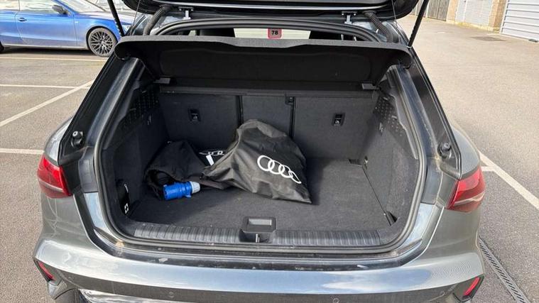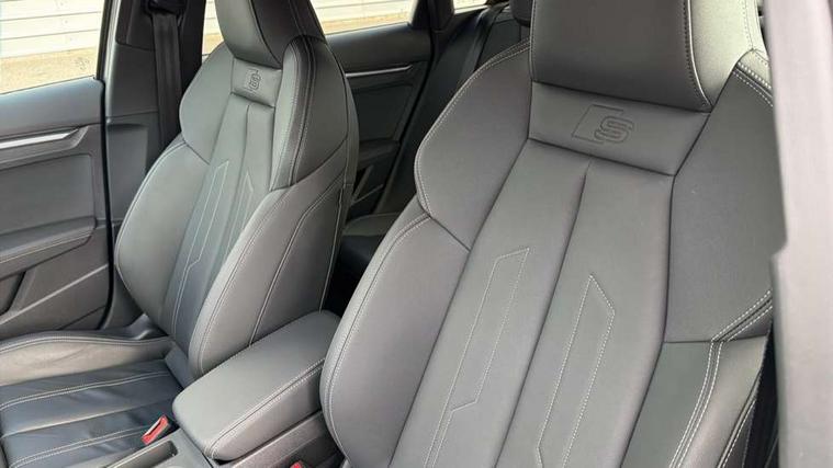 Adjustable speed limiter, Audi drive select, Audi smartphone interface with app store includes wireless Apple carplay, Android auto and Amazon alexa integration, Audi virtual cockpit plus - 12.3" full HD resolution dynamic digital instrument cluster, Automatic start/stop system with recuperation, Bluetooth interface, Camera based traffic sign recognition, Collision avoidance assistant, Cruise control, Distraction and Fatigue warning, e-Call (emergency call), Electromechanical power speed sensitive steering, Emergency assist, Lane departure warning system, MMI Navigation Plus with high resolution 10.1" colour touch screen display, Park Assist with parking system Plus, Service indicator, Trip computer, Voice control system with natural language interaction, 3 pin 10 amp domestic charging cable, CCS socket for DC charging, Charging cable for public charging, mode 3 (type 2), 32 A, Compact charging system, Industrial connector CEE 32 A, 230 V, length 1.6 m, Standard suspension, Type 2 socket for AC charging, Audi Phonebox light with wireless charging, Audi sound system - 10 loudspeakers including centre loudspeaker and subwoofer, DAB Digital radio, USB ports with charging function in the rear, Acoustic glass windscreen, All weather light, Aluminium window trim, Auto dimming frameless rear view mirror, Automatic dynamic range control, Body colour exterior mirrors, Chrome exhaust tailpipes, Dipped beam, main beam, position light and turning light, Electrically adjustable/heated/folding/auto dimming door mirrors with integrated LED indications + kerb view function for passenger side, Exterior model badging, Front and rear side air inlets in grained matt black with dark liquid chrome frame, Front electric windows, Front radiator grill in high gloss dark chrome, Heat insulating glass windscreen, Illuminated door sills with aluminium inserts at the front with S logo, Intersection light, LED 3rd brake light, LED brake lights, LED daytime running x3, LED headlights with LED rear lights and dynamic rear indicators, LED rear number plate lights, LED reverse light, LED tail lights, Light and rain sensors, Manoeuvring light, Motorway light, Privacy glass - dark tinted rear window, rear door and side windows, Rear diffuser and grill in grained matt black with inlay in dark liquid chrome, Rear electric windows, Rear side wing doors, Rear wiper, S line bumpers, S roof spoiler, Side S line emblems on front wings, Side sill trim in dark liquid chrome, Static cornering light, 12V socket and storage compartment in front centre console, 3 seat bench in 2nd row, 3 spoke flat bottomed leather multifunction sport steering wheel with gear shift paddles, 3-zone deluxe automatic air conditioning, 4 way electrically adjustable lumbar support for driver and front passenger, 40/20/40 split folding rear seat bench, Black cloth headlining, Black front and rear floor mats, Convenience auxiliary air conditioning, Front and rear centre armrest in artificial leather with contrasting stitching on armrests and instrument panel, Front and rear headrests, Heated front seats, Height and reach adjustable steering wheel, Manual boot compartment lid, Manually adjustable front seats, Rear centre armrest with cupholder, S badging on the steering wheel, Seat side bolsters, Single front passenger seat, Stainless steel pedals and front footrest in black, Twin leather upholstery with front sports seats S embossed logo, Aluminium interior elements pack - A3, Multi-coloured LED interior lighting package with Multi-coloured contour lighting of instrument panel - A3, 3x3 point rear seat belts, Acoustic vehicle alerting system, Driver and front passenger airbag with passenger airbag deactivation, Electronic Stabilisation Control (ESC) including ABS, ASR and EDL, First aid kit with warning triangle and 2 safety vests, Front side airbags with head airbags and interaction airbag, Hill hold assist, Pre-sense front with pedestrian and cyclist detection, Seatbelt monitoring, Tyre pressure loss indicator, Anti theft alarm, Anti-theft wheel bolts, Electronically operated child locks, Immobiliser, Remote central locking with safelock, Black dashboard, Inlay in dark aluminium spectrum, Tyre repair kit,