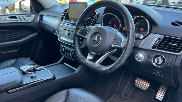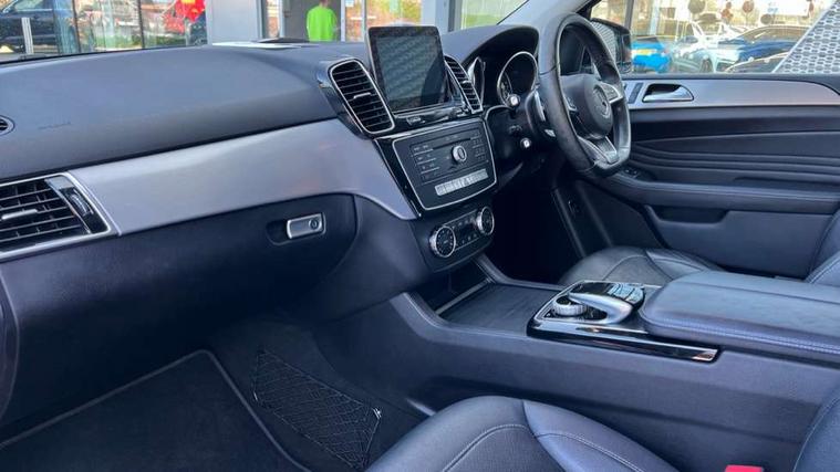 Active park assist with parktronic system, Attention assist, Bluetooth interface for hands free telephone, Chequered flag design instrument cluster, Collision prevention assist plus, COMAND online HDD Nav with media interface, radio/CD/DVD/MP3, 8" screen, linguatronic voice control, 10GB music register, memory card slot, Crosswind Assist, Easy-pack tailgate - Powered opening/closing automatically, Multi function trip computer, Outside temperature gauge, Remote boot release, Service indicator (ASSYST PLUS), Smartphone integration with Apple CarPlay, Speed limit and traffic sign assist, Speed sensitive power steering, Surround camera system, Diesel particulate filter, DAB Digital radio, SD card slot, USB/aux input socket, Adaptive brake lights, Aluminum running boards with rubber studs, AMG bodystyling, Auto dimming door mirrors, Auto dimming rear view mirror, Automatic headlights with high beam assist, Body coloured bumpers, Chrome door handles, Door sill panels, Electric folding door mirrors, Electric front/rear windows with one touch/auto up/down, Electric heated + adjustable door mirrors, Electric panoramic sunroof, Headlamp assist, Headlight washers, Heated windscreen wash system, Intelligent LED headlight system with active cornering lights, LED daytime running lights, LED rear lights, Privacy glass, Rain sensor windscreen wipers, Rear wash/wipe, 1/3 to 2/3 split folding rear seats, 12V socket in front and rear, 3 spoke flat bottom AMG steering wheel in nappa leather, 4 way electrically adjustable lumbar support for front passenger seat, 4-way lumbar support for drivers seat, 6 way electric front seats, Adjustable front and rear headrests, Ambient lighting, AMG sports seats, AMG velour floor mats, Auto Mercedes-Benz child seat recognition sensor, Centre armrest and door handle illumination, Courtesy light switch-on with door unlocking, Door centre panels in artico man-made leather, Front and rear door pockets, Front centre armrest with storage compartment, Front cupholders, Front height/angle adjust neck pro active head restraints, Front seat back map pockets, Heated front seats, Height/reach adjust steering wheel, Illuminated glovebox, Interior rear light/integral reading lights, Isofix rear child seat fastenings, Leather gear knob, Lockable glovebox, Luggage compartment cover, Multi function steering wheel, Rear armrest with storage + cupholders, Sports pedals with stainless steel surfaces and rubber studs, Steering wheel gearshift paddles, Storage compartment under load area floor, Sunvisors with illuminated vanity mirrors, THERMOTRONIC automatic climate control, Memory package - GLE, 3x3 point rear seatbelts, ABS with Brake Assist, Active bonnet, Adaptive brake system, Brake calipers with Mercedes-Benz lettering + perforated brake discs, Child proof door locks, Downhill speed regulation (DSR) with switch, Drivers knee airbag, Dual stage driver/passenger airbags, Electronic four wheel traction control, Electronic parking brake, ESP with ASR, Front and rear curtain airbags, Front and rear pre-tensioning and force limiting seatbelts, Front side airbags, Hill start assist, Pre-Safe anticipatory safety system, Rear seatbelt warning indicator, Tyre pressure monitoring system, Warning triangle and first aid kit, Alarm system/interior protection/immobiliser, Keyless ignition, Locking wheel bolts, Remote central locking, Collapsible spare wheel,
