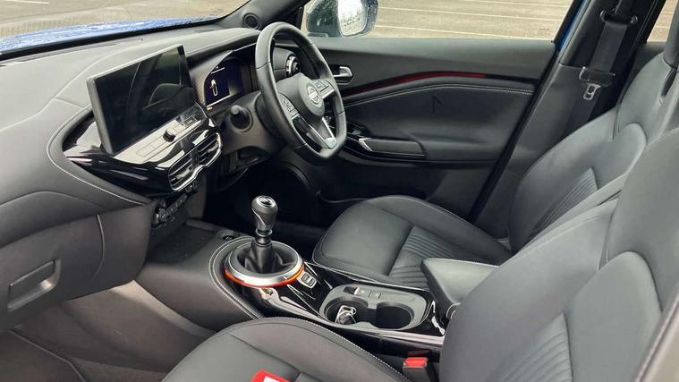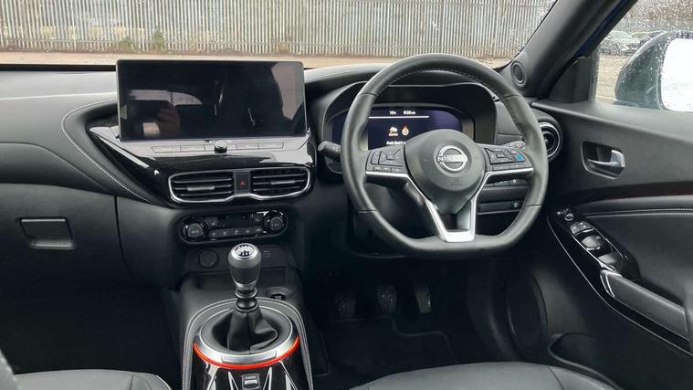12.3" full colour TFT screen combimeter, Drive modes select (Eco, normal and sport), Emergency and breakdown call, Front parking sensor, Idle start/stop system, Intelligent driver alert system, Intelligent lane intervention, Lane departure warning system, Nissan connect 12.3" touch screen entertainment system, Nissan connect nav with TomTom traffic, Nissan connect services, Outside temperature sensor, Power Steering, Rear parking sensor, Stop/start button, Traffic sign recognition, Trip computer, Voice recognition, WiFi connectivity, Wireless Apple CarPlay and Google Android auto, Wireless Smartphone charger, 10 Bose speakers 6 speakers and 2 headrest speakers for driver/passenger seats, 2 X Rear console USB port, Bluetooth system, USB, Aux-in and 12V socket, Bose personal sound stage control, DAB Digital radio, Auto dimming frameless rear view mirror, Automatic hazard signal with emergency stop signal, Body colour door handles, Electrically adjustable door mirrors with integrated indicators, Follow me home headlights, Front and rear electric window with one touch driver window, Heated and auto folding door mirrors, High beam assist, LED 3rd brake light, LED daytime running lights, LED front fog lights, LED headlamps, LED rear fog lamp, LED rear lamps, One touch passenger window, Rain sensor windscreen wipers, Rear privacy glass, Rear side wing doors, Rear wiper, Roof spoiler, Shark fin roof antenna in solid Black, Three blink turn signal, 3 height adjustable rear headrests, 3 seat bench in 2nd row, 60/40 split folding rear seat, Automatic climate control, Card holder on driver sunvisor, Door ambient lighting, Driver seat back pocket, Driver side rear coat hanger, Driver/passenger sunvisors and vanity mirrors, Front and rear cabin lights, Front armrest, Front door pockets with bottle holders, Front head restraints, Front/rear passenger grab handles, Gear console ambient circle lighting, Height adjustable driver's seat, Internal chrome door handles, Leather gearshift knob, Luggage board, Luggage space lighting, Monoform sporty seats, Multifunction steering wheel, Passenger seat back pocket, Rear door bottle holders, Single front passenger seat, Smooth synthetic leather steering wheel, Synthetic leather kneepad, Synthetic leather upholstery, Telescopic steering wheel adjustment, Two cupholders in front centre console, Two rear isofix child seat anchorage points with top tether, Welcome light and console tray ambient lighting, Advanced safety shield pack - Juke Manual, Heat pack with height adjustable passenger seats - Juke, ABS with EBD and brake assist, Active ride control, Active Trace Control, Driver and passenger airbags, Driver and passenger side airbags, Electric handbrake with auto hold function, Electronic Stability Programme (ESP), Front and rear curtain airbags, Height adjustable seatbelts, Hill start assist, Intelligent emergency braking with pedestrian and cyclist recognition, Rear door child safety locks, Seatbelt reminder for driver/front passenger and rear seats, Three 3 point rear seatbelts, Traction control, Tyre pressure monitoring system, VDC Dynamic Vehicle Control, Alarm, Immobiliser, Intelligent key and start push button with walk away lock and approach unlock functions, Remote central locking, 19" Alloy wheels, Tyre puncture repair kit,