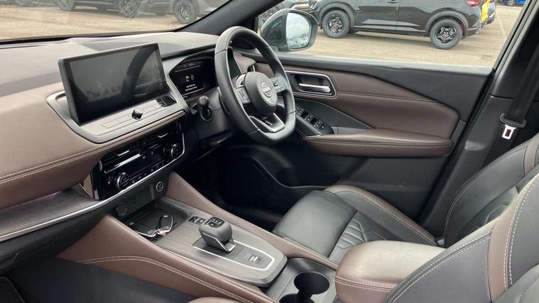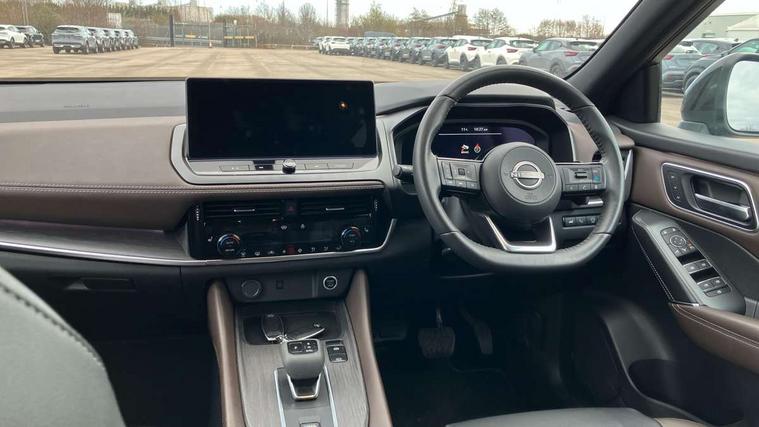 2 front USB-C ports, 2 rear USB-C ports, 360 degree Intelligent around view monitor with moving object detection, Advanced windscreen head up display, Blind spot intervention, Blind spot warning, Drive assist custom mode, Drive modes (sport, normal, eco), Driver drowsiness and attention warning, Electric speed sensitive power steering, Emergency and breakdown call, Emergency lane keep assist, Emergency Stop Signal (ESS), Engine start/stop button, Event data recorder, Front and rear parking sensors, Full Digital 12.3" TFT Digital Combimeter, Google virtual personal assistance, Hands free power tailgate, Idle stop/start system, In-car WIFI hotspot, Intelligent Cruise control (ICC), Intelligent forward collision warning, Intelligent speed assist, Lane departure warning system, Nissan connect 12.3 inch touchscreen infotainment system, Nissan connect navigation with google maps, Nissan connect services 2.0 (Google Automotive System), Outside temperature sensor, Rear cross traffic alert, Reversing detection, Traffic jam pilot, Wireless Apple CarPlay/Android Auto, Wireless charging pad, Limited slip differential, 6 speakers, AM/FM audio system with DAB, Bluetooth audio streaming, Auto dimming frameless rear view mirror, Auto rear wiper when reversing, Body colour mirror caps, Body coloured door handles, Bodyside mouldings, Chrome side window finisher, Electric auto folding door mirrors, Electrically adjustable and heated door mirrors with LED turn indicator, Follow me home headlights, Glossy black bumper inserts and fenders, High beam assist, Intelligent auto headlights, LED 3rd brake light, LED daytime running lights, LED headlights with adaptive driving beam, LED rear lights, LED sequential turn lights, One touch front and rear electric windows with remote opening and closing, One touch passenger window, Partially body coloured bumpers, Rear privacy glass, Rear roof spoiler, Rear side wing doors, Rear styling plate, Reverse tilting door mirrors, Shark fin antenna, Silver roof rails, Splash free rain sensing wipers, Super RED rear LED lights, Super UV and infrared cut glass, Thermaclear heated windscreen, 3 bench rear seats in 2nd row, 3 rear headrests, 60/40 split folding rear seat bench, Chrome interior door handles, Dark headlining, Driver seat back pocket, Dual zone automatic climate control with pollen filter, Fixed Glass roof with electric sunshade, Front door with bottle holders, Heated front seats, Heated steering wheel, Height adjustable front headrests, Luggage board system, Luggage space lighting, Multifunction steering wheel, Passenger seat back pocket, Quilted/PVC upholstery, Rear door bottle holders, RGB ambient light (Full area coverage), Single front passenger seat, Smooth leather steering wheel, Steering wheel gearshift paddles, Tilt/telescopic adjustable steering wheel, Two rear isofix child seat anchorage points with top tether, 3x3 point rear seatbelt pretensioners + load limiters, Autonomous emergency braking, Child locks on rear doors, Curtain and front side, far side airbags, Driver and passenger airbags, Driver, passenger and 2nd row rear seat belt reminder, Electric handbrake with auto hold function, Front seatbelt pretensioners + load limiters, Height adjustable front seatbelts, Hill start assist, intelligent front emergency braking, Rear automatic braking, Tyre pressure monitoring system, Vehicle dynamic control, Engine immobiliser, Intelligent key with walk away lock and approach unlock functions, Remote central door locking with deadlocking, Thatcham alarm, 19" Diamond cut alloy wheels, Tyre puncture repair kit,
