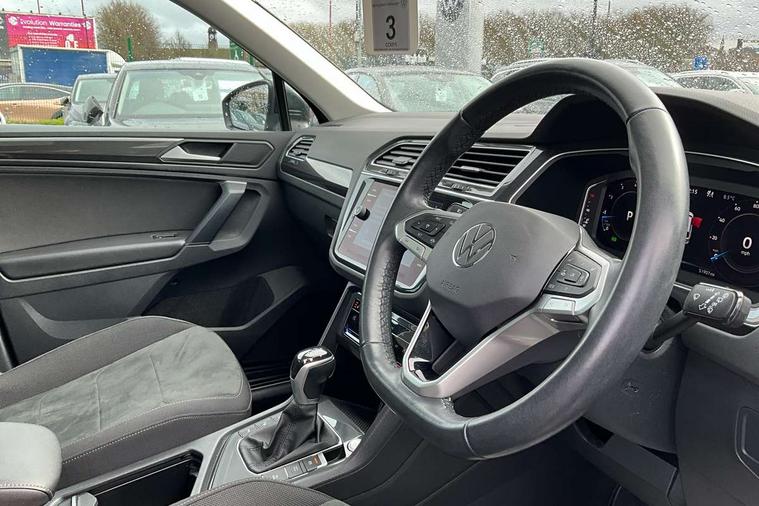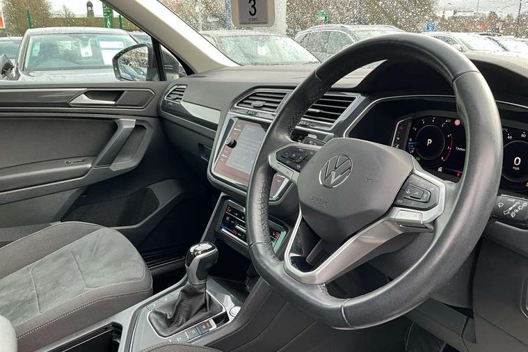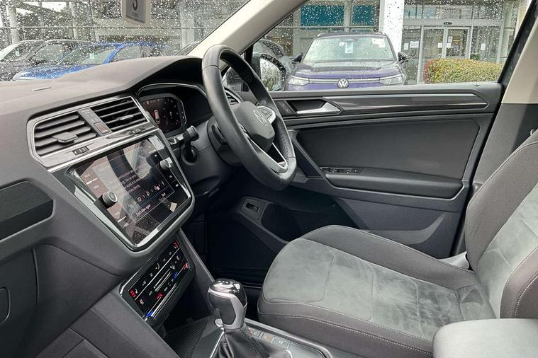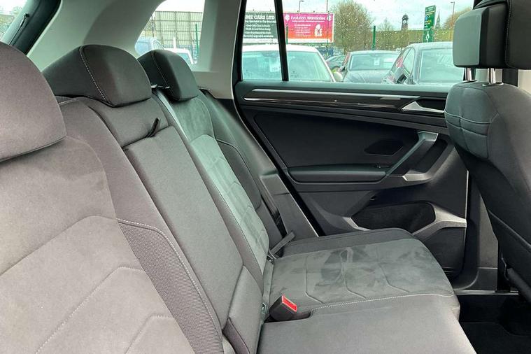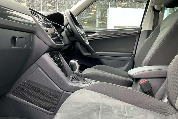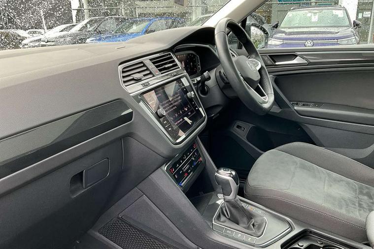 Adaptive cruise control ACC stop and go including speed limiter, App-Connect incl. App-Connect Wireless for Apple CarPlay and Android Auto, Bluetooth phone integration system, Digital Cockpit Pro - Active info display, Distance control assist, Driver alert system, Driver profile selection, Dynamic road sign display, eCall emergency call system, Electromechanical speed sensitive power steering, Engine start/stop button, Lane keeping system Lane Assist, Lights on warning, Motorised electric tailgate operated via key fob, drivers door and foot movement under tailgate, Multifunction front facing camera, Outside temperature display, Premium multifunction display with multi colour display, Remote control boot opening, Rev counter, Revision / skills operating concept travel assistant, Service interval indicator, Speed limit display, Start/stop system with regenerative braking, Tailgate/trunk lid unlocking from outside, Trip computer, Warning sound and light for doors and tailgate open, Battery regeneration during braking, XDS electronic differential lock for improved traction and handling, 2 USB-C ports in the front, 1 USB-C charging socket on the center console in the rear, Diversity antenna for FM reception, Radio, SD card slot, Simultaneous pairing of 2 compatible mobile devices, SMS functionality - read, compose and send SMS messages using touch-screen display, Title and cover art display, Aluminium door sill protectors, Auto dimming interior rear view mirror, Automatic headlight control system, Body colour door handles, Body coloured bumpers, Body coloured door mirrors with integrated indicators, Coming/leaving home lighting function, Dynamic headlight range control, Front and rear electric windows, Heated rear window, High level 3rd brake light, IQ light-Adv high beam, Dynamic light assist for LED matrix headlamp+LED separate DRL+DCL, dark red rear LED tech, Poor weather light+ cornering light, Laminated safety glass windshield, heat and sound insulating, LED rear number plate lights, Poor weather light and cornering light, Privacy glass for rear side windows and rear window, Rain sensor windscreen wipers, Rear exhaust tailpipe, Rear fog lamp, Rear side wing doors, Rear windscreen washer and wiper with interval delay, Side and rear windows in heat insulating glass, Tilting and sliding panoramic sunroof with rear panoramic sunroof, Trailer Stability Programme, Windscreen wipers/ intermittent wipe + 4 position delay, 12V outlet in center console rear and in luggage compartment, 12V outlet in front and tray, 2 cup holders in front, 2 LED front reading lights, 2 LED rear reading lights, 3 bench rear seats in 2nd row, 3 rear headrests, 4 load lashing points, 40:20:40 split folding rear seats, Air Care Climatronic 3 zone automatic climate control with enhanced air filter and controls in the rear, Backrest release for left front seat, Climate control unit rear with touch function, Door and side trim panel in foam film and woven fabric, Front + rear carpet mats, Front centre armrest, Front footwell illumination, Front seats head restraints (x-adjustment), Height adjustable front seats, Height/reach adjust steering wheel, Instrument lighting white adjustable panel illumination, Interior light with delay, Isofix Preparation 2 Rear child seats, Leather gear knob, Lockable cooled glovebox, Luggage compartment lighting, Luggage net, Rear bench seat asymetrically split folding, longitudinally movable and folding with load-through hatch and center armrest, Remote unlocking for rear seat backrest, Removable luggage cover, Removable rear headrests, Safety optimised front head restraints, Single front passenger seat, Sliding/reclining rear seats, Standard rear seat release, Storage compartment in driver's door, Storage compartment in passenger's door, Storage compartment in rear doors, Storage compartments in luggage area left and right, Storage tray on dashboard, Sun visors with illuminated vanity mirrors, Top front comfort seats, Variable boot floor, height adjustable and removable, Ambience pack - Tiguan, Chrome pack - Tiguan, Easy open and close pack with safelock - Tiguan, 3 point seat belt for centre rear seats, 3 point seat belts with seat belt pretensioners for the outer rear seats, Active bonnet, Curtain airbags for front and rear passengers, Driver/Front Passenger airbags, Drivers knee airbag, Electronic parking brake with auto hold, Electronic Stability Control with driver steering recommendation, ABS, ASR, EDL, EDTC and trailer stabilization, Front assist with autonomous emergency braking (for Adaptive Cruise Control ACC up to 130 mph), Front disc brakes, Front passenger airbag deactivation, Front side airbags, Height adjustable front 3 point seatbelts + pretensioners, Hill hold control, Manual child proof rear door locks, Pedestrian monitoring system, Power assisted brakes, Proactive passenger protection system in combination with front assist, Rear disc brakes, Rigid safety cell with front and rear crumple zones, Two tone horn, Warning sound and light for front seat belts if unfastened, Anti theft alarm system with interior monitoring, backup horn and towing protection, Anti theft wheel bolts, Central locking system with safelock radio remote control and 2 remote control folding keys, Electronic engine immobiliser, Tool kit,