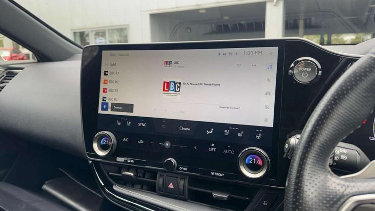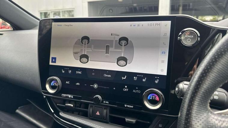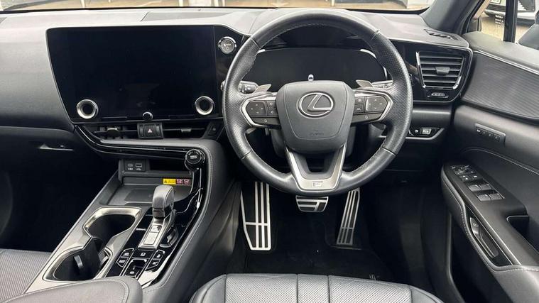 360 degree panoramic view monitor, 5 Driving modes EV/Normal/Eco/Sport/Sport S+, 7" display in instrument binnacle, Blind spot monitoring with rear cross traffic alert, Bluetooth telephone connectivity, eCall emergency system, Electric speed sensitive power steering, Head up Display, Intelligent parking sensors - 4 front and 4 rear, Lane change flasher function, Lexus link connect - Cloud based navigation, cloud based voice assistant, always online, 14" HD touchscreen, embedded nav and faster CPU, Push button starter, Reversing camera with back guidelines, Service interval indicator, Tazuna cockpit with 7" improved meters display, 10" HUD and capacitive touch steering wheel switches, Wireless Apple CarPlay and wired Android Auto, Wireless Smartphone charger, 6.6 kW onboard charger, All Wheel Drive (AWD), AVS - Adaptive variable suspension, Hybrid automatic transmission, Sports suspension with lateral performance dampers, Vehicle Dynamics Integrated Management (VDIM), Vehicle Stability Control (VSC), 10 speakers, 4 USB ports - 2 front, one USB C, 2 rear USB C, DAB Digital radio, 4 eye LED headlight with adaptive high beam, Auto dimming interior rear view mirror, Automatic headlights, Black roof rails, Double hidden exhaust pipes, F SPORT exterior styling - Black mesh front grille, enhanced side rockers, metallic front bumper, badging, black outside mirror covers, Front and rear one touch power windows, with anti-jam protection, Headlight cleaners, Heated, auto-folding, auto-dimming outside mirrors with reverse tilt function and turn indicators, Illuminated door handles with puddle light, LED brake lights and rear lights with emergency brake signal, LED cornering lights, LED daytime running lights, LED front fog lights, LED Indicators, Power back door with kick sensor, Privacy glass, rear doors and tailgate, Rain sensor windscreen wipers, Rear side wing doors, Rear wiper, 12V accessory port centre console and luggage compartment, 2 cupholders in front centre console, 2 way electrical lumbar adjustment for driver, 2 x fixed shopping bag hooks in boot, 2 x sun visors with vanity mirror and lamp, 3 seat bench in 2nd row, 4 x tie down hooks in the boot, 60/40 split folding rear seat, 8 way driver/passenger electrically adjustable front seats, Adjustable rear seat backrest, Card holder installed in driver and passengers sun visors, Centre armrest with storage box, Driver seat memory function, Dual zone climate control air conditioning system with humidity sensor, F Sport aluminium sports pedals, F SPORT leather gearlever, F SPORT seats - Leather upholstery, Front and rear head restraints, Front and rear textile carpet mats, Front passenger seat, Heated and ventilated front seats, Heated rear seats, Heated steering wheel, LED ambient lighting, LED interior illumination, Power adjustable F SPORT leather steering wheel with paddle shifts, Rear centre armrest with 2 cupholders, Whiplash Injury Lessening (WIL) feature (active headrest) for seats, 2 x Isofix child rear seat restraints, 3 point ELR front seatbelts with pretensioners, 3x3 point rear seat belts, ABS, Adjustable seat belt anchor points, Driver and front passenger 2 stage airbag, Driver/front passenger side airbags, Drivers knee airbag, E-Latch with safe exit assist, EBD + Brake Assist, ECB (Electronically Controlled Brake System), Electronic parking brake, Front and rear curtain shield airbags, Front center airbag, Front passenger seat cushion airbag, Hill assist control, Lexus safety system - dynamic radar cruise control, pre collision system day and night, lane tracing assist, road sign, OTA, Manual rear child locks, Passenger airbag cut-off device, Traction control, Tyre pressure warning, 2 x remote key fobs, Anti-theft system with alarm, intrusion sensor, glass breakage sensor, tilt sensor and engine immobiliser, Locking wheel nuts, Smart keyless entry, Speed sensitive auto door locking, Two motion door lock with double lock, VIN Window etching, Aluminium inlays,