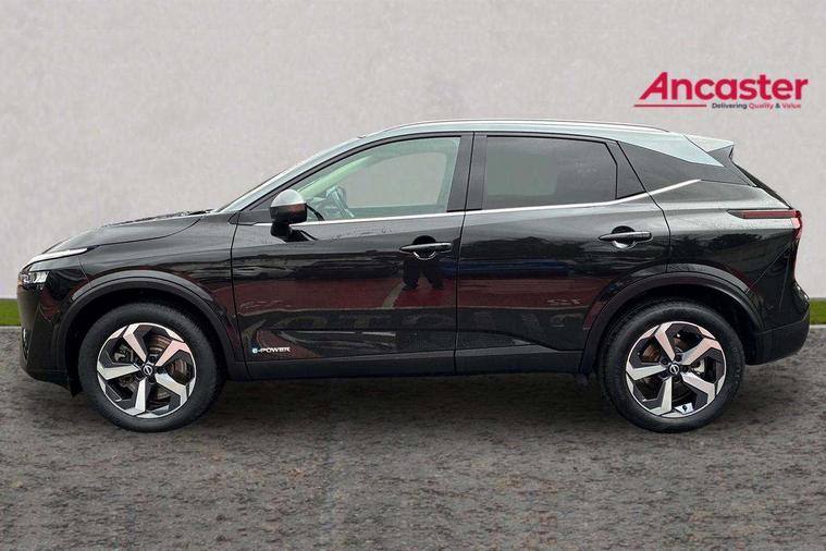 Android auto/Apple CarPlay (Wired), Blind spot warning, Drive modes (sport, normal, eco), Electric speed sensitive power steering, Emergency and breakdown call, Front and rear parking sensors, Full Digital 12.3" TFT Digital Combimeter, Google maps services - search, weather, 3D maps and Google street view, Idle stop/start system, Intelligent around view monitor, Intelligent Cruise control (ICC), Intelligent driver alert system, Intelligent forward collision warning, Intelligent lane intervention, Lane departure prevention, Lane departure warning system, Maximum speed limiter, Moving object detection, Nissan connect 12.3 inch touchscreen infotainment system, Nissan connect navigation, Push button starter, Rear cross traffic alert, Rear view camera, Remote control services - door locks, lights, horn and car locator, Telematics - notifications and connectivity services, TomTom live traffic services, Traffic sign recognition with legal speed adjustment, Trip computer, Virtual personal assistant and firmware over the air capability, Wireless apple carplay, 6 speakers, AM/FM audio system with DAB, Bluetooth audio streaming, Front USB connections (Type-A and Type-C), Rear USB charging only ports (Type-A and Type-C), Auto dimming rear view mirror, Auto rear wiper when reversing, Automatic hazard signal with emergency stop signal, Body colour mirror caps, Body coloured door handles, Bodyside mouldings, Chrome side window finisher, Door handle with button, e-POWER badging, Electric auto folding door mirrors, Electrically adjustable and heated door mirrors with LED turn indicator, Follow me home headlights, High beam assist, Intelligent auto headlights, LED daytime running lights, LED Headlights, LED rear lights, One touch front and rear electric windows with remote opening and closing, Partially body coloured bumpers, Privacy glass, Rear bumper with graphite insert, Rear reversing light (bulb lighting), Rear roof spoiler, Rear side wing doors, Rear styling plate, Shark fin antenna, Splash free rain sensing wipers, Super UV and infrared cut glass, Three blink turn signal, 12v power socket in dashboard and luggage, 2x Rear coat hooks, 3 bench rear seats in 2nd row, 3 rear headrests, 4 folding assist grip, 6-way manually adjustable driver's seat, 60/40 split folding rear seat bench, Ambient lighting around centre console, Centre console storage tray, Chrome interior door handles, Cloth monoform upholstery, Driver and front passenger sunvisors with illuminated vanity mirrors, Driver seat back pocket, Dual zone automatic climate control with pollen filter, e-POWER shifter, Front and rear door storage, Front centre console and armrest, Front cupholders x 2, Front door with bottle holders, Glovebox with light, Hard trunk cover, Height adjustable driver's seat, Height adjustable front headrests, Height adjustable passenger seat, Leather steering wheel, Luggage board system, Luggage space lighting, Manually adjustable passenger (slide recline + lifter), Multifunction steering wheel, Passenger seat back pocket, Rear armrest with 2 cupholders, Rear door bottle holders, Single front passenger seat, Soft PVC kneepad, Steering wheel switches, Sunglasses holder, Tilt/telescopic adjustable steering wheel, Two rear isofix child seat anchorage points with top tether, Welcome light and console tray ambient lighting, 3x3 point rear seatbelt pretensioners + load limiters, ABS with EBD and brake assist, Active brake limited slip, Auto hold function, Child locks on rear doors, Curtain and front side, far side airbags, Driver and passenger airbags, Driver, passenger and 2nd row rear seat belt reminder, Electronic parking brake, Front seatbelt pretensioners + load limiters, Height adjustable front seatbelts, Hill start assist, Intelligent blind spot intervention, Intelligent front emergency braking with pedestrian, cyclist recognition and junction assist, Intelligent rear automatic braking, Tyre pressure monitoring system, Vehicle dynamic control, Capless fuel filler, Engine immobiliser, Intelligent Key, Remote central door locking with deadlocking, Thatcham Cat.1 alarm, Interior instrumental panel B finisher, 18" Diamond cut alloy wheels, Tyre puncture repair kit,