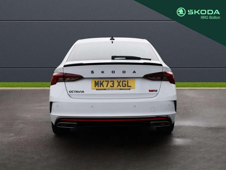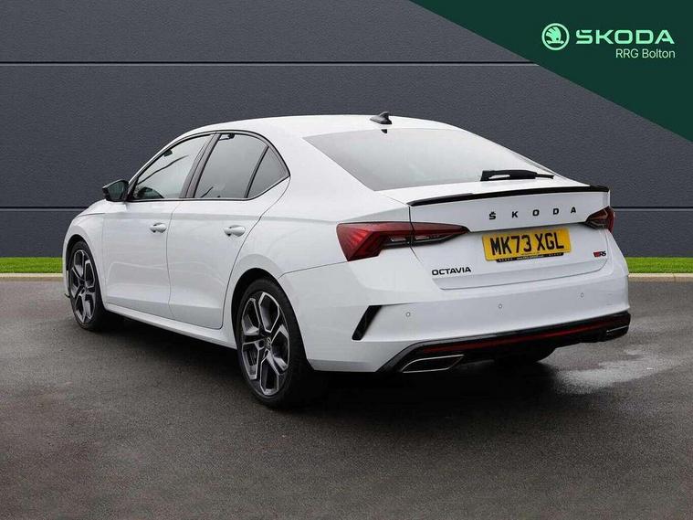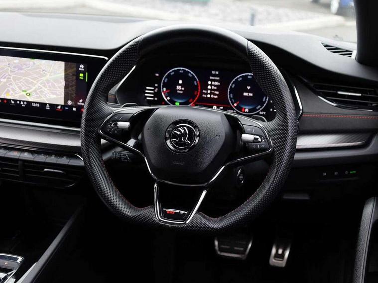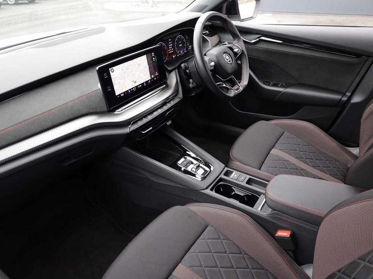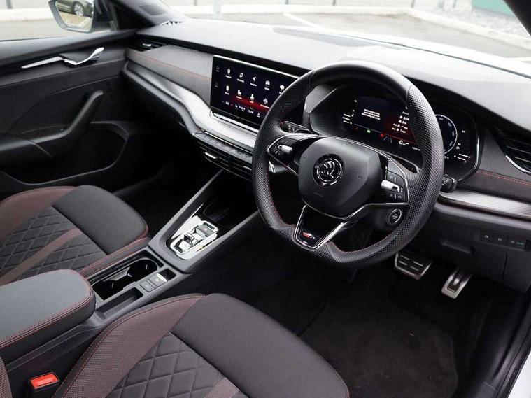 1x USB Type C port in rear view mirror (charging only), 2x USB Type C ports in rear of front centre armrest (charging only), Bluetooth system, Columbus satellite navigation with 10" touchscreen display, Driver fatigue sensor, eCall emergency system, Front and rear parking sensors with manoeuvre assist, Front assist system, Progressive dynamic steering, Speed limiter, Turn Assist, Virtual Cockpit - 10.25" digital display, Virtual pedal with electrically operated boot door (Rear LED lights (high functionality), dynamic indicators, Voice control system, Wireless SmartLink for Apple Car Play, Electronically controlled limited slip differential, Front and rear stabilizers, 2x USB Type C ports (for charging and data transfer), 8 Speakers, DAB Digital radio, Aero front windscreen wipers with intermittent function, Auto dimming rear view mirror, Body colour door handles, Chrome exhaust tailpipes, Door sills with vRS logo, Electric front and rear windows, Exterior gloss black sports styling including front grille, side strip, window surrounds, door mirror and badging, Full LED Matrix headlights with AFS, rear LED lights (high functionality) and dynamic indicators and cornering front fog lights, Headlight washers, Heated rear windscreen, High level third brake light, Ice scraper in fuel cap, LED daytime running lights, Rain and light sensors, Rear fog light on one side, Rear privacy glass, Rear side wing doors, vRS bumpers and lip spoiler, 3 rear headrests, 3 seat bench in 2nd row, 4 foldable roof handles, Aluminium pedals, Black headlining, Black microsuede padded dash panel with red contrast stitching, Chrome inner door handles, Front centre armrest, Front head restraints, Heated front seats, Illuminated glovebox, Leather trimmed gearshift lever, Luggage compartment lighting x1 light, Mechanical rear seat release, Parcel shelf - folding, Single front passenger seat, Sunglasses storage, Textile floor mat set, Three spoke leather sports multifunction steering wheel with paddles, Ticket holder, Umbrella in door panel, Unsplit rear bench seat and split folding backrest, LED interior light pack - Octavia, 3 point front/outer rear seatbelts+pre-tensioners, Alarm with interior monitoring, tilt sensor and back up horn, Automatic door unlocking in case of crash, Automatic fuel cut off in case of crash, Automatic warning lights in case of emergency braking, Curtain airbags and front side airbags, Driver and front passenger airbags, Drivers knee airbag, Electronic parking brake, ESC including ABS, EBV, MSR, ASR, EDS, HBA, DSR, Front and rear disc brakes, Front central airbag, Hill hold control, Hill start assist, ISOFIX on front passenger seat and outer rear seats, Manual rear child locks, Passenger airbag deactivate switch, Pro active services, Red brake calipers, Two tone horn, Tyre pressure monitor, Visual and acoustic seat belt reminder, Warning reflectors in front door, Door locks with immobiliser, Keyless entry and start/stop including rear doors, Remote central locking, Carbon optic decorative inserts, Gloss black air vent surrounds, 19" Altair anthracite alloy wheels,