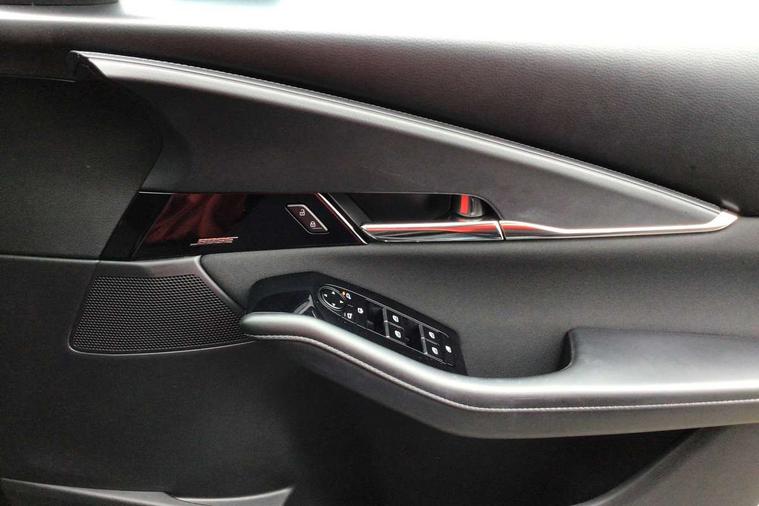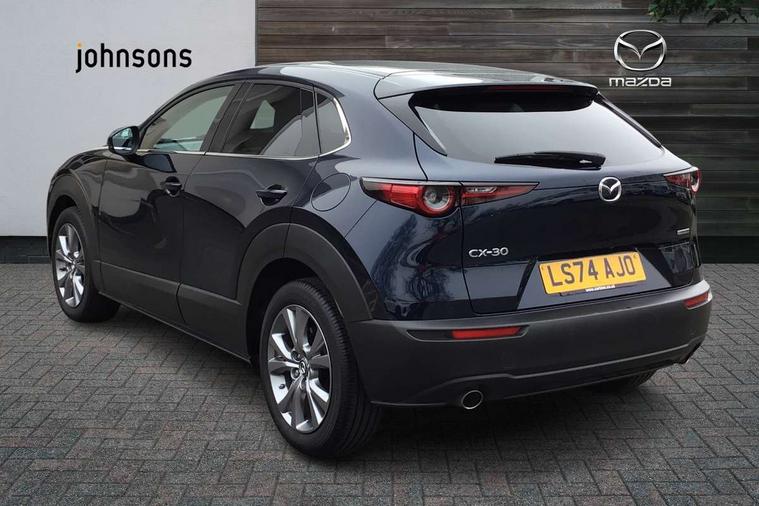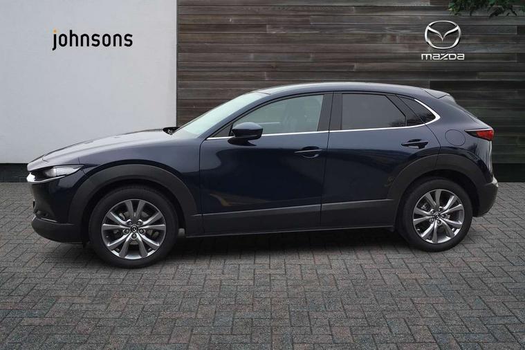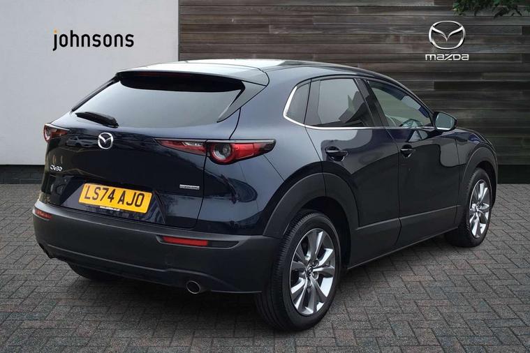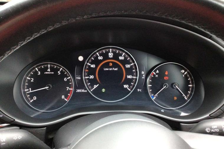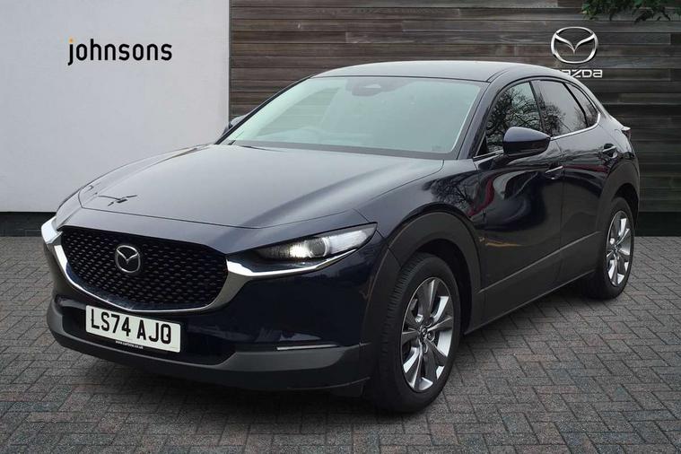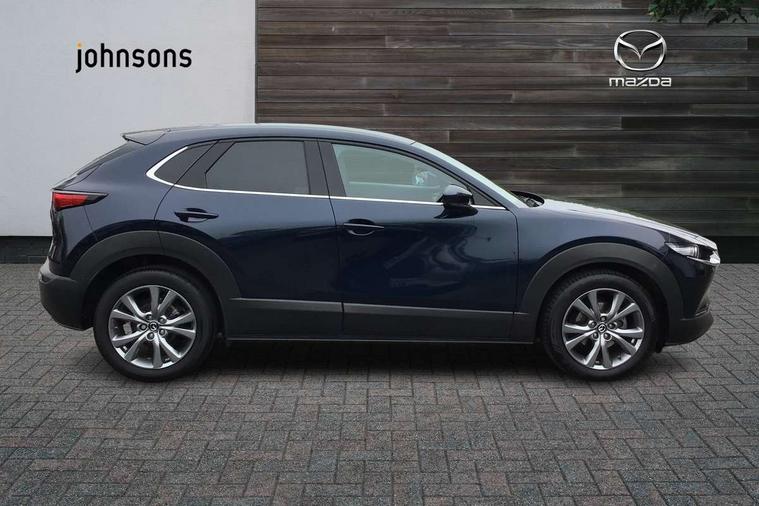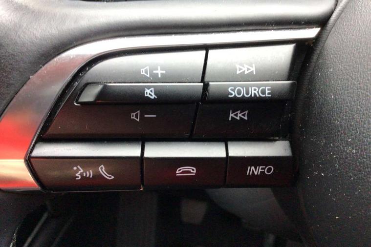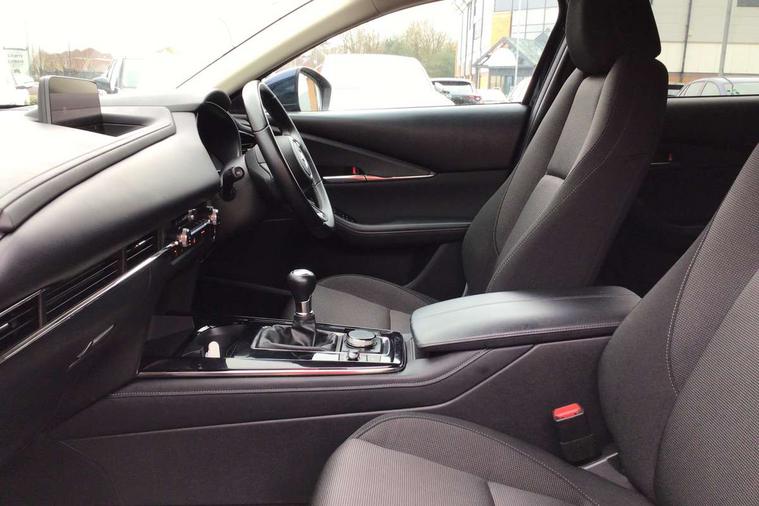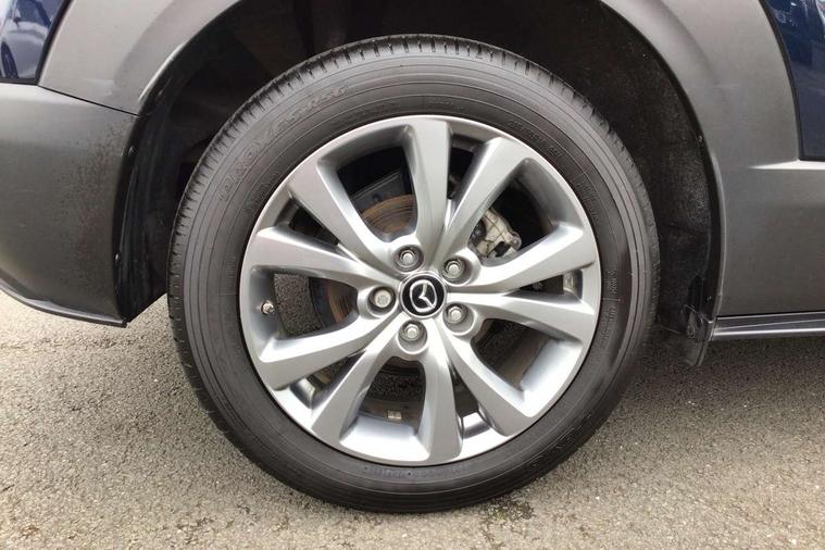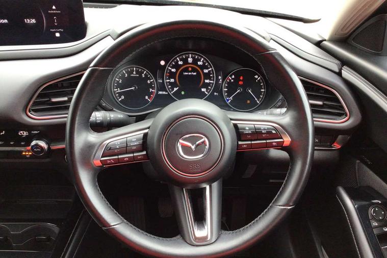 10.25" display with Mazda Connect infotainment, 7" TFT Colour driver instrument panel display, Adaptive cruise control (Mazda radar cruise control), Blind spot monitoring with rear cross traffic alert, Driver attention alert system, E-call with GPS, Emergency stop signalling system, Engine start/stop button, Front and rear parking sensors, Integrated bluetooth, Integrated Mazda navigation system, Intelligent speed assist, Lane keep assist system (LAS) with Lane departure warning system (LDWS), Mazda connected services, PAS, Power lift gate, Qi wireless charging, Reversing camera, Service indicator, Tailgate, Traffic sign recognition, Trip computer, Windscreen projected colour active driving display (HUD), Wireless Apple CarPlay/Android Auto, Cylinder Deactivation, i-stop, 2 USB charging ports in front inner central armrest, Bose surround sound system with 12 Speaker, Bose center point, Bass match and audio pilot technology, Multimedia Commander including separate volume dial, Steering wheel mounted audio/bluetooth controls, Adaptive LED Headlights, Auto dimming driver's door mirror, Auto headlight levelling, B-pillar and C-pillar garnishes in piano black finish, Body coloured, electrically adjustable, heated auto power folding door mirrors with integrated indicators, Chrome finish signature wing in front grille, Coming/leaving home lighting function, Dual chrome exhaust, Dusk sensing headlights, Electric front/rear windows with one touch auto up/down, Frameless auto dimming interior rear view mirror, Front kodo turn signal, Gloss black front grille, Gloss black rear roof spoiler, High beam assist, LED signature daytime running lights, Privacy glass (rear side windows and rear screen), Rain sensing front wipers with adjustable speed and intermittent wipe, Rear fog lights, Rear side wing doors, Rear wiper, Signature LED rear combination lights, Third brake light, 12V power outlet in centre console, 3 seat bench in 2nd row, 60/40 split fold down rear seats, Chrome interior trim accents with steering wheel centre bezel, surround of engine start / stop button and glove box handle, Cloth upholstery with interior accents, Dark cloth door panel inserts, Dashboard, door cards and front centre armrest in black cloth, Driver and front passenger visors with covered vanity mirror and driver ticket holder, Driver seat manual slide, recline, height and seat tilt adjust, Driver, front passenger and two rear door storage, Driver, Front passenger and two rear grab handles with coathooks, Dual zone climate control air conditioning with rear air vents, Folding rear centre armrest with two cup holders, Front and rear (x3) head restraints, Front and rear LED lighting, Front armrest, Front centre storage with two cupholders with lid, Front passenger seatback pockets, Front passengers seat manual slide, recline and height adjustment, Gear shift indicator, Glovebox illumination, Heated front seats with 3 stage setting, ISOFIX child seat anchorage points attached on outer rear seats, Leather wrapped gear shift knob, Leather wrapped steering wheel with telescopic and tilt adjustment, LED luggage compartment lighting, Light roof headlining and pillars, Roof mounted sunglasses holder, Single front passenger seat, 3 point ELR front seat belts x2 with pretensioners, 3 point ELR rear seat belts, Anti-lock braking system (ABS), Drivers knee airbag, DSC - Dynamic Stability Control, Electronic parking brake with auto disengage function and auto hold function, Front and rear curtain airbags, Front dual stage driver and single stage front passenger airbags, Front passenger airbag cut-off switch, Front side airbags, Front smart city brake support, G-Vectoring control plus, Hill launch assist, Manual child lock in rear doors, Mild Hybrid system with regenerative braking, Seatbelt reminder for driver/front passenger and rear seats, Traction control system (TCS), Tyre pressure monitoring system (TPMS), Remote central locking with deadlocking and automatic door lock when driving, Smart keyless entry, Thatcham accredited alarm and immobiliser, 18" Silver metallic alloy wheels, Emergency tyre repair kit,