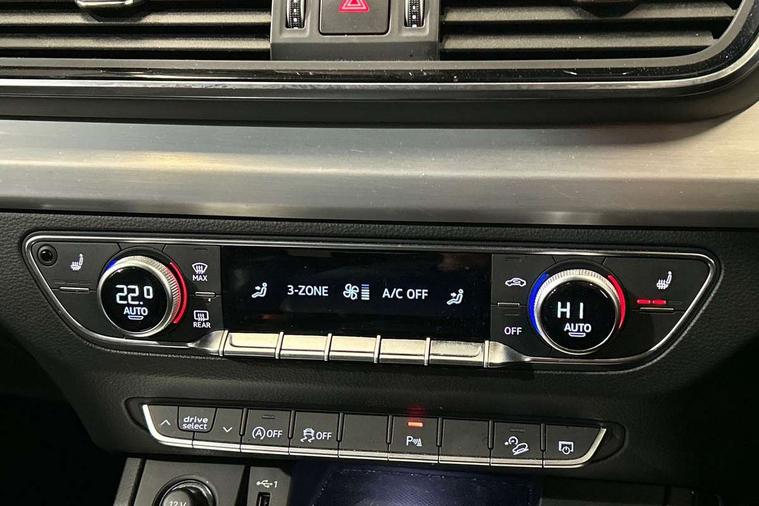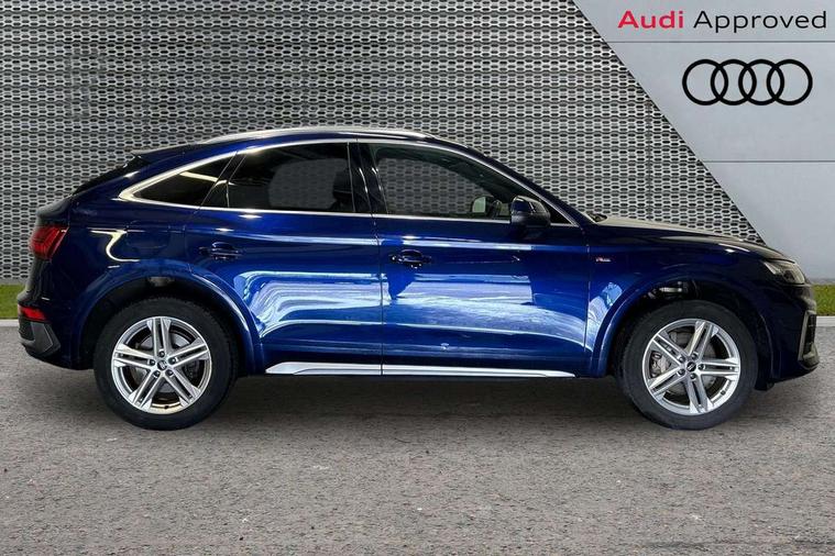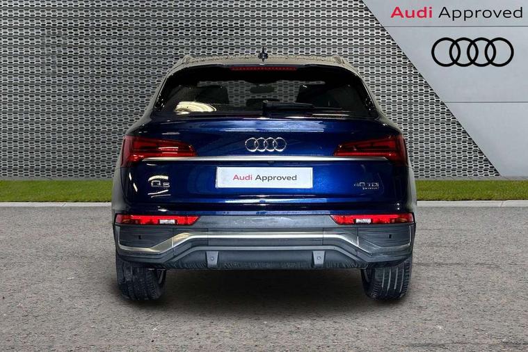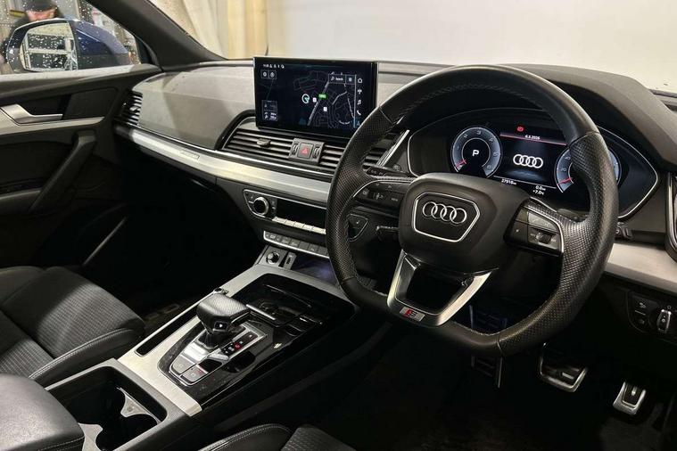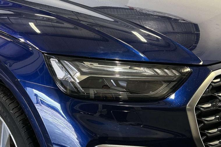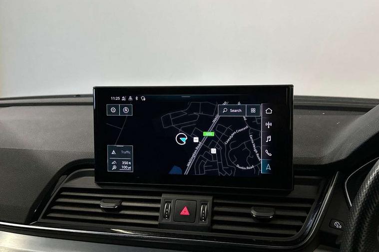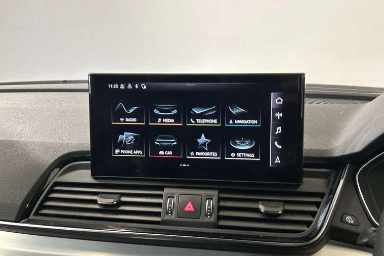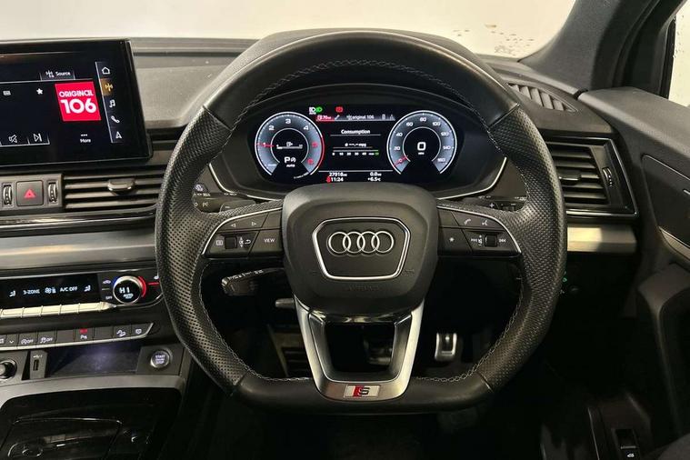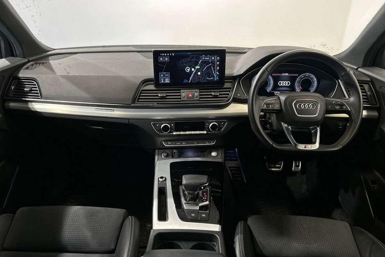 Audi connect safety and service (e-call), Audi connect with Amazon Alexa Integration, Audi drive select, Audi virtual cockpit plus with 12.3" screen and three different layout designs, Audi wireless smartphone interface, Automatic start-stop system with coasting functionality and efficiency programme, Bluetooth interface, Electro - mechanical power assisted steering, MMI navigation plus with 10.1" touch screen, Power tailgate, Reversing camera, Service interval indicator, Voice control system with Audi hotword activation "Hey Audi", Diesel particulate filter, Quattro on demand, S line sports suspension, 2 x USB charging port with aux input socket, DAB Digital radio, Acoustic windscreen, Aluminium roof rails, Audi matrix LED headlights with dynamic front and rear indicators, Auto dimming door mirrors, Auto dimming rear view mirror, Automatic headlights and windscreen wipers, Body colour door mirrors, Body colour rear diffuser with matt aluminium silver surrounds, Body colour underbody protection, Chrome plated exhaust trims, Daytime running lights, Door sills in Selenite silver, Electric adjustable/heated/folding door mirrors, Front air inlet surrounds in aluminium, Front and rear electric windows, Front radiator grille in honeycomb design, Headlight washers, High level LED brake light, Lower bumpers painted in contrast Manhattan grey, Rear chrome trim strip below lights, Rear privacy glass and rear side windows, Rear side wing doors, Rear wiper, Roof bars, S Line badges on the front wings, S Line front and rear bumpers, S Line rear spoiler, S Line side skirts, 3 rear headrests, 40:20:40 split folding 3 rear bench seat in 2nd row with rear centre armrest, Black cloth headlining, Comfort front centre armrest, Contrast stitching on seats, steering wheel and gear lever gaiter, Deluxe 3 zone electronic climate control, Front head restraints, Front/rear floor mats, Gear lever in black leather, Heated front seats, Height/reach adjustable steering column, Illuminated door sill trims with S logo, ISOFIX child seat mounting and top tether, Manual seat adjustment with 4-way electric lumbar support, Removable luggage compartment floor, Single front passenger seat, Stainless steel pedals, Sunvisors with vanity mirrors, Trunk roller cover, High gloss pack - Q5, LED interior light pack - Q5, 3 point seatbelts on all seats, 6 airbags - Driver, front passenger, curtain and side airbags, Electrically operated child locks on rear doors, Electromechanical parking brake, Electronic stabilisation control including ABS, ASR and EDL, Front passenger airbag deactivation, Hill descent control, Hill hold assist, Multi collision brake assist, Pop-up bonnet for pedestrian protection, Pre sense city, Seat belt force limiter, Seatbelt monitoring, Tyre pressure warning, Warning triangle and first aid kit, Anti theft alarm, Anti-theft wheel bolts, Keyless Go access/ignition system, Remote central locking, Matt brushed aluminium inlays,