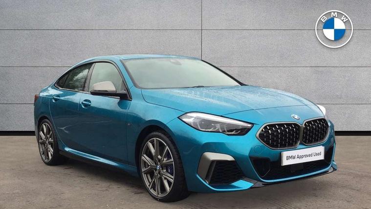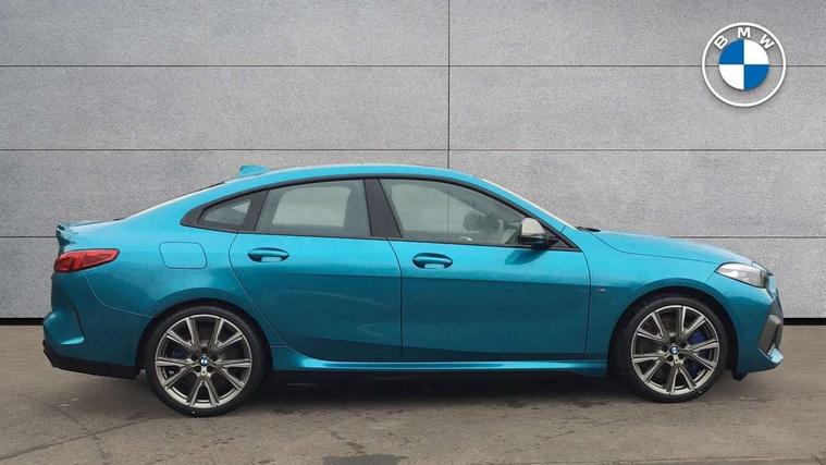 Active guard plus, Attentiveness assist, Auto start-stop, BMW ConnectedDrive online services, BMW Intelligent Personal Assistant, BMW Live Cockpit Professional with 10.25" high resolution instrument and control display, BMW Online services, BMW operating system with 7.0 mid interface, BMW Teleservices, Check Control warning system for monitoring of lights and door/luggage compartment open warning, Cruise control with braking function, Electro hydraulically controlled multi plate clutch in rear axle, Energy efficient operating strategy, iDrive controller with 7 short cut favourite buttons on centre console, Integrated navigation data with map data via USB +features such as 3D landmarks and micro city models, Integrated owners handbook, Intelligent voice assistant, Lane departure warning system, M Sport steering with M235i xDrive M performance specific settings, On board computer - average speed+fuel consumption, service interval, clock/date, odometer/trip meter, outside temperature display and ice warning, Optimum shift indicator, Personal Profile, Pull away assistant, Speed limiting function, 2 balance shafts, 8 speed sport automatic transmission with electronic selector lever, auto P function, coasting idle, race track, sport, gearchange display manual mode, Aluminium lightweight construction, BMW TwinPower twin-scroll Turbo four-cylinder petrol engine, Double VANOS, Drive performance control with ECO PRO comfort + sport mode, Electronic differential lock, Engine cover with M performance designation, High precision injection, Larger fuel tank capacity (50 litres), Launch control, M235i specific heavily de-throttled engine intake air guide, M235i specific high-performance cooling package, M235i specific larger turbocharger with integrated divert-air valve, Performance Control, Petrol Particulate Filter, Power transmission of front wheel drive on the rear axle via angle transmission on the front axle differential and two part cardan shaft, VALVETRONIC engine management, Variable, stepless and infinitely adjustable distribution of drive torque between the front and rear axles, xDrive intelligent all wheel drive with M235i specific reinforced components, 2x USB Type C ports (for charging and data transfer), 4G LTE Connectivity with hard wied 4G network sim card, DAB digital radio, MP3 players and RDS double tuner, Auto wipers, Automatically dimming rear view mirror, Body colour door handles, Direction indicator side lights integrated exterior mirrors, Electric windows - front and rear, with open/close fingertip control and trap release, Exterior mirrors - electrically folding with anti-dazzle, Fading support, Follow me home headlights, Front and rear bumper system with replaceable deformation elements, Front door sill finishers in black plastic with M235i designation, Heated, electrically adjustable exterior mirror aspheric on driver side, convex on passenger side, High gloss black B pillar finish, High gloss shadow line exterior trim, High level third brake light, LED daytime running lights, Lightweight engineering, M Performance exhaust system with valve control and minimised exhaust back pressure, M rear spoiler, Model designation on right side of tailgate includes xDrive designation onleft handside for M235i xDrive, Preparation for high beam assistant, Rain sensor with automatic headlight activation, Rear boot, Rear fog lights, Rear side wing doors, Reinforced crank drive, new pistons and adapted con rods, Reversing light in rear light cluster, Welcome lighting, 12V power socket in centre console, 2 cupholders in front centre console, 3 rear seat head restraints, 3 rear seats, 3 spoke M sports design leather steering wheel finished in nappa leather with specific M badge, Additional under floor storage in luggage compartment, Anthracite finished floor mats with contrasting surround, Anthracite headlining, Automatic two zone climate control air conditioning, Child seat ISOFIX attachment for two outer rear seats and front passenger seat with anchorage points, Conditioned based service, Driver and front passenger seat heating, Front and rear door pockets including bottle trays, Front and rear side armrests integrated into door trim, Front armrest foldable with integrated storage compartment, Front centre interior light over interior mirror and rear centre automatic interior light when door is opened/ignition switched off or via remote key, Front head restraints, Front M Sport seats, Front passenger seat, Glove compartment, Luggage compartment lighting, Manually adjustment steering wheel column, Multi-function controls for steering wheel, Shift-by-wire selector shift, Steering wheel paddles, Sun visors with vanity mirrors and insert tab, Through loading system with 40/20/40 split folding rear seat, Two lashing eyes, Additional interior lighting pack - 2 Series Gran Coupe, Connected pack professional - 2 Series Gran Coupe, Extended storage pack - 2 Series Gran Coupe, M Sport exterior styling aerodynamics pack - 2 Series Gran Coupe 235i, 2 tone horn, Airbag - Front driver and passenger, front and rear head, front side, curtain head protection, manual deactivation of front passenger airbag possible, Anti lock braking system (ABS) with cornering brake control, BMW emergency call, Brake drying, Braking readiness, City braking function, Crash sensor activating of airbags, Unlocking doors, hazard warning lights, interior light, safety battery terminal, Dynamic stability control + (DSC+), Dynamic Traction Control - DTC, Electrically operated hand brake, Integrated torsen mechanical limited slip differential on front axle, M Sport braking system in blue high gloss + blue painted brake calipers with M designation, M sport seatbelt, Rear brake discs, Rear child proof door locks, Seat belt security check for driver and front passenger, Seatbelt warning, Side impact protection, Three point seat belts on all seats including front belt stopper, pyrotechnic belt tensioners and belt force limiters, Trailer s