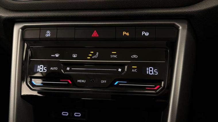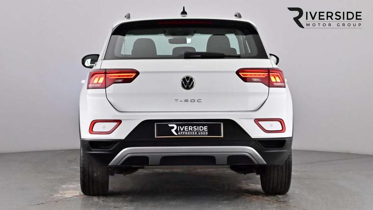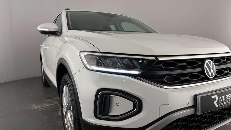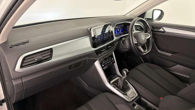 Bluetooth mobile phone interface, Driver alert system with fatigue detection, Driver tips and journey analysis, Emergency call service, Lane keeping system Lane Assist, Modified key software - reduce switch off time for key status change to Long no motion, Online services, Park assist including front and rear parking sensors, Power assisted speed sensitive steering, Service interval indicator, Tailgate/trunk lid release from outside, Think blue trainer driver tips and journey analysis, Warning sound and light for front seatbelts unfastened, Wireless app connect, Battery regeneration during braking, Front shock absorption, Rear shock absorption chassis with increased ride height, Start/stop function with battery regeneration, DAB Digital radio, Diversity antenna for FM reception, Front and rear 6 speakers, Music playback - MP3, WMA and AAC files, Premium USB cable in choice of either Apple or Android smartphone compatibility, SD card slot, Simultaneous pairing of 2 compatible mobile devices, Title and cover art display, We Connect and We Connect Plus functionality, 3rd brake light, Auto dimming interior rear view mirror, Automatic hazard lights activation under emergency braking, Automatic headlight control with LED separate daytime running lights with coming/leaving home function, Black roof rails, Body coloured bumpers and radiator grille with chrome trim and front fog lamps with chrome bezel, Body coloured exterior mirror housings and door handles, Extended roof spoiler, Exterior mirrors aspherical on driver side, convex on front passenger side, External USB type C socket and charging sockets, Front windscreen wiper with intermittent wipe and 4 position delay, Heated rear window, LED Headlights, LED rear combination lamps, LED rear number plate lights, LED tail lamp rear comination lamps, Power windows with comfort operation and circuit breaker, Rain sensor, Rear exhaust tailpipe, Rear fog light on one side and reversing lights on both sides, Rear side wing doors, Rear wash/wipe with intermittent wipe setting, Remote electrically foldable door mirrors, puddle lights and reverse activated passenger's door mirror, 12V power socket in centre console, 3 rear head restraints, 3 seat bench in 2nd row, 4 load lashing points in luggage compartment, Air care climatronic air conditoning system with active combination filter and 2-zone temperature control, Ambient lighting with mirror logo projection, Cloth upholstery, Door and side trim panel in cloth, Drawer under drivers seat, Driver/front passenger seat height adjustment, Front centre armrest, Front comfort sports seats, Front cupholders x 2, Front reading light, Instrument lighting, white adjustable panel illumination, Interior light delay, Isofix child seat preparation, Leather gearshift handle, Load-through provision with cup holder when folded down ('Unsplit rear seat bench, split folding backrest, with centre armrest), Luggage compartment lighting, Lumbar support for driver's and front passengers seat, Non-folding front passenger seat backrest, Single front passenger seat, Storage compartment in left and right luggage area, Storage compartment in rear doors, Storage compartments in driver and front passenger doors, Sunvisors with illuminated vanity mirrors, Variable boot floor, height adjustable and removable, Driver assistance pack without proactive passenger protection - T-Roc, 3 point height adj front seatbelts + pretensioners, 3 point seatbelts in outer rear with ECE label, ABS, Child locks on rear doors, Driver and front passenger airbag with front passenger airbag deactivation, Driver and front passenger safety-optimised head restraints, Drivers seatbelt reminder, Electronic parking brake, Electronic Stability Control (ESC) inc EDL (Electronic Differential Lock) and ASR (Traction Control), Front and rear passengers curtain airbag system including front side airbags, Front assist with city emergency braking and pedestrian monitoring, Front disc brakes, Front seat side impact airbags, Hill start assist, Predictive pedestrian protection, Rear disc brakes, Single tone horn, Tyre pressure loss indicator, Volkswagen roadside assistance, Alarm with interior protection, Anti-theft alarm system with interior monitoring, backup horn, and towing protection, Remote central locking with SAFELOCK, radio remote control with 2 remote control folding keys, Pewter matt decorative inserts for intrument panel, centre console and door panels at the front, Trims for alloy wheels,