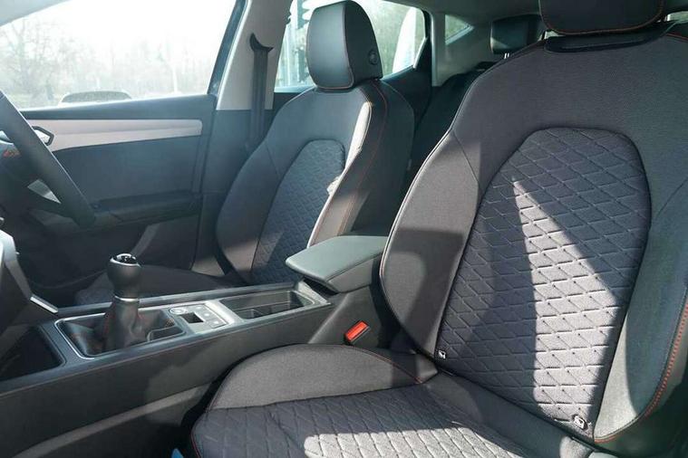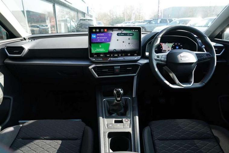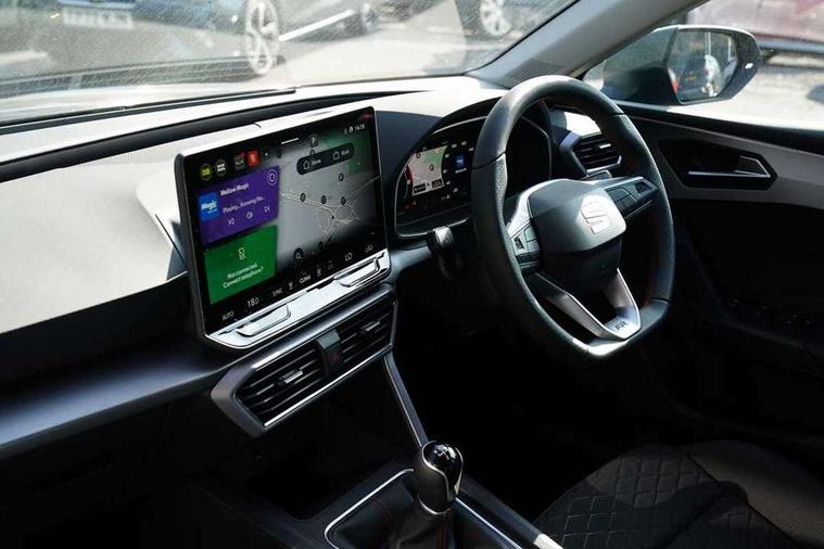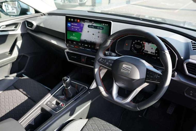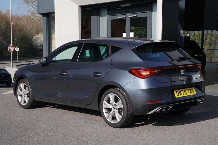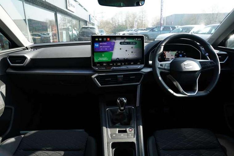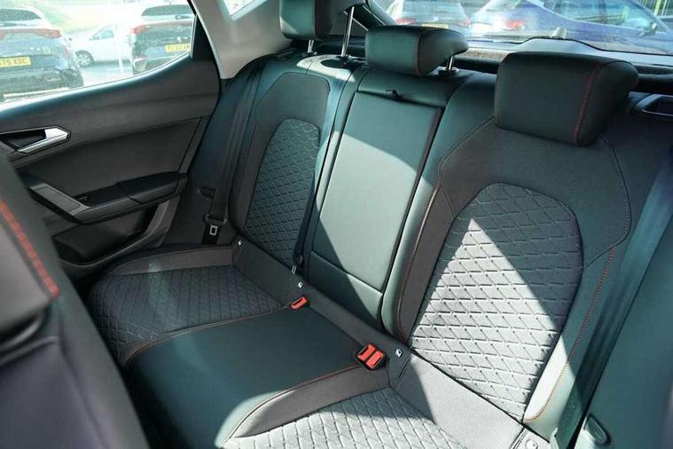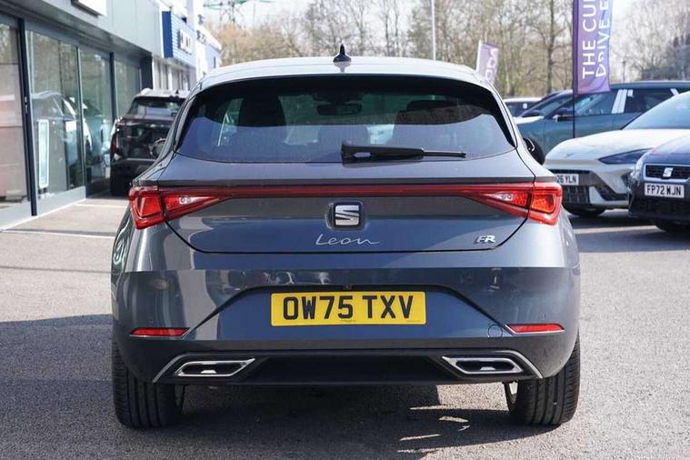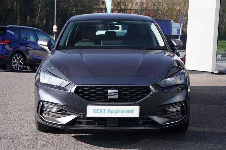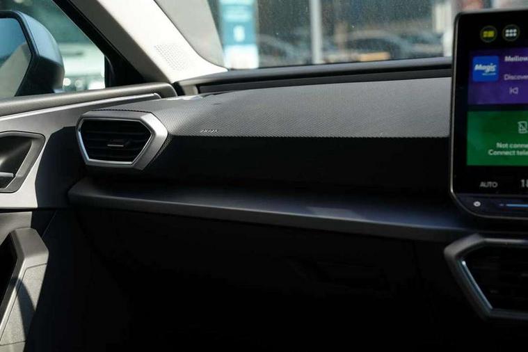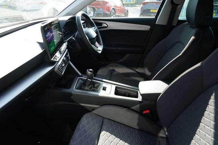 Digital cockpit with multifunction display, Driver attention alert with drowsiness warning, E-call, Front assist with forward collision warning braking reaction to vehicles, pedestrians and cyclists, Full link smartphone integration with Mirror Link, wireless Apple CarPlay and wired Google Android Auto, Intelligent speed assist, Lane assist, Lockable tailgate, Park assist (inc front/rear parking sensors), Power assisted speed sensitive electro-mechanical steering, Rear view camera, RPM, trip computer, outside temp gauge, instrument light brightness, low fuel warning light, lights on reminder, gearshift indicator, SEAT drive profile with 4 modes (Eco/Normal/Sport/Individual), throttle response, Service interval indicator, Start/stop system with regenerative braking, Sports suspension, XDS electronic differential lock and dynamic traction support, 2 front and 2 rear USB-C ports, Auxiliary input socket, Auto dimming rear view mirror, Body colour door handles, Body coloured bumpers, Cosmo grey exterior mirrors with integrated LED indicators, Dark tinted rear windows, Dynamic headlight range control, Dynamic turn signal lights, Electric front/rear windows, Electrically adjustable, heated and folding door mirrors, FR sports bumper, Illuminated front door sill, LED front fog lamps, LED headlights and LED infinite rear tail lights, LED rear fog lamp with rear coast to coast light, Rear side wing doors, Rear wash/wipe, Separate daytime running light with automatic headlight control and coming home feature, Third brake light, Windshield wiper intermittent control with light/rain sensor, 12v power point in centre console, 3 seat bench in 2nd row, 60/40 split rear bench seat with armrest, Ambient lighting with glovebox, footwell and single monocolour, Driver/passenger manual seat height adjustment, Dust/pollen filter, Flat bottomed perforated leather steering wheel with red stitching and FR logo and leather gear stick, Folding boot cover, Front and rear height adjustable headrests, Front and rear reading lights X 4, Front centre armrest, Front seatback storage pockets, Grey headlining, Height/reach adjust steering wheel, ISOFIX points in outer rear seats with top tether anchorage points, Luggage tie-down hooks, Lumbar adjustment for front seats, Single front passenger seat, Sunvisors with covered illuminated mirror, Three zone climate control, Two tone cloth upholstery, Media system plus with navigation - Leon, 3 point seatbelts on all rear seats, ABS, Brake control system - ESC and brake booster, Child proof door locks, Driver and front passenger airbags with front passenger airbag de-activation, front side and curtain airbags, Electronic parking brake, Extended safety system - seat belt tensioner, window closure and hazard lights, Hill hold control, Rear disc brakes, Seat belt reminder for front and rear seats, Tyre pressure monitoring system, Anti theft alarm system with interior monitoring in cab, backup horn and towing protection, KESSY Go (Keyless start), Locking wheel bolts, Wireless phone charging, Chrome interior detailing, 17" Dynamic Bi-spoke alloy wheels with 91W tyres, Tool kit without jack,