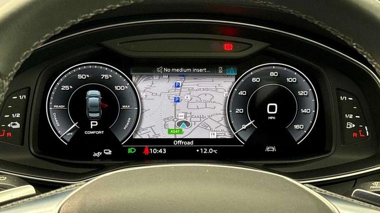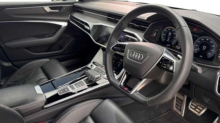 7" high resolution colour driver information display system, Audi connect safety and service (e-call), Audi connect with Amazon Alexa Integration, Audi drive select, Audi parking system plus - acoustic and visual park assist system for front and rear, Automatic start/stop system with coasting functionality, Bluetooth interface, Electric boot lid release, Lane departure warning system, Progressive steering, Rear view camera, Service interval indicator, Smartphone interface includes wireless Apple carplay/Android Auto, Voice control system, 3 pin 10 amp domestic charging cable, 52 litre fuel tank, 7.4 kW onboard charger, Hybrid propulsion system, Quattro on demand, Sports suspension, Type 2 mode 3 32 amp charging cable, Type 2 socket for AC charging, Audi front music interface, Audi sound system, Auxiliary input socket, DAB Digital radio, USB connection, Electric front/rear windows, Frameless auto dimming interior rear view mirror, Front intermittent wipers, Gloss black highlights on the exterior area of the Audi Single frame, Gloss black highlights on the front and rear bumpers, Gloss black highlights on the radiator grille, Gloss black highlights on the side windows trim strips, Headlight washers, Heat insulating darkened glass in side and rear windows, Heat insulating glass in windshield, LED signature front daytime running light, LED third brake light, Matrix LED headlights, Matt black rear diffuser with diffuser strip and tailpipes in chrome, Matt black side air intake grille with inlay in matt aluminium, Privacy glass, Rain and light sensors, Rear boot, Rear side wing doors, Signature rear LED light design, 4 way electric lumbar support for driver and front passenger, 4 zone deluxe automatic climate control, 40/20/40 split folding 3 rear seat bench in 3 parts with rear centre armrest, Black cloth headlining, Black front and rear carpet floor mat, Black steering wheel insert, Electrically adjustable front seats with driver memory, Front centre armrest, Front head restraints, Heated front seats, Height/reach adjust steering wheel, Illuminated door sill trims with S logo, Illuminated sun visors with vanity mirrors, ISOFIX child seat mounting and Top Tether with front passenger airbag deactivation, Leather gear knob, Rear headrests, Single front passenger seat, Stainless steel pedals and foot rest, LED Interior Ambient Lighting Pack - A6, Non smoking pack - A6, Technology pack - A6, 3 point seatbelts on all seats, Airbags - Front side, front and rear including head, Audi pre-sense front, Black seatbelts, EBD - Electronic brakeforce distribution, Electromechanical parking brake, Electronic Stability Control (ESC) including ABS, ASR and EDL, Extended pedestrian protection measures, Manual child proof rear door locks, Seatbelt monitoring, Tyre pressure warning light, Warning triangle and first aid kit, Anti theft alarm with tow away protection, Anti-theft wheel bolts and wheel loosening detection, Immobiliser, Keyless Go, Remote central locking, Carbon twill inlays, 20" 5 V spoke star design Audi sport cast aluminium alloy wheels in matt grey look, Tool kit, Tyre repair kit,