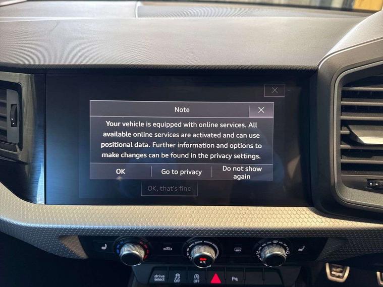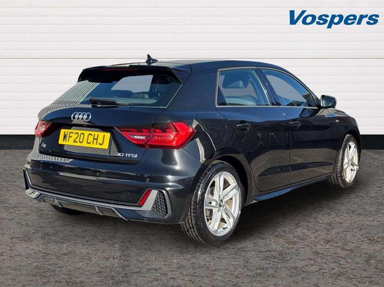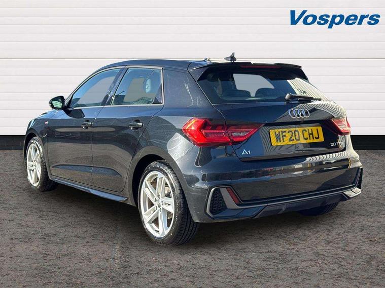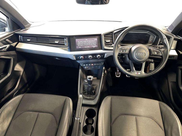 10.25" Digital instrument cluster display classis style instrument dials + speed, odometer, time, outside temperature, telephone menu + fuel level warning, Audi connect safety emergency and service including E-call, Audi drive select - power steering assistance + engine, Audi smartphone interface with connect compatible smartphone via USB directly MMI display + Nav, music, third party apps controlled via MMI controller, Automatic start/stop system, Bluetooth interface, Cruise control, Driver's information system, Electromechanical power steering, Lane departure warning system, Rear parking sensor, Service interval indicator, Speed limiter, Voice control system, Washer fluid level indicator, Sports suspension, 1 x SDXC card reader, 1 x USB type C and 1 USB type A charging points, DAB Digital radio, MMI radio plus with 8.8" colour MMI display screen and MMI touch, Auto dimming rear view mirror, Body coloured door mirrors, Door sills with aluminium inlays and S Line logo, Electric front and rear windows, Electrically adjustable, heated, folding door mirrors with integrated LED side indicator, Front side air inlets in grained matt black and C frame in titanium black, Heat insulating glass windscreen and side windows, Heated rear windscreen, LED headlights with LED rear lights + dynamic rear indicators + headlight adjustment and high beam, turning light + LED daytime running lights, Radiator grille and rear diffuser in matt titanium black, Radiator protective grille frame in matt aluminium silver, Rain and light sensors, Rear fog lights, Rear wiper, S line badges on front wings, Side front spoiler lips in grained matt black, 12V socket in centre console with two cup holders, 3 rear seats with headrests, 40:60 Split folding rear seat or folded fully, Black cloth headlining, Driver and passenger seat with manual height adjust with forward and backwards adjustment, Front and rear black floor mats with contrast stitching in fine silver, Front head restraints, Height and reach adjustable steering wheel, ISOFIX child seat mounting for front passenger and outer rear seats including top tether attachment point of outer rear seats, Leather gear knob with aluminium trim, Luggage compartment light with front and rear reading lights, Manually adjustable lumbar support in front seats, Stainless steel pedals, LED interior lighting pack - A1, Luggage compartment pack - A1, S line exterior styling pack - A1 Sportback, 3x3 point rear seatbelts, Audi pre-sense front with pedestrain and cyclist recognition, Brake assist function, Driver and front passenger airbag with front side and head airbags, Electronic Stability Control including ABS, EBD, ASR and EDL, Front and rear seatbelt reminder, Front passenger airbag deactivation switch, Hill hold assist, Seatbelt height adjustment for front seats, Seatbelt monitoring, Tyre pressure warning light, Warning triangle and first aid kit, Anti theft alarm, Anti theft wheel bolts and loose wheel warning, Immobiliser, Remote central locking with 2 foldaway keys, Aluminium trim for control switches, air vents and digital instrument cluster, Silver grey inlays polygon structure in diamond paint finish, Structured grey accent areas including air vents, door handle recesses and centre console in quartz paint finish,