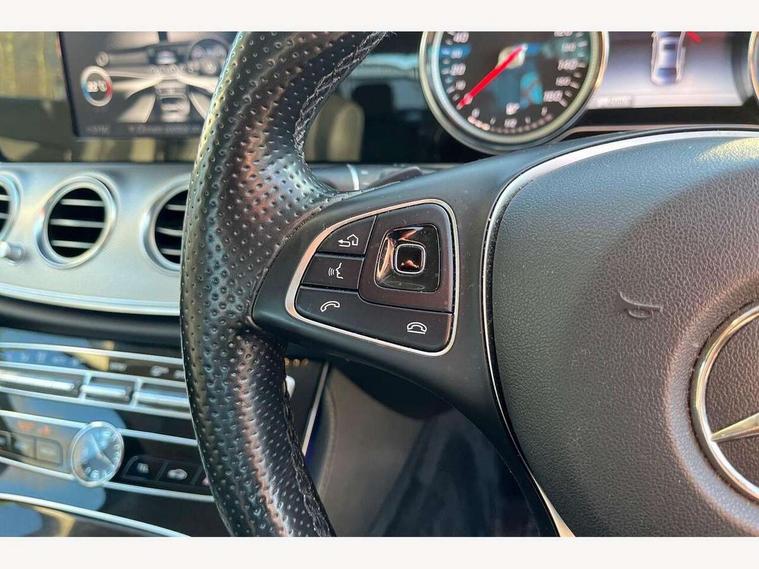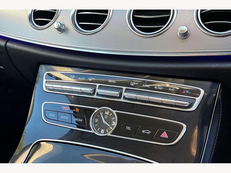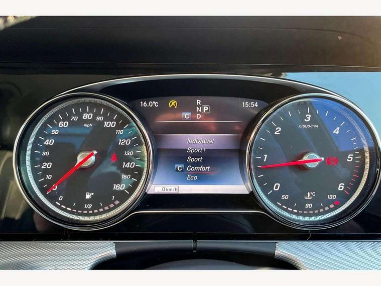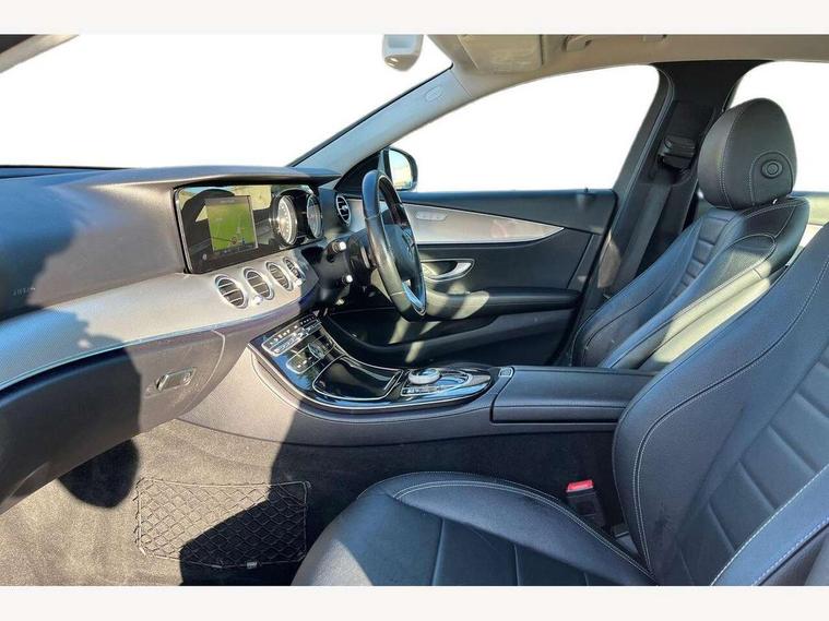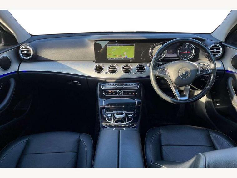 Active parking assist and reversing camera, Analogue clock, Attention assist, Blind spot assist, Boot release from drivers seat, Brake wear warning light, Cockpit display 12.3" widescreen digital instrument cluster, Cruise control with variable speed limiter, Direct steer speed sensitive steering, DYNAMIC SELECT with a choice of driving modes (ECO, Comfort, Sport, Sport+ and Individual), High resolution 12.3" multimedia colour display, Mercedes connect me, Multi function trip computer, Outside temperature display, Remote boot release, SD card based satellite navigation system, Service indicator (ASSYST), Status display for rear seat belts in instrument cluster, Stop/start system, Touchpad with control wheel, 25 litre AdBlue tank, 66 litre fuel tank, Agility control sports suspension with selective damping system and lowered by 15mm, Diesel particulate filter, Incorrect fuelling protection, 2 USB ports in centre console, 2 USB ports in the rear, Audio 20 with USB, control wheel and Media Interface with Bluetooth interface and hands-free function, DAB Digital radio, Adaptive brake lights, Aerial integrated in rear window, Body colour bumpers, Body colour door handles, Body colour door mirrors, Electric windows with one touch opening/closing and obstruction sensors, Electrically adjustable and heated door mirrors, Green tinted glass, LED High Performance headlamps including integral LED daytime running lamps, LED rear lights, Polished aluminium waistline, Pre-installation for roof rail systems, Radiator grille with integral star and 2 louvres in matt iridium silver with chrome trim, Rain sensor windscreen wipers, Rear wiper, Top surround of side windows in polished aluminium, Visible twin exhaust tailpipe in bumper, 3 spoke black nappa leather steering wheel, 40:20:40 split folding rear bench seat, Auto dual-zone climate control system, Auto Mercedes-Benz child seat recognition sensor, Courtesy lights in rear grab handles with reading light functionality, Four way partially front electric seat adjustment, Front and rear door pockets, Front centre armrest with storage compartment, Front door sills with illuminated Mercedes lettering, Glasses compartment in overhead control panel, Grey roof lining, Head restraints for driver and front passenger (four-way adjustability) and in rear (two-way), Heated front seats, Interior lighting - 64 colour Ambient lighting, Interior rear light/integral reading lights, Leather upholstery, Lockable/illuminated air conditioned glovebox, Sports pedals with stainless steel surfaces and rubber studs, Steering wheel multifunction with gearshift paddles, Steering wheel touch control buttons for audio and onboard settings, Storage compartment with 12V socket in centre console, Sunvisors with illuminated vanity mirrors, Velour floor mats, Mirror pack - E Class, Parking package including Active parking assist - E Class, Seat comfort pack - E Class, Stowage pack - E Class, 3x3 point rear seatbelts, Active bonnet, Active brake assist, Adaptive brake system with HOLD function and brake drying in the wet, Anti-lock braking system (ABS), Black seat belts, Childproof locks manually operated for rear doors and electrically operated for rear power windows, Driver and passenger side/thorax airbags, Driver/front passenger airbag, Drivers knee airbag, Electronic parking brake, Electronic Stability Programme, Hill hold assist, Hill start assist, ISOFIX child seat attachment points two outer rear seats, Pre-Safe anticipatory safety system, Seat occupancy sensor, Seatbelt warning, Tyre pressure monitoring system, Warning triangle and first aid kit, Window airbags, Alarm system/interior protection/immobiliser, Central locking with interior switch, automatic locking and crash sensor with emergency opening function, Chrome surround in electric key, Keyless start, Light carbon grain aluminium dashboard and door trim + Centre console in black open-pored ash wood, 17" 5 spoke light alloy wheels painted in black with a high-sheen finish, Tyre fit with tyre inflation compressor,