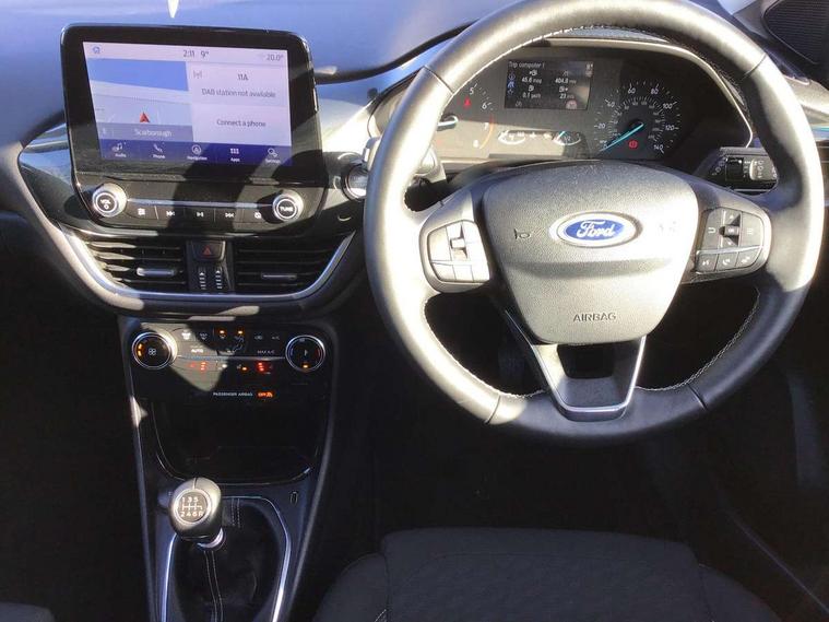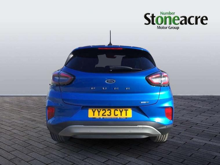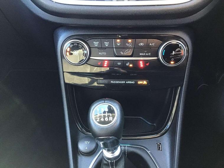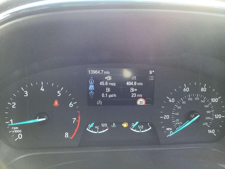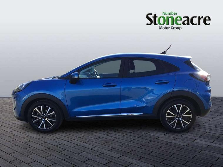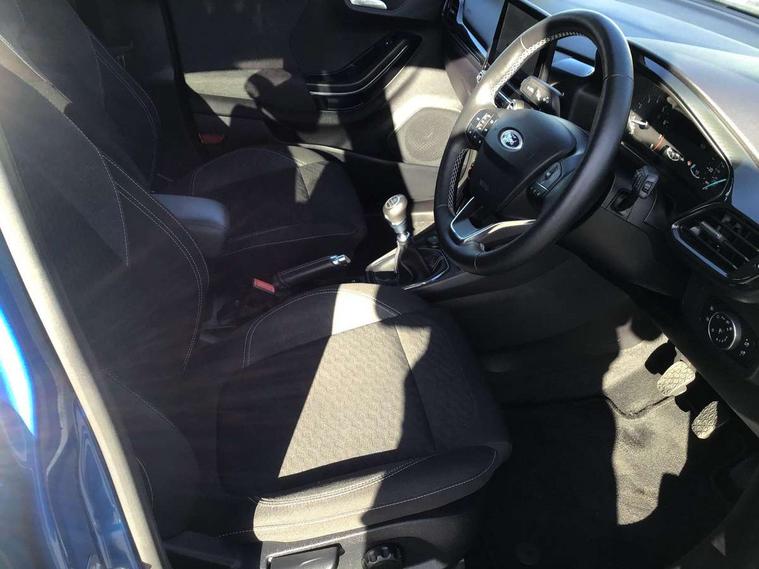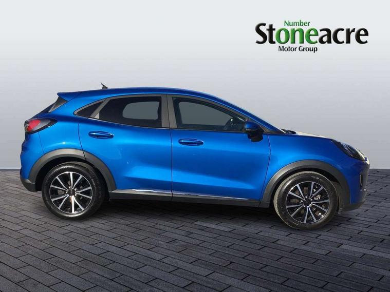 Driver impairment monitor, Emergency call service, Ford easy fuel, Lane keeping aid with lane departure warning, Power assist steering, Power start button, Rear parking sensor, Selectable drive modes(Normal, Eco, Sport, Slippery and Trail), Speed sign recognition, Standard suspension, Automatic headlights with auto high beam, Automatic rain sensing wipers, Body colour rear spoiler, LED rear lamps, Power foldable heated door mirrors with puddle lamps, Projector headlamps with LED day time running lights and front fog lamps, Quickclear heated windscreen, Rear side wing doors, Rear wiper, Third brake light, 3 seat bench in 2nd row, Centre console with armrest and stowage, Electronic automatic temperature control (EATC), Ford megabox extended bootspace, Front and rear head restraints, Front floor mats, Manual 2 way passenger seat adjustment, Manual 4 way driver seat adjust with lumbar adjustment, Sensico leather steering wheel/gear knob/handbrake, Single front passenger seat, Titanium cloth upholstery, Ford SYNC 3 navigation pack - Puma, 3 rear seatbelts, Child safety lock, Electronic stability control (ESC) and hill start assist, Pedestrian/cyclist detection & post-collision braking, Pre collision assist system, Tyre pressure monitoring system (TPMS), Thatcham alarm, 17" 10 spoke absolute black machined finish alloy wheel,