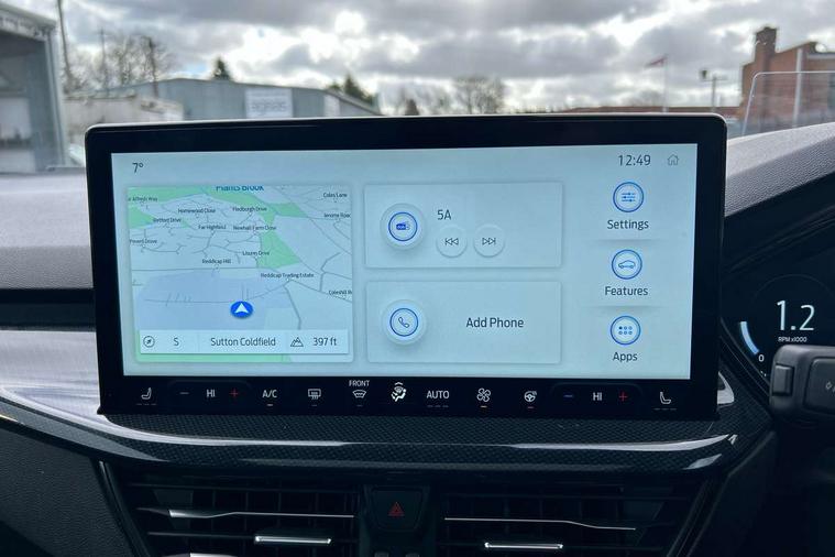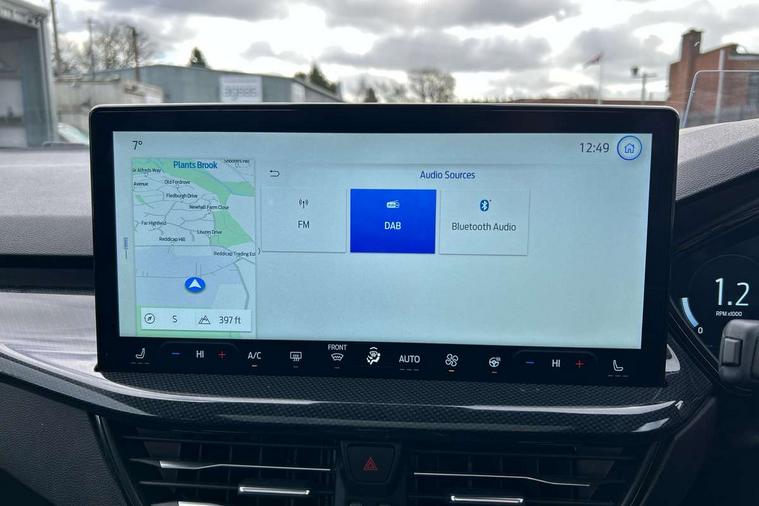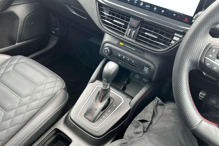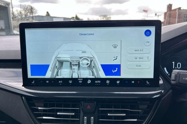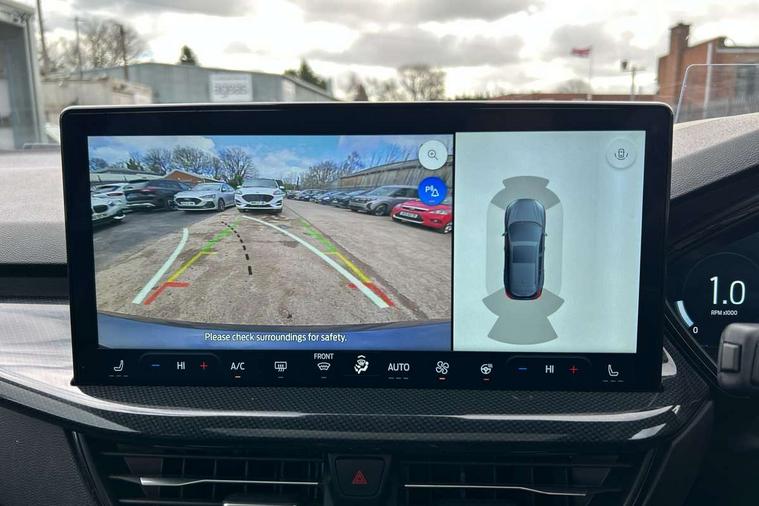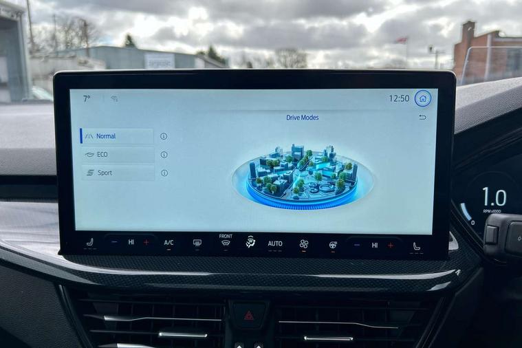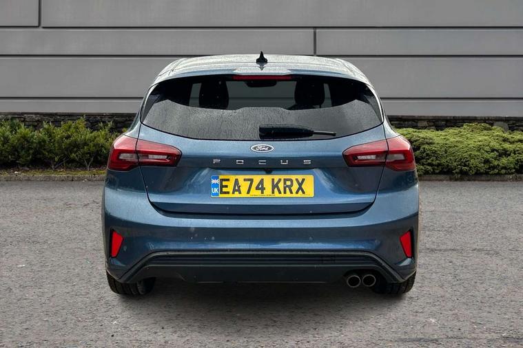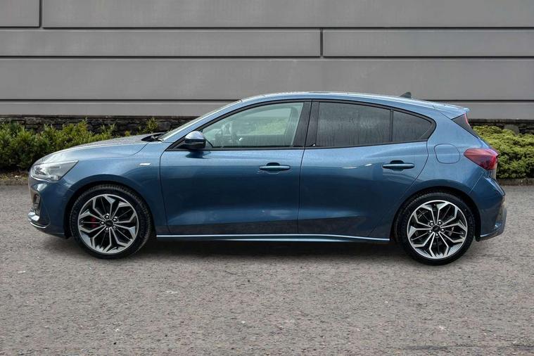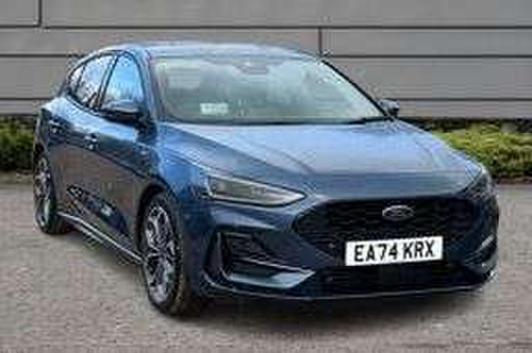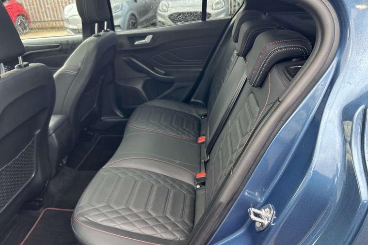 12.3" Digital instrument cluster, Bluetooth system, Digital clock, Easy fuel capless refuelling system, Eco mode, Ford SYNC4 Nav with 13.2'' touchscreen, DAB, Emergency Assistance, Apple Carplay & Android Auto, B&O Premium Audio with 10 speakers, FordPass Connect, Lane keeping system - lane keeping alert and lane keeping aid, PAS, Rev counter, Selectable drive mode, Service interval indicator, Trip computer, Wireless charging pad, Sports tuned suspension, 2 USB ports, Auto headlamps (on/off), Body coloured door handles, Electrically operated front and rear windows with one touch opening and closing, Electrically operated heated power fold door mirrors with puddle lamp with side indicators, Front variable intermittent wipers with electric wash, Heated rear window, LED daytime running lamp, LED rear lamps, LED third brake light, Polished twin tailpipe, Privacy glass, Quickclear heated windscreen, Rain sensor, Rear side wing doors, Tailgate wash/wipe, Unique ST-Line grille, full bodystyling kit, and large body coloured rear roof spoiler, 3 rear headrests, 3 seat bench in 2nd row, Dual zone electronic air temperature control, Full sensico premium upholstery, Height adjustable front headrests, Isofix child seat preparation, Load through ski hatch, Manual 2-way passenger seat adjust, Power 4-way driver seat adjust, with power lumbar adjust, Reach + rake adjustable steering column, Single front passenger seat, ST-Line Design pack - Focus, Winter pack - Focus, 3x3 point rear seatbelts, ABS+Electronic Brake force Distribution, Auto hold function, Driver airbag, EDL traction control, Electronic parking brake, Electronic stability control, Front and rear seatbelt reminder, Front inertia reel height adjustable seatbelts with pre-tensioners, Front passenger airbag, Front side airbags, Passenger airbag deactivate switch, Post collision braking, Pre collision assist with autonomous emergency braking and pedestrian/cyclist detection, Remote/power child rear door locks, Side curtain airbags, Three rear inertia reel lap/diagonal seatbelts, Tyre pressure monitoring system, Keyless entry and keyless start, MyKey system, Remote central locking & engine immobiliser, Thatcham alarm with power door dead locks, 18" 5x3 spoke pearl grey high gloss machined finish alloy wheels with mini spare wheel,