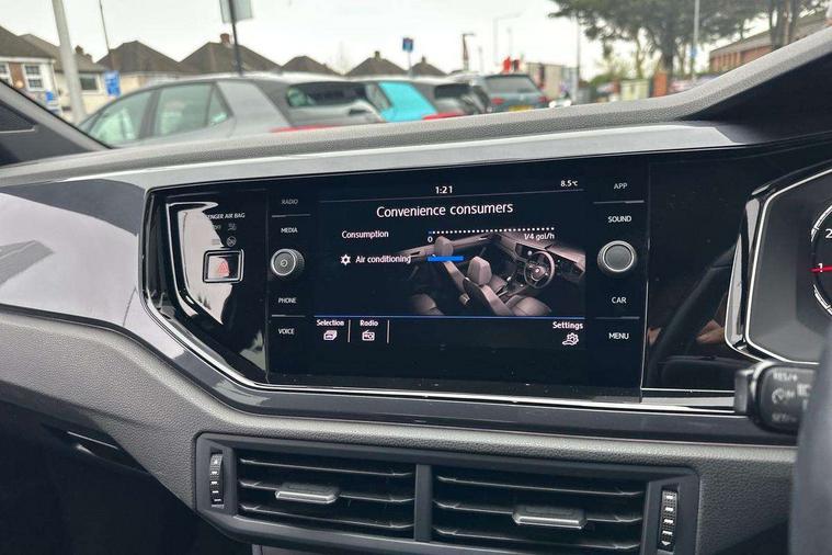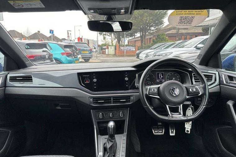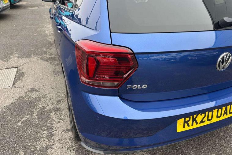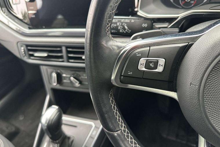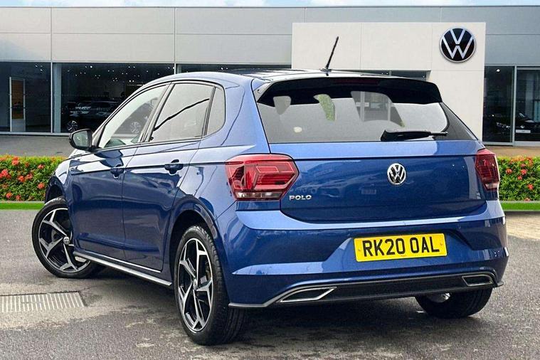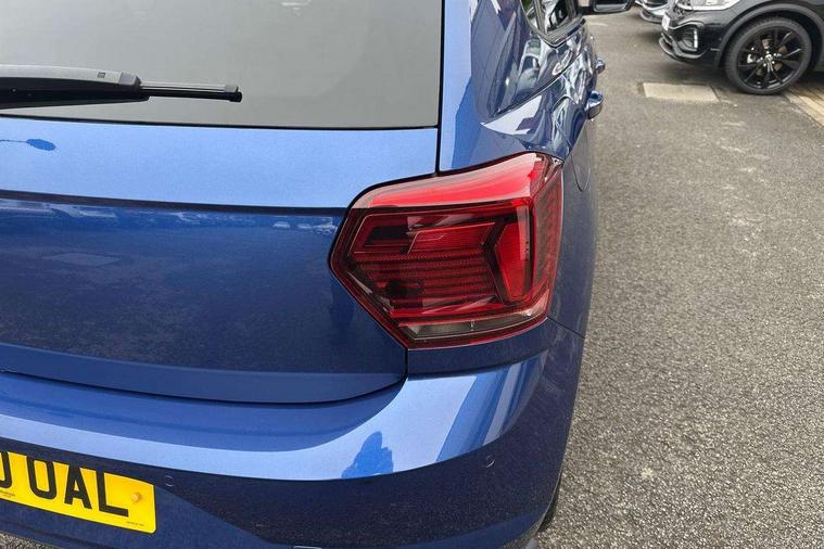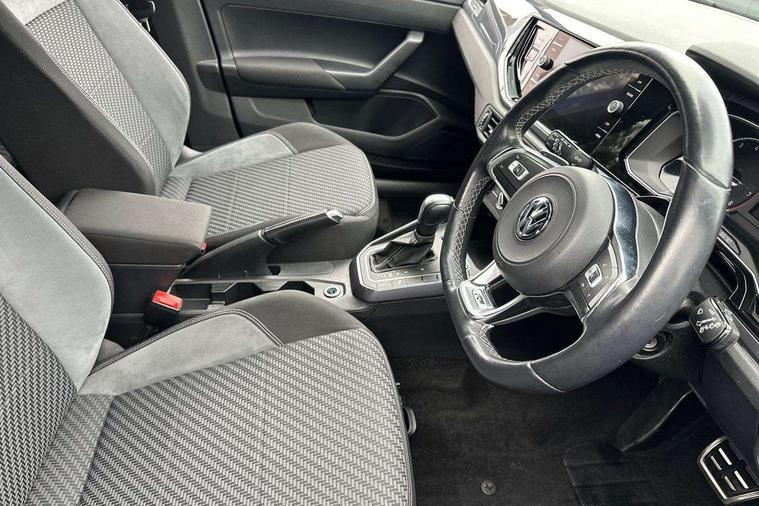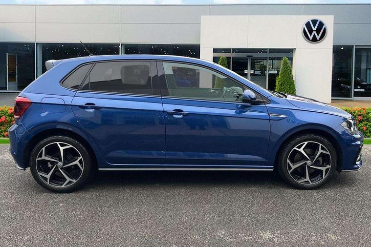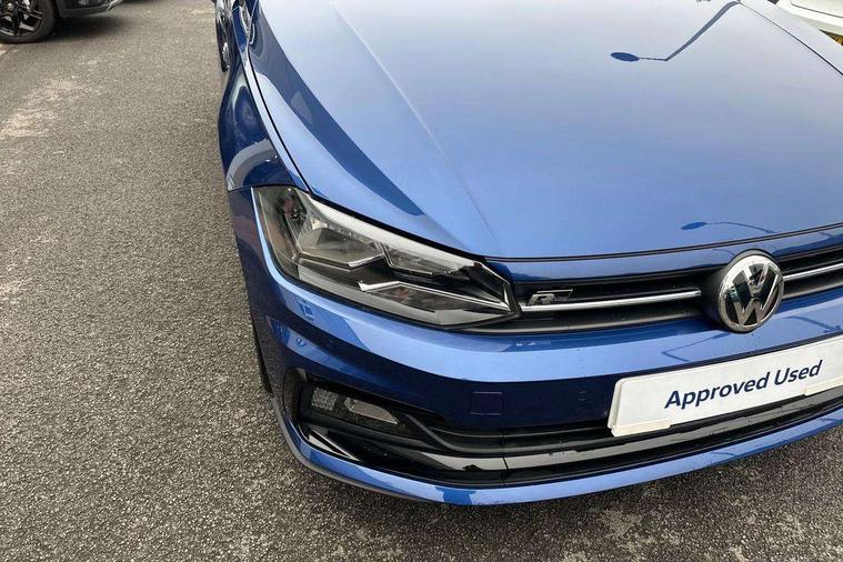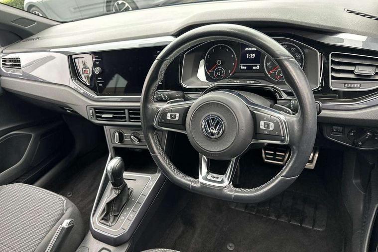 App-Connect, Digital clock, Driver alert system, Lights on warning, Multifunction computer plus, Power assisted speed sensitive steering, Speedo and rev counter, electronic odometer, trip, service interval display and fuel gauge, Start/stop system, Volkswagen connect, Warning buzzer and light for front seatbelts unfastened, Battery regeneration during braking, Galvanished body, Black grille with chrome surround, Body colour door handles, Body coloured side sills, Chrome trimmed strip on lower bumper, Electric front windows, Electrically foldable, adjustable and heated door mirrors with reverse activated kerb view adjustment on passenger's side, Front fog lights including static cornering, Front windscreen washers and wipers with 4 speed intermittent delay, Heat insulating tinted glass, Heated rear window with auto timer, High level 3rd brake light, LED darkened rear light clusters, LED daytime running lights, LED rear number plate lights, Left and right chrome effect trapezoid fascia exhaust tailpipe surrounds, Rear diffuser, Rear electric windows, Rear windscreen washer and wiper with interval delay, reverse activated, Unique R Line badging, 2 bag hooks in luggage compartment, 2 front cupholders and 12 V socket with cover, 3 rear head restraints, 60/40 split folding rear seat, Ambient lighting in front foorwell, front/rear door and dashboard light strips, Carbon flag cloth upholstery, Centre console storage with open storage compartment, Chrome-plated electric mirror adjustment switch surround, Chrome-plated electric window button surround, Driver and front passenger seat height adjustment, Driver and front passenger sunvisors with illuminated vanity mirrors, Dust/pollen filter, Folding rear seat backrest, Front + rear carpet mats, Front centre armrest with storage compartment, Front head restraints, Front seat backrest storage pockets, Front sport seats with lumbar adjustment and R line logo on seat backrest, Gear change selection via paddle shift on steering wheel, Gear lever gaiter in black trim surround, Glovebox, Handbrake grip button in chrome effect, Height/reach adjustable steering column, Instrument lighting, adjustable panel illumination, Interior light with delay, Isofix Preparation 2 Rear child seats, Jack and tool kit, Leather gear knob and handbrake grip, LED interior lighting - 2 reading lights front and rear with interior delay and dimming function, Luggage compartment cover, removable, Luggage compartment lighting, Luggage compartment with variable load floor, Stainless steel pedals, Storage compartment in front doors, Storage compartment in rear doors, Storage compartment under front seats, Three spoke leather trimmed multifunction steering wheel with aluminium inserts and R Line Logo, Titanium black roof lining and sun visors, Unique R Line door sill protectors, Light and sight pack - Polo, R Line styling pack - Polo, 3 point height adj front seatbelts + pretensioners, 3x3 point rear seatbelts, ABS, Automatic post collision braking, Driver/front passenger airbag, Drivers and front passengers safety optimised head restraints, ESP with EDL + ASR, Front and rear passenger curtain airbags, Front passenger airbag deactivation, Front seat side impact airbags, Front/rear disc brakes, HBA (Hydraulic Brake Assist), Hill hold control, Single tone horn, Tyre pressure monitoring system, Alarm with interior protection and deactivation via infotainment system, Electronic engine immobiliser, Remote central locking with 2 remote folding keys, Chrome plated air vent surround, Chrome plated instrument surrounds, Shadow steel decorative inserts, Steel space saver spare wheel,
