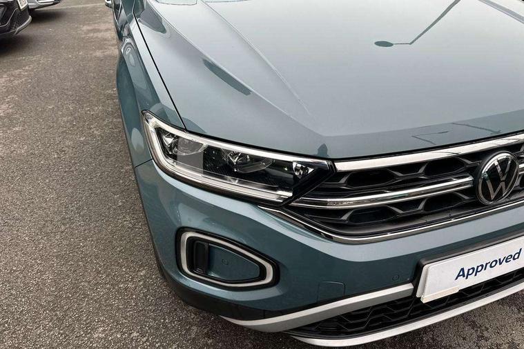 10.25" Digital cockpit pro, Bluetooth mobile phone interface, Driver alert system with fatigue detection, Driver tips and journey analysis, Emergency call service, Lane keeping system Lane Assist, Modified key software - reduce switch off time for key status change to Long no motion, Online services, Park assist including front and rear parking sensors, Service interval indicator, Tailgate/trunk lid release from outside, Think blue trainer driver tips and journey analysis, Warning sound and light for front seatbelts unfastened, Wireless app connect, Battery regeneration during braking, Start/stop function with battery regeneration, Diversity antenna for FM reception, Front and rear 6 speakers, Music playback - MP3, WMA and AAC files, Premium USB cable in choice of either Apple or Android smartphone compatibility, SD card slot, Simultaneous pairing of 2 compatible mobile devices, Title and cover art display, We Connect and We Connect Plus functionality, 3rd brake light, Auto dimming interior rear view mirror, Automatic hazard lights activation under emergency braking, Automatic headlight control with LED separate daytime running lights with coming/leaving home function, Body colour sports bumpers with silver metallic underbody fascia, Dynamic headlight range control with self adjusting whilst driving, Extended roof spoiler, Exterior mirrors aspherical on driver side, convex on front passenger side, External USB type C socket and charging sockets, Front windscreen wiper with intermittent wipe and 4 position delay, Heated rear window, LED Plus headlamps, LED rear combination lamps, LED rear number plate lights, LED tail lamp rear comination lamps, Light mode for poor weather, rain, fog or snow, Power windows with comfort operation and circuit breaker, Rain sensor, Rear exhaust tailpipe, Rear fog light on one side and reversing lights on both sides, Rear side wing doors, Rear wash/wipe with intermittent wipe setting, Remote electrically foldable door mirrors, puddle lights and reverse activated passenger's door mirror, 12V power socket in centre console, 3 rear head restraints, 3 seat bench in 2nd row, 4 load lashing points in luggage compartment, Air care climatronic air conditoning system with active combination filter and 2-zone temperature control, Chrome plated radiator grille inserts, air vent surrounds and light switch surrounds, Door and side trim panel with leatherette insert, Drawer under drivers seat, Front + rear carpet mats, Front centre armrest, Front comfort sports seats, Front cupholders x 2, Front footwell illumination, Instrument lighting, white adjustable panel illumination, Interior ambient lighting and surround lighting, Interior light delay, Isofix child seat preparation, Leather gearshift handle, LED interior light with switch off delay/dimmer and 2 front/rear LED reading lights, Load-through provision with cup holder when folded down ('Unsplit rear seat bench, split folding backrest, with centre armrest), Luggage compartment lighting, Non-folding front passenger seat backrest, Single front passenger seat, Storage compartment in left and right luggage area, Storage compartment in rear doors, Storage compartments in driver and front passenger doors, Sunvisors with illuminated vanity mirrors, Variable boot floor, height adjustable and removable, Driver assistance pack without proactive passenger protection - T-Roc, 3 point height adj front seatbelts + pretensioners, 3 point seatbelts in outer rear with ECE label, ABS, Child locks on rear doors, Driver and front passenger airbag with front passenger airbag deactivation, Driver and front passenger safety-optimised head restraints, Drivers seatbelt reminder, Electronic parking brake, Electronic Stability Control (ESC) inc EDL (Electronic Differential Lock) and ASR (Traction Control), Front and rear passengers curtain airbag system including front side airbags, Front assist with city emergency braking and pedestrian monitoring, Front seat side impact airbags, Predictive pedestrian protection, Rear disc brakes, Single tone horn, Tyre pressure loss indicator, Volkswagen roadside assistance, Alarm with interior protection, Anti-theft alarm system with interior monitoring, backup horn, and towing protection, Remote central locking with SAFELOCK, radio remote control with 2 remote control folding keys, Trims for alloy wheels,