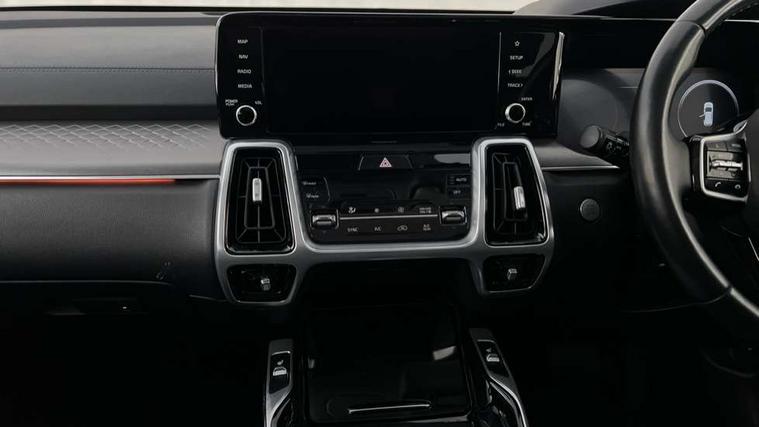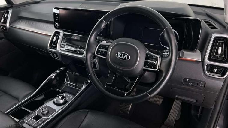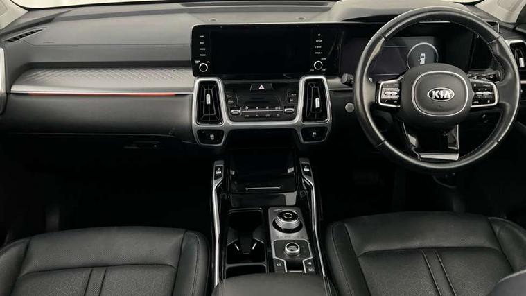 10.25" Touchscreen Satellite Navigation with DAB, Apple car play/Android Auto with voice control, Digital cockpit, Drive mode selector, Driver attention warning, eCall emergency system, Emergency stop signalling system, External temperature gauge, Forward Collision-Avoidance Assist (FCA) - City/Pedestrian, Front parking sensors, Highway Driving Assist (HDA), Intelligent speed limit assist, Lane follow assist, Manual speed limit assist (MLSA), PAS, Rack mounted power steering, Rear parking sensor, Reversing camera system with dynamic guidelines (Integrated into centre fascia screen), Smart cruise control with stop and go functionality, Smart power tailgate, Telematics system with UVO connect services, Trip computer, Wireless Smartphone charger, Intelligent All-wheel drive, Self levelling rear suspension, Terrain mode select (Mud, Snow, Sand), 2 x Front row USB charge port, Audio system with 6 speakers, Multi device Bluetooth connection with voice recognition and music streaming, Radio/MP3 player, Steering wheel mounted audio controls, USB port for connection of a media device, All round electric windows auto up/down function, Auto dimming rear view mirror, Automatic defog system, Automatic headlights control, Black side sill and wheel arch body mouldings, Body colour door mirrors, Body coloured bumpers, Electrically folding/adjustable/heated door mirrors with LED indicators, Exterior grab door handles, Front and rear silver skid plates, Gloss black radiator grille, Headlamp levelling, Heated rear window, Heated rear windscreen, LED Bi-Function headlights, LED daytime running lights, LED front fog lights, LED High-mounted Brake Light, LED rear combination lights, LED rear fog lights, Privacy glass, Rain sensing front wipers, Rear spoiler, Roof rails, Satin chrome exterior door handles, Trailer stability assist, Windscreen Washer Level Warning, 1 x 3rd Row USB charge port, 2 x 2nd Row USB charge port, 3 x passenger assist grips, 50/50 split/folding 3rd row of seats, 60:40 split remote folding and reclining 2nd row seats, 8 way power adjustable driver seat with 2 way electric lumbar (sliding, reclining, tilt, height), 8 way power adjustable front passenger seat (sliding, reclining, tilt, height), Air conditioning for 3rd row of seats, Ambient lighting, Center fascia premium etching, Centre console cupholder, Centre console storage box and armrest, Cupholders in rear armrest, Door scuff plate, Dual zone automatic air conditioning, Front and rear door storage, Front cabin lights with sunglass holder, Front seat and rear pockets, Gearshift paddles, Heated front seats, Heated steering wheel, Height adjustable head restraints, Illuminated glovebox, Interior door lock/unlock function, ISOFIX Child seat top tethers and anchor fixings, Leather trimmed steering wheel, Leather upholstery, Light grey headlining, Load area cover, Luggage area light, Luggage net with hooks, Outer 2nd row heated seats, Passenger walk-in switch, Rear air vents, Rear centre armrests, Sunvisors with vanity mirror illumination (Driver and front passenger), Tilt/telescopic adjustable steering wheel, 3 point seatbelts on all seats, ABS/EBD, Active front headrests, Downhill brake control, Electronic parking brake with auto hold, Electronic stability control, Front center airbag, Front passenger airbag cut-off switch, Front seatbelt pretensioners, Height adjustable front seatbelts, Hill start assist control (HAC), Impact sensing auto door unlocking, Multi collision brake assist, Rear door child safety locks, Twin curtain airbags, Twin front airbags, Twin front side airbags, Tyre pressure monitoring system, Advanced anti theft alarm system, Deadlocks, Engine Start/Stop Button with Smart Entry System, Immobiliser, Locking wheel nuts, Visible vehicle identification number, 19" Alloy wheels, Temporary spare wheel (space saver),