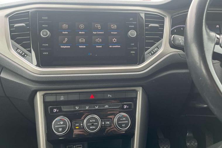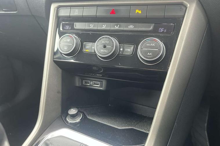 'Lights On' Reminder warning buzzer, 2 USB connection charging sockets, Adaptive cruise control with front assist, radar sensor controlled distance monitoring, city emergency braking, App-Connect, Automatic start/stop system, Bluetooth telephone and audio connection for compatible devices, Car information display, Driver tips and journey analysis, Lane assist, Multifunction computer with visual gear change recommendation for fuel consumption, Service interval indicator, Think blue trainer driver tips and journey analysis, Warning sound and light for doors and tailgate open, Warning sound and light for front seatbelts unfastened, We Connect Go Dongle, Battery regeneration during braking, DAB Digital radio, Multi device interface (MDI) with USB connection, Music playback - MP3, WMA and AAC files, Premium USB cable in choice of either Apple or Android smartphone compatibility, SD card slot, Simultaneous pairing of 2 compatible mobile devices, SMS functionality - read, compose and send SMS messages using touch-screen display, Title and cover art display, Auto dimming interior rear view mirror, Automatic hazard lights activation under emergency braking, Black grained lower door protectors, Black grained wheel arches, Body colour bumpers with silver metallic underbody fascia, Body colour door handles, Chrome trim on upper and lower radiator grille, Dusk sensor, Electrically foldable, adjustable and heated door mirrors with puddle lights and reverse activated kerb-view adjustment on passenger's door mirror, Front and rear electric windows, Front windscreen wiper with intermittent wipe and 4 position delay, Fully galvanised body, Heated rear window, High level 3rd brake light, LED rear number plate lights, Manual coming/automatic leaving home lighting function, Rain sensor, Rear wash/wipe with intermittent wipe setting, 12V socket in centre console storage area, 2 front reading lights, 3 rear head restraints, 4 load lashing points in luggage compartment, Climate control - 2 zone electronic air conditioning with automatic air recirculation and allergy filter, Drawer under drivers seat, Front centre armrest with storage compartment, longitudinal and height adjustable and two rear air vents, Front cupholders x 2, Front seat back storage pockets, Glovebox, Height adjustable front seats, Height/reach adjust steering wheel, Illuminated vanity mirrors, Instrument lighting, white adjustable panel illumination, Interior light delay, Isofix easy fit child seat preparation for 2 outer rear seats, Load through provision with single cup holder when folded down, Luggage compartment cover, removable, Luggage compartment lighting, Split folding rear seat backrests with centre armrest, Storage compartment in left and right luggage area, Storage compartment in rear doors, Storage compartments in driver and front passenger doors, 3 rear three point seatbelts, ABS, Curtain airbags, Driver and front passenger safety-optimised head restraints, Drivers and front passengers airbags with passengers deactivation switch, Electronic parking brake with auto hold, Electronic stability control (ESC) includes ASR, EDL, EDTC and trailer stabilisation function, Front seat side impact airbags, Predictive pedestrian protection, Rigid safety cell with front and rear crumple zones, Three point height adjust front seatbelts + pretensioners, Tyre pressure loss indicator, Ventilated front and rear disc brakes, Volkswagen roadside assistance, Alarm with interior protection and deactivation via infotainment system, Electronic engine immobiliser, Remote central locking with 2 remote folding keys, Limestone grey decorative inserts in dash and door panel, Steel space saver spare wheel,