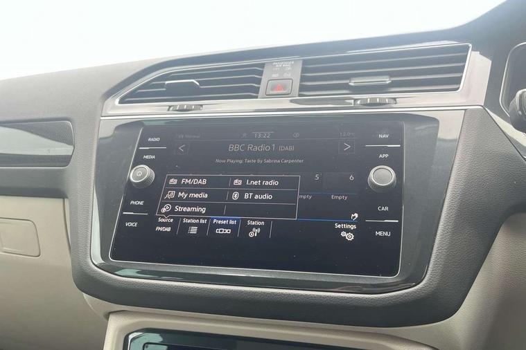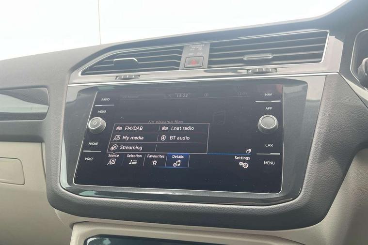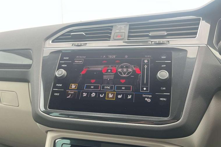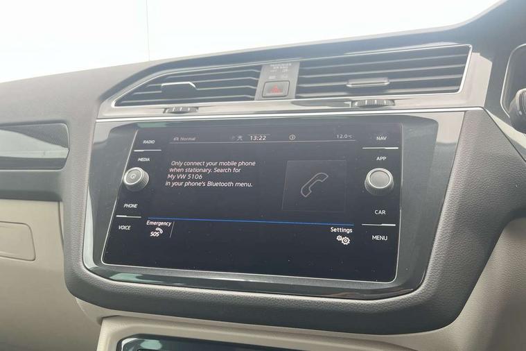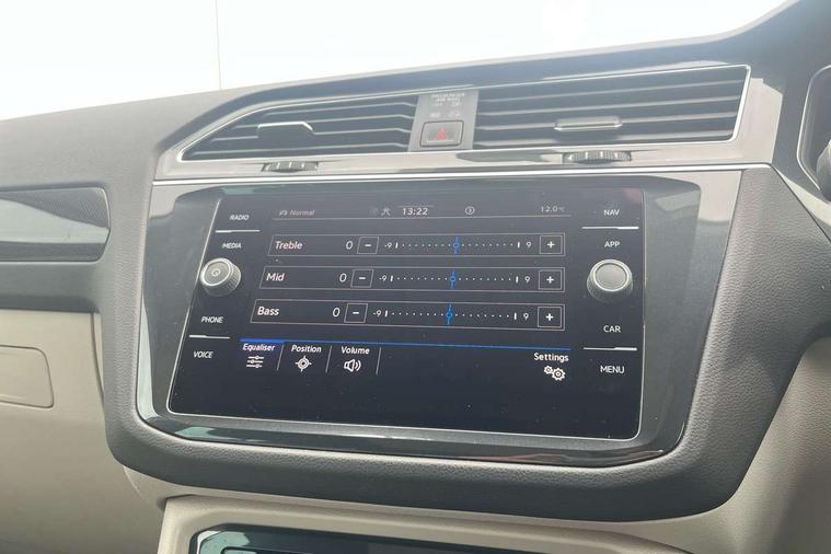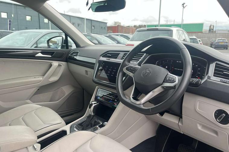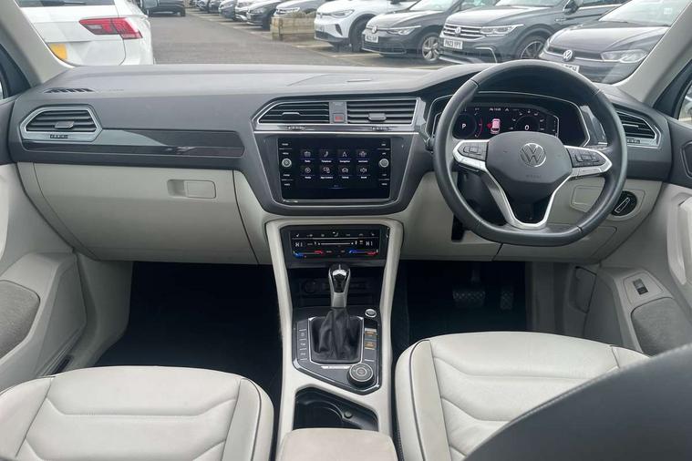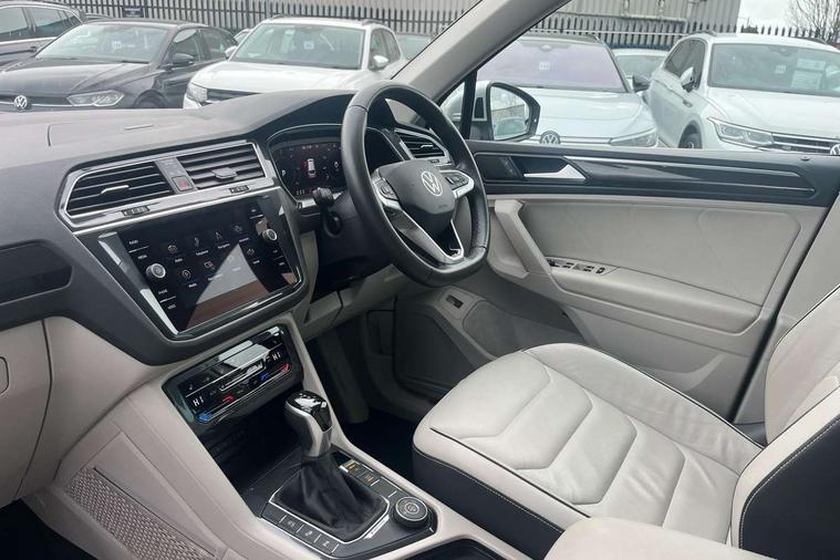Ambience pack - Tiguan, Chrome pack - Tiguan, Easy open and close pack with safelock - Tiguan, Anti theft alarm system with interior monitoring, backup horn and towing protection, Anti theft wheel bolts, Central locking system with safelock radio remote control and 2 remote control folding keys, Electronic engine immobiliser, 2 USB-C ports in the front, 1 USB-C charging socket on the center console in the rear, Diversity antenna for FM reception, Radio, SD card slot, Simultaneous pairing of 2 compatible mobile devices, SMS functionality - read, compose and send SMS messages using touch-screen display, Title and cover art display, 3 point seat belt for centre rear seats, 3 point seat belts with seat belt pretensioners for the outer rear seats, Active bonnet, Curtain airbags for front and rear passengers, Driver/Front Passenger airbags, Drivers knee airbag, Electronic parking brake with auto hold, Electronic Stability Control with driver steering recommendation, ABS, ASR, EDL, EDTC and trailer stabilization, Front assist with autonomous emergency braking (for Adaptive Cruise Control ACC up to 130 mph), Front disc brakes, Front passenger airbag deactivation, Front side airbags, Height adjustable front 3 point seatbelts + pretensioners, Hill hold control, Manual child proof rear door locks, Pedestrian monitoring system, Power assisted brakes, Proactive passenger protection system in combination with front assist, Rear disc brakes, Rigid safety cell with front and rear crumple zones, Two tone horn, Warning sound and light for front seat belts if unfastened, Aluminium door sill protectors, Auto dimming interior rear view mirror, Automatic headlight control system, Body colour door handles, Body coloured bumpers, Body coloured door mirrors with integrated indicators, Coming/leaving home lighting function, Dynamic headlight range control, Front and rear electric windows, Heated rear window, High level 3rd brake light, IQ light-Adv high beam, Dynamic light assist for LED matrix headlamp+LED separate DRL+DCL, dark red rear LED tech, Poor weather light+ cornering light, Laminated safety glass windshield, heat and sound insulating, LED rear number plate lights, Poor weather light and cornering light, Privacy glass for rear side windows and rear window, Rain sensor windscreen wipers, Rear exhaust tailpipe, Rear fog lamp, Rear side wing doors, Rear windscreen washer and wiper with interval delay, Side and rear windows in heat insulating glass, Tilting and sliding panoramic sunroof with rear panoramic sunroof, Trailer Stability Programme, Windscreen wipers/ intermittent wipe + 4 position delay, 12V outlet in center console rear and in luggage compartment, 12V outlet in front and tray, 2 cup holders in front, 2 LED front reading lights, 2 LED rear reading lights, 3 bench rear seats in 2nd row, 3 rear headrests, 4 load lashing points, 40:20:40 split folding rear seats, Air Care Climatronic 3 zone automatic climate control with enhanced air filter and controls in the rear, Backrest release for left front seat, Climate control unit rear with touch function, Door and side trim panel in foam film and woven fabric, Front + rear carpet mats, Front centre armrest, Front footwell illumination, Front seats head restraints (x-adjustment), Height adjustable front seats, Height/reach adjust steering wheel, Instrument lighting white adjustable panel illumination, Interior light with delay, Isofix Preparation 2 Rear child seats, Leather gear knob, Lockable cooled glovebox, Luggage compartment lighting, Luggage net, Rear bench seat asymetrically split folding, longitudinally movable and folding with load-through hatch and center armrest, Remote unlocking for rear seat backrest, Removable luggage cover, Removable rear headrests, Safety optimised front head restraints, Single front passenger seat, Sliding/reclining rear seats, Standard rear seat release, Storage compartment in driver's door, Storage compartment in passenger's door, Storage compartment in rear doors, Storage compartments in luggage area left and right, Storage tray on dashboard, Sun visors with illuminated vanity mirrors, Tool kit, Top front comfort seats, Variable boot floor, height adjustable and removable, Adaptive cruise control ACC stop and go including speed limiter, App-Connect incl. App-Connect Wireless for Apple CarPlay and Android Auto, Bluetooth phone integration system, Digital Cockpit Pro - Active info display, Distance control assist, Driver alert system, Driver profile selection, Dynamic road sign display, eCall emergency call system, Electromechanical speed sensitive power steering, Engine start/stop button, Lane keeping system Lane Assist, Lights on warning, Motorised electric tailgate operated via key fob, drivers door and foot movement under tailgate, Multifunction front facing camera, Outside temperature display, Premium multifunction display with multi colour display, Remote control boot opening, Rev counter, Revision / skills operating concept travel assistant, Service interval indicator, Speed limit display, Start/stop system with regenerative braking, Tailgate/trunk lid unlocking from outside, Trip computer, Warning sound and light for doors and tailgate open, All wheel drive - 4Motion, Battery regeneration during braking, Diesel particulate filter, Misfuel prevention device for diesel engine, Selective Catalytic Reduction, XDS electronic differential lock for improved traction and handling,