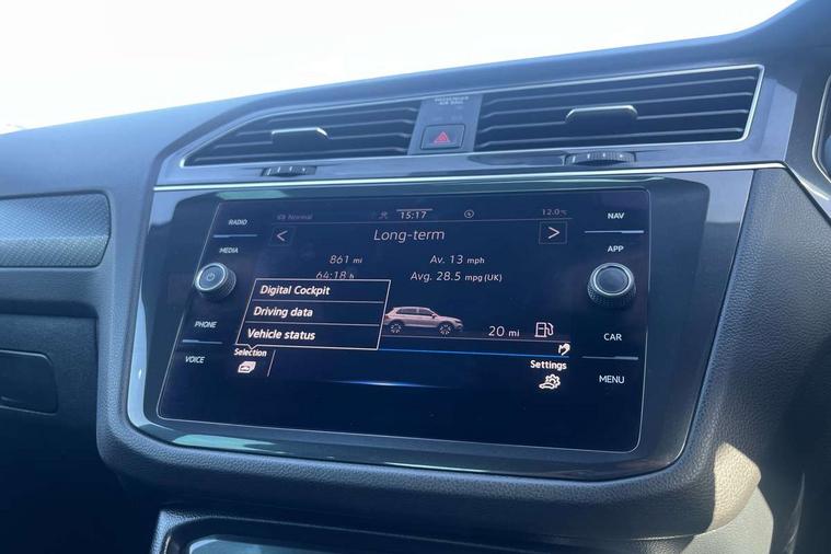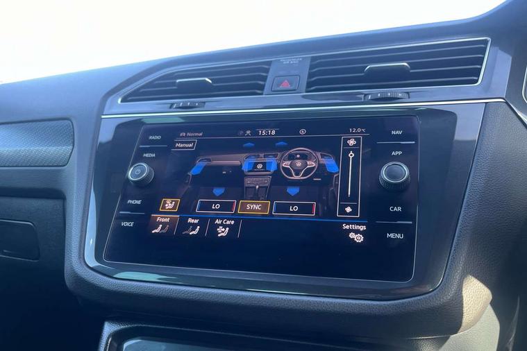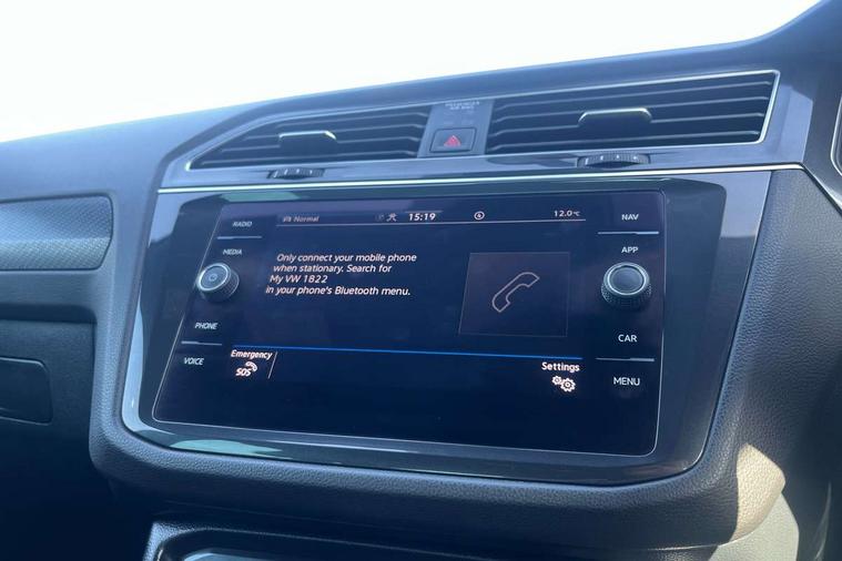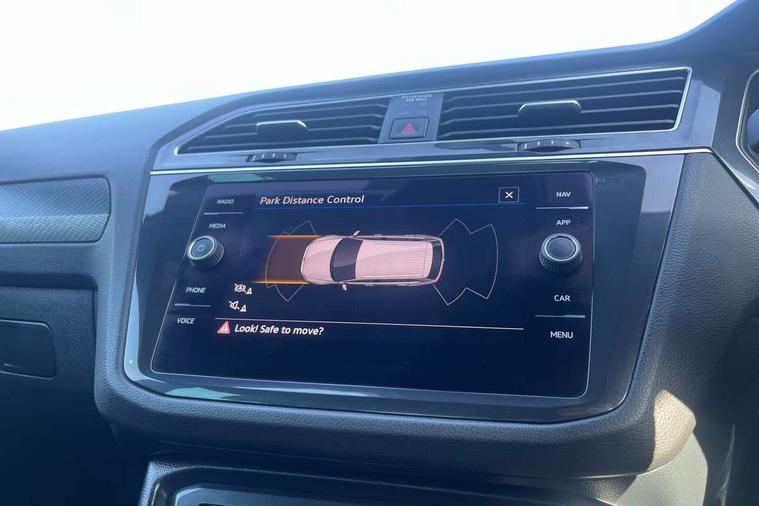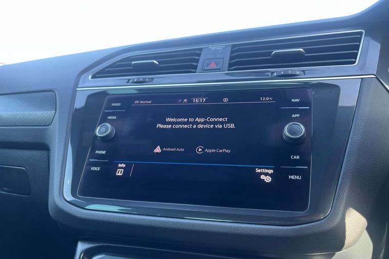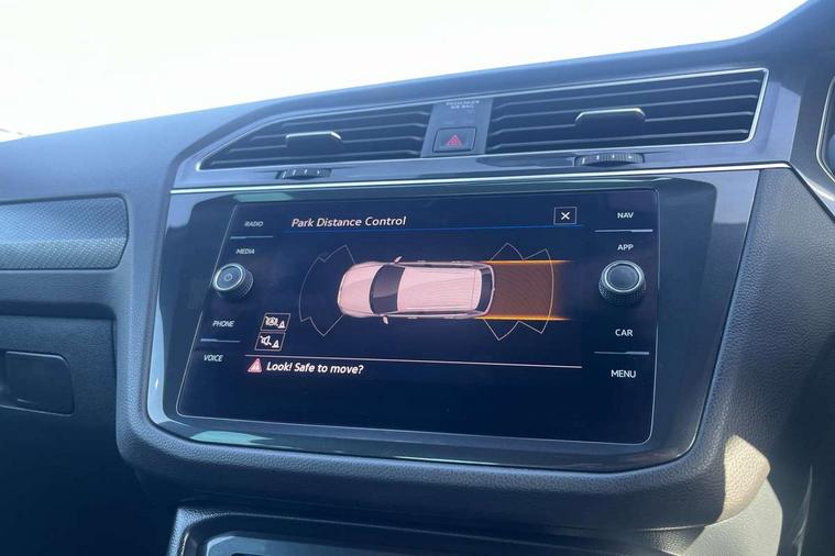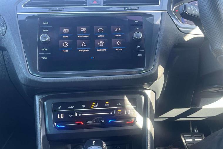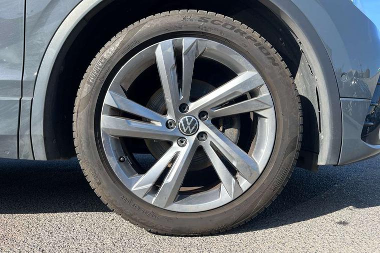 Adaptive cruise control ACC stop and go including speed limiter, App-Connect incl. App-Connect Wireless for Apple CarPlay and Android Auto, Bluetooth phone integration system, Comfort drive travel assist, Digital cockpit pro, Driver alert system, Driver profile selection, Dynamic road sign display, eCall emergency call system, Electromechanical speed sensitive power steering, Emergency assist, Front and rear parking distance sensors, Instrument cluster mph speedometer Great Britain, Lane keeping system Lane Assist, Lights on warning, Multifunction front facing camera, Outside temperature display, Premium multifunction display with multi colour display, Rev counter, Service interval indicator, Speed limit display, Start/stop system with regenerative braking, Trip computer, Warning sound and light for doors and tailgate open, Battery regeneration during braking, Digital radio reception DAB+, Diversity antenna for FM reception, Radio, Auto dimming interior rear view mirror, Automatic headlight control system, Body colored bumpers in R-Line style, Body colored exterior mirror housings, Body colour door handles, Chrome moldings on the side windows, Coming/leaving home lighting function, Dynamic headlight range control, Front and rear electric windows, Heated rear window, High level 3rd brake light, Laminated safety glass windshield, heat and sound insulating, LED rear combination lamps, LED rear number plate lights, License plate carrier in front and rear, Poor weather light and cornering light, Privacy glass for rear side windows and rear window, R Line body kit, R Line side sills, Rain sensor, Rear exhaust tailpipe, Rear fog lamp, Rear side wing doors, Rear spoiler in R style, Rear windscreen washer and wiper with interval delay, Side and rear windows in heat insulating glass, Trailer Stability Programme, Unique R Line badging, Windscreen wipers/ intermittent wipe + 4 position delay, 12V outlet in center console rear and in luggage compartment, 12V outlet in front and tray, 2 LED front reading lights, 2 LED rear reading lights, 3 bench rear seats in 2nd row, 3 rear headrests, Air Care Climatronic 3 zone automatic climate control with enhanced air filter and controls in the rear, Backrest release for left front seat, Black headlining, Brushed stainless steel pedals and footrest, Carpet mats in front and rear with decorative stitching in Gray, Climate control unit rear with touch function, Door and side trim panel in foam film, insert in leatherette, Front footwell illumination, Front scuff plates in aluminum with R-Line logo, Front seats head restraints (x-adjustment), Height/reach adjust steering wheel, Isofix Preparation 2 Rear child seats, Leather gear knob, Rear bench seat asymetrically split folding, longitudinally movable and folding with load-through hatch and center armrest, Remote unlocking for rear seat backrest, Single front passenger seat, Sun visors with illuminated vanity mirrors, Driver assistance pack plus - Tiguan DSG, 3 point seat belt for centre rear seats, 3 point seat belts with seat belt pretensioners for the outer rear seats, Curtain airbags for front and rear passengers, Driver/Front Passenger airbags, Drivers knee airbag, Electronic parking brake with auto hold, Electronic Stability Control with driver steering recommendation, ABS, ASR, EDL, EDTC and trailer stabilization, Front assist with autonomous emergency braking (for Adaptive Cruise Control ACC up to 130 mph), Front disc brakes, Front passenger airbag deactivation, Front side airbags, Height adjustable front 3 point seatbelts + pretensioners, Manual child proof rear door locks, Pedestrian monitoring system, Proactive passenger protection system in combination with front assist, Rear disc brakes, Two tone horn, Warning sound and light for front seat belts if unfastened, Warning triangle, Anti theft alarm system with interior monitoring, backup horn and towing protection, Anti theft wheel bolts, Electronic engine immobiliser, Chrome elements on the mirror switch power window switches and door pulls, Decorative inserts Carbon Gray for dashboard and front door trim panels, Interior door handle in matte chrome, Tool kit,