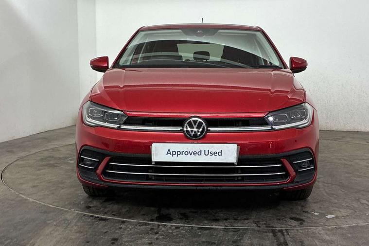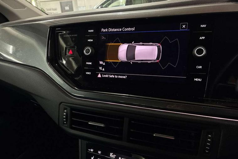 Adaptive cruise control without follow-to-stop and speed limiter, Bluetooth mobile phone interface, Digital Cockpit Pro with 10.25" Display, Driver alert system, Dynamic road sign display, Emergency call service, Power assisted speed sensitive steering, Preparation for We connect and We connect plus, Speedo and rev counter, electronic odometer, trip, service interval display and fuel gauge, Standard rear axle, Travel Assist - Lane keeping system and traffic jam assist, Travel assist including emergency assist, Trip computer, Warning signal and warning light for front and rear seatbelts not fastened, Washer fluid level indicator, Wireless app connect, Front wheel drive, Rear shock absorpion, Start-stop system with battery regeneration (recuperation - energy recovery during braking), DAB Digital radio, Diversity antenna for FM reception, Front and rear 6 speakers, Automatic dimming interior rear view mirror, Automatic headlights, Body colour door handles, Body coloured bumpers and radiator grille with chrome trims, Electric front windows, Heat insulating darkened glass in side and rear windows, Heat insulating glass windscreen, LED separate daytime running lights with coming/leaving home function, Power folding adjustable/heated exterior mirrors and front passenger exterior mirror lowering function, Rain sensor, Rear electric windows, Rear fog light, Rear side wing doors, Rear windscreen washer and wiper with interval delay, Third brake light, 12V power socket in centre console, 2 USB-C ports in the front, 2 USB-C charging sockets on the center console in the rear, 3 rear head restraints, 60/40 split folding rear seat and rear seat bench not split, Air care climatronic air conditoning system with active combination filter and 2-zone temperature control, Ambient lighting, Ceramique headliner, Chrome plated radiator grille inserts, air vent surrounds and light switch surrounds, Door and side trim panel, Driver and front passenger seat height adjustment, Driver/passenger sunvisors with illuminated vanity mirrors, Front + rear carpet mats, Front centre armrest, Front footwell illumination, Front seat backrest storage pockets, Front sports comfort seats, Handbrake lever handle in leather, Isofix child seat preparation easy-fit (for two outer rear seats, and front passenger seat) compatible with I-size, Leather trimmed gear knob, LED interior light with switch off delay and dimmer, 2 reading lights front and rear, Luggage compartment cover, Luggage compartment floor, Luggage compartment lighting, Lumbar adjustment for front seats, Multifunction steering wheel, Single front passenger seat, Standard pedal cluster, IQ LED matrix headlights pack - Polo, Light and vision pack - Polo, 3 point height adj front seatbelts + pretensioners, 3x3 point rear seatbelts, ABS, Driver and front passenger airbag with front passenger airbag deactivation, Drivers and front passengers safety optimised head restraints, ESC (Electronic stability control) + EDL (Electronic Differntial lock) and ASR (Traction control), Extended and predictive pedestrian/ cyclist protection, Front curtain and side airbags with center airbag, Front disc brakes, Hill hold control, Manual child lock in rear doors, Rear drum brakes, Single tone horn, Tyre pressure loss indicator, Alarm with interior protection, Anti-theft alarm system with interior monitoring, backup horn, and towing protection, Anti-theft wheel bolts, Electronic engine immobiliser, Chrome applications on rotary light, mirror adjustment, window regulator switches, outlet with frame in black, Deep iron gloss decorative inserts in dash and front door panels, Low rolling resistance tyres,