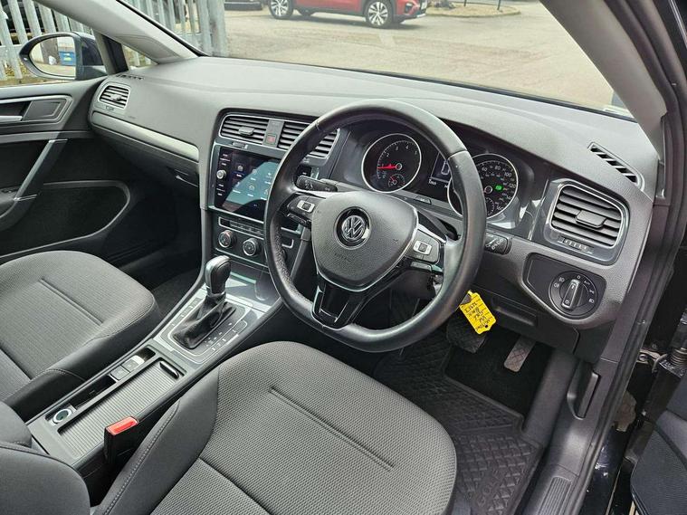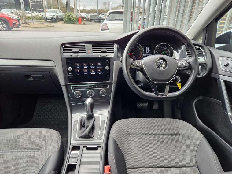 'Lights On' Reminder warning buzzer, ACC - Adaptive cruise control with front assist, forward collision warning, distance monitoring, city emergency brake and speed limiter, Bluetooth telephone and audio connection for compatible devices, Brake pad wear indicator warning light, Driver alert system, Driver profile selection, Driving Mode Selection with four preset modes - Eco, normal, sport or individual modes, Instrument cluster in white, Multifunction computer with visual gear change recommendation for fuel consumption, Power assisted speed sensitive electro-mechanical steering, Push tank flap, Speed limit display, Speedo, rev counter, electronic odometer, trip, service interval display, exterior temperature and fuel gauge, Stop/start system, Warning buzzer and light for front seatbelts unfastened, Battery regeneration during braking, XDS electronic differential lock, Composition media system, DAB Digital radio receiver, Driver Personalisation profile selection, MP3/WMA compatability, Multi device interface (MDI) with USB connection, Personalisation 1.1 profile for media, Premium USB cable in choice of either Apple or Android smartphone compatibility, SD card slot, SMS Functionality, USB and SD card connectivity, Black front air intake and radiator grille with chrome insert, Black rear diffuser, Body colour bumpers, Body colour door handles, Body colour door mirrors with integrated indicators, Dusk sensor + automatic driving lights, Electric front windows, Electric rear windows, Electrically adjustable and heated door mirrors, Fully galvanised body, Heated rear windscreen, Hidden exhaust pipe, High level 3rd brake light incorporating LED Technology, LED daytime running lights, LED front fog lights with static cornering light function, Rear fog lamp, Rear tinted glass 65% light absorbing from B pillar backwards, Rear window aerial, Rear window wash/wipe with intermittent wipe, Reflectors in all doors, Tailgate with integrated rear roof spoiler, Windscreen wipers/ intermittent wipe + 4 position delay, 12V socket in luggage compartment, 3 rear headrests, 4 load lashing points in luggage compartment, 60/40 split folding rear seat backrest, Auto fold down lever in rear seat backrest, Bag hook in luggage compartment x 2, Cooled glovebox, Cupholder cover, Dust/pollen filter, Front and rear reading lights incorporating LED technology, Front centre armrest with storage compartment and two rear air vents, Front seat back storage pockets, Grab handles front x 2, rear x 2 with integrated coat hooks, Height and reach adjustable steering wheel, Illuminated vanity mirrors, Instrument lighting white adjustable panel illumination, Interior light delay, Isofix preparation for 2 rear child seats, Load through provision with rear centre armrest and cupholders x2, Luggage compartment lighting, Overhead storage box, Passenger underseat drawer, Pearl grey headlining, Storage box in luggage compartment, Storage compartment in roof console with cover, Storage compartments in centre console, Storage compartments in front doors, Storage compartments in rear doors, Stowable luggage compartment cover, Sun visors, Variable boot floor, height adjustable and removable, Convenience Pack - Golf, Light and Sight pack - Golf, Mirror pack - Golf, 3 rear three point seatbelts, Airbags - Driver's and front passenger's, curtain airbag, Driver's knee, front side impact and passenger's airbag deactivation switch, Anti-lock Braking System (ABS) with Hydraulic Brake Assist (HBA), Automatic post collision braking system, Child locks on rear doors, Driver/Passenger optimised head restraints, Electronic parking brake with auto hold, Electronic stability control (ESC) including Electronic differential lock (EDL) and ASR (Traction control) with deactivation via infotainment system, Front ventilated disc brakes and rear disc brakes, Pre crash preventive occupant protection, Three point height adjustable front seatbelts with tensioners, Tyre pressure loss indicator, Alarm with interior protection and deactivation via infotainment system, Electronic engine immobiliser, Remote central locking with 2 remote folding keys, Brushed dark silver decorative inserts in dash and door panels, Chrome plated air vent surround, Chrome plated electric mirror adjustment light switch surround, Polar night black centre console, Steel space saver spare wheel,