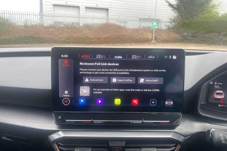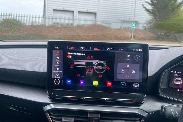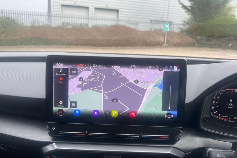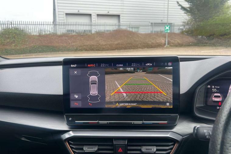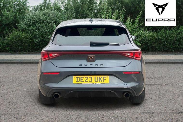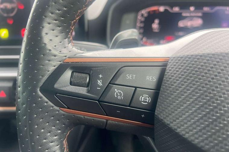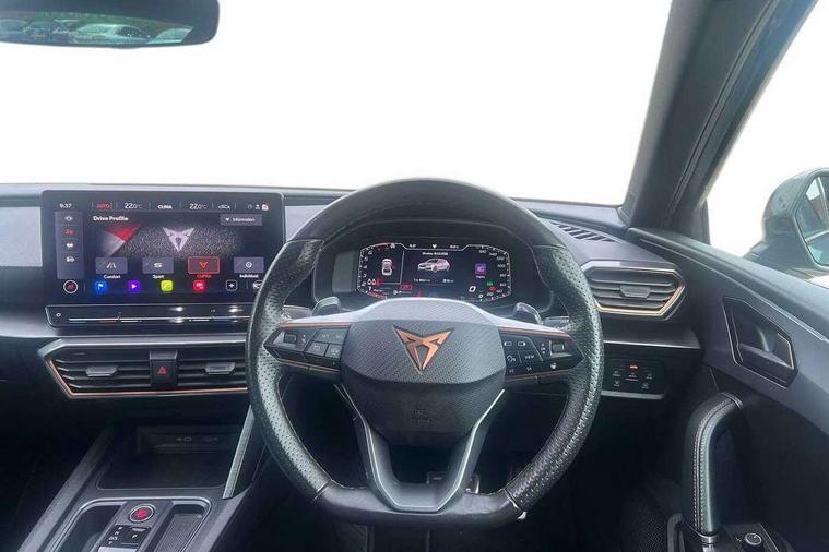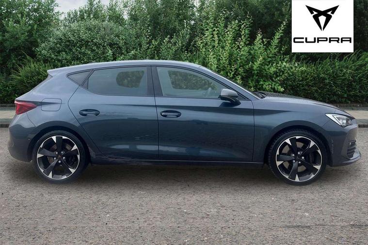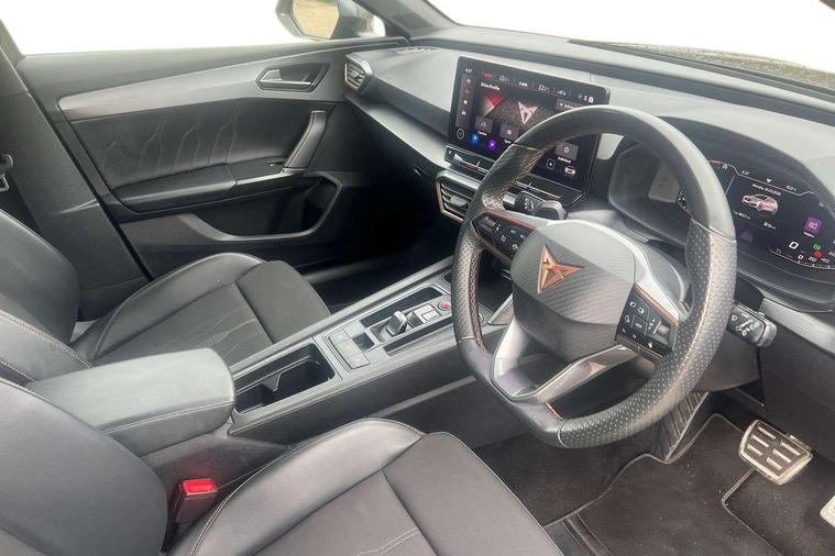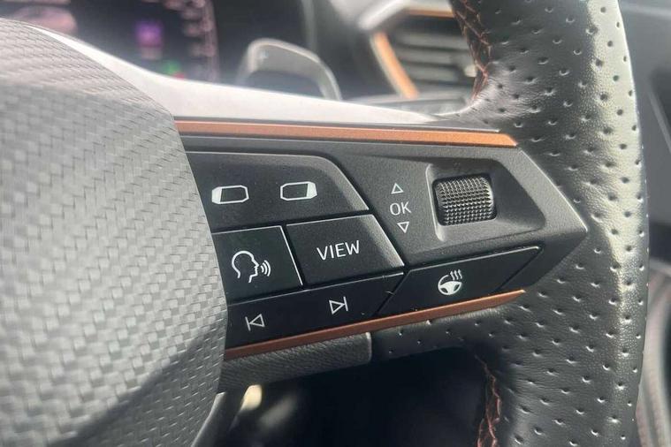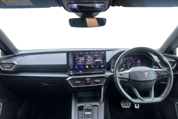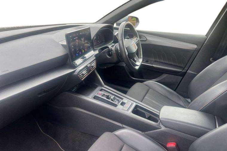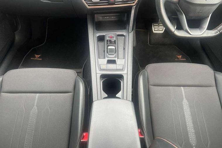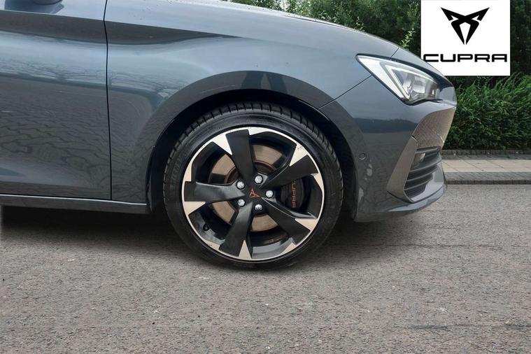 CUPRA drive profile selection with 4 modes (Comfort/Cupra/Sport/Individual), throttle response and gearshift mode, Digital cockpit, E-call, Electro mechanical speed sensitive power steering, Front assist with forward collision warning braking reaction to vehicles, pedestrians and cyclists, Full link smartphone integration with Mirror Link, wireless Apple CarPlay and wired Google Android Auto, Lane assist, Lockable tailgate, Park assist (inc front/rear parking sensors), Rear view camera, RPM, trip computer, outside temp gauge, instrument light brightness, low fuel warning light, lights on reminder, gearshift indicator, Service interval indicator, Start/stop system with regenerative braking, Sports suspension, XDS electronic differential lock and dynamic traction support, 7 speakers, Auxiliary input socket, Auto dimming rear view mirror, Body colour door handles, Body coloured bumpers, Cupra sports bumpers, Dark tinted rear windows, Electric front/rear windows, Electrically adjustable, heated and folding door mirrors, LED front fog lamps with cornering function, LED headlights with dynamic turn signals, tail lights, rear fog lights with rear coast to coast lighting, Rain sensing wipers, Rear diffuser with twin exhaust pipe on each side, Rear side wing doors, Rear wash/wipe, Separate daytime running light with automatic headlight control and coming home feature, Third brake light, 12v power supply in centre console, 3 seat bench in 2nd row, 5 headrests, 60/40 split rear bench seat with armrest, Ambient lighting (glovebox, footwell, ambient lighting multicoloured), Black headlining, CUPRA Leather flat bottomed, heated, perforated steering and gearshift paddles, Cupra sports pedals, Driver/passenger manual seat height adjustment, Dust/pollen filter, Folding boot cover, Four x USB Type C ports, Front and rear reading lights X 4, Front centre armrest, Front seats manual lumbar adjustment, Height/reach adjust steering wheel, Illuminated interior front door sills, Interior wraparound lighting, ISOFIX points in outer rear seats with top tether anchorage points, Jack and tool kit, Luggage tie-down hooks, PVC/Cloth upholstery with copper stitching + Cupra embossed logo on headrest, Single front passenger seat, Sports bucket seats, Storage pockets on rear of front seats, Sunvisors with illuminated mirror, Three zone climate control, Media system plus with navigation pack - Leon Cupra, 3 point seatbelts on all rear seats, ABS, Brake control system - ESC and brake booster, Child proof door locks, Cupra black brake calipers, Driver and front passenger airbags with front passenger airbag de-activation, front side and curtain airbags, Electronic parking brake, Extended safety system - seat belt tensioner, window closure and hazard lights, Hill hold control, Rear disc brakes, Seat belt reminder for front and rear seats, Tiredness recognition system, Tyre pressure monitoring system, Anti theft alarm system with interior monitoring in cab, backup horn and towing protection, KESSY Advanced - Keyless start, keyless entry, Locking wheel bolts, Chrome and copper interior detailing, 18" Machined sport black and silver alloy wheels with 92Y tyres, Space saver spare wheel,