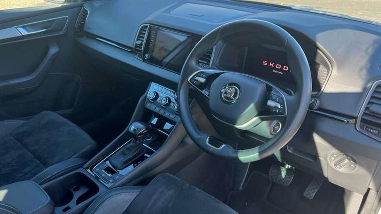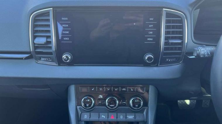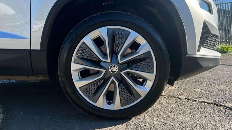 8" Digital display, Advanced driver attention and drowsiness monitor, Emergency services call system, Outside temperature gauge, Sensor for driver assistance systems, Service interval indicator, SmartLink wireless for Apple and wired for Android, Start/stop system with regenerative braking, USB C Port x 2 in front centre console, Virtual Cockpit - 10.25" digital display, Wireless smartphone charging, DAB radio with Bluetooth, USB connection, Acoustic glass, Aero front windscreen wipers with intermittent function, Auto dimming rear view mirror with light and rain sensors, Black electric window control buttons, Body colour door mirrors and handles, Electric front and rear windows with child proof lock, Heated rear windscreen, LED daytime running lights, LED rear lights with high functionality welcome effect and dynamic indicators, Light assistant (coming/leaving home/tunnel light), Plastic scuff plates in door apertures, Privacy glass, Rear side wing doors, Rear spoiler, Rear window wiper with washer system and intermittent control, Safety reflectors on front doors, Third brake light, 1.5 litre bottle holders in driver and front passenger door panels, 12V socket in boot, 12v socket in front centre armrest with storage compartment and rear air vents, 2 spoke leather heated multifunction steering wheel with DSG paddles, 2 x Tablet holder, 3 rear height adjustable headrests, 3 seat bench in 2nd row, 4 foldable roof handles with rear coat hooks, Black floor carpet, Chrome inner door handles, Foldable hooks in the boot, Front head restraints, Height adjustable front three point seats belts with tensioners, Height/reach adjust steering wheel, Ice scraper, Illuminated glovebox, Illuminated luggage compartment, Interior noise suppression, Isofix child seat preparation for front passenger seat, Isofix child seat preparation outer rear, Manual lumbar support for front seats, Pearl grey interior ceiling, Pen holder, Pollen filter, Rear boot cover, Rear reading lights, Rubbish bin door, Safety vest holder, Single front passenger seat, Storage box in upper central dashboard closed, Sunvisors with illuminated vanity mirrors, Textile floor mats, Ticket holder, Design Pack - Karoq, Non Smokers pack, Parking pack - Karoq, Automatic door unlocking in case of crash, Automatic fuel cut off in case of crash, Driver airbag, Electronic parking brake with auto hold function, Emergency rear braking signal, ESC (incl. ABS+MSR+ASR+EDS+HBA+DSR+RBS+MKB), Front side airbags, Head airbags, Hill hold control, Knee airbags, Passenger airbag with switch-off function, Pedestrian monitor, Seatbelt reminder signalisation and pretensioner for all seats, Three point seatbelts rear, Two tone horn, Tyre pressure monitor, Alarm with interior monitoring, back up horn and tilt sensor with safe function, Electronic engine immobiliser, Keyless entry and start/stop, Remote central locking with 2 remote folding keys, Black centre console, Chrome framed air vents, Satin black dashboard, Anti-theft wheel bolts protection, Breakdown and tool kit,
