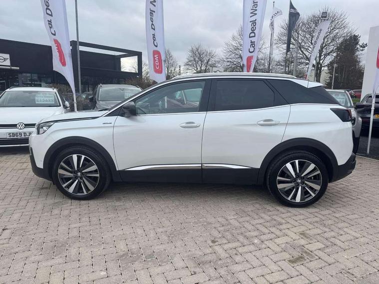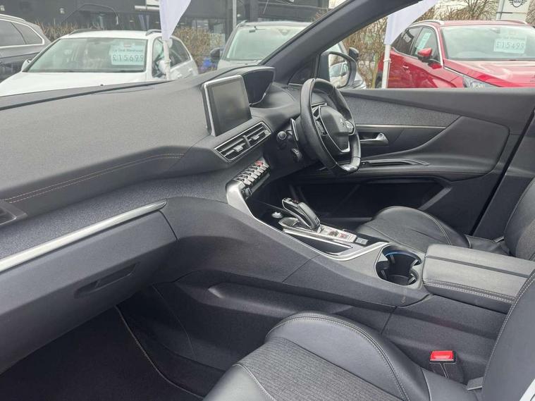 'Lights On' Reminder warning buzzer, 3D connected navigation + voice control + Peugeot connect SOS and assistance, Bluetooth telephone facility, Digital clock, Electric impulse automatic gearbox control, Exterior temperature indicator with ice warning, Front and rear parking sensors, Lane departure warning system, Mirror screen with mirror link, apple carplay and android auto, Multi function trip computer, PEUGEOT i-Cockpit with 8.0" capacitive touchscreen in centre console, PEUGEOT i-Cockpit with compact sports steering wheel, Smartphone charging plate, Speed limit recognition and recommendation, Sports button, Diesel particulate filter, Dynamic stability control and electronic anti-skid system, DAB Digital radio, Steering wheel mounted controls, USB socket, 2 X Rear number plate lights, Aluminium longitudinal roof bars, Auto self levelling headlights, Automatic hazard light activation upon heavy brake application, Automatic triggered rear windscreen wiper in reverse gear, Black and chrome front wing trim, Body colour door handles, Body colour rear spoiler with stainless steel edging trim, Body coloured bumpers, Body protectors (bottom of front and rear bumpers + wheel arches + protection at bottom of doors) in black, Chrome front fog light trim, Chrome rear bumper facia, Chrome side window trim, Dark tinted rear side windows + tailgate window, Door mirror mounted LED Peugeot lion approach lights, Electric operated/heated door mirrors, Front windscreen wiper with magic wash cleaning system, Full LED headlights with LED fog lights with static cornering function, sports front bumper and grille, Gloss black B and C pillar and aerodynamic deflector trim, Gloss black rear cluster connecting strip, Gloss black windscreen surround, GT Line emblem in satin copper (front wings and tailgate), Headlights left on audible warning, Heated rear windscreen with integrated antenna, LED daytime running lights, LED sequential scrolling front indicators, LED side indicator lights integrated into door mirrors, Lion grey front bumper scuff plate, Nera black door mirrors, One touch electric front/rear windows with pinch protection, Panoramic opening glass roof, Power folding door mirrors with blind spot detection indicator and auto dipping function in reverse gear, Radiator grille in chrome edge trim with chequered design and black 'PEUGEOT' lettering, Rear LED Peugeot signature 'Claw Effect' lights, Stainless steel roof arches, Twin exhaust tailpipe, 1/3 to 2/3 split folding rear seats, 12V Sockets in dashboard, rear cabin and load area, 2 cupholders in front centre console, 2 rear reading spotlights, 230V socket on rear centre console, 2x Rear coat hooks, 3x Isofix child seat fittings in the front passenger and outer rear seats, 4 Grab handles retractable and damped, Aikinite stitching in armrest, gear lever and dashboard facia, Automatic gear lever in satin chrome, Blue ambient lighting for connecting zone, Blue ambient lighting to front door panels, central storage and cupholders, Blue ambient lighting to head up instrument panel, Centre front armrest with butterfly wing opening and illuminated storage compartment, Driver and front passenger seat height adjustment, Driver seat manual adjustment, Dual zone automatic climate control, Electric power steering with reach and rake adjustable steering column, Fixing rings 4 in load compartment, Flocked front door pocket interior with blue ambient lighting, Flocked glovebox interior, Fold flat front passenger seat with picnic table, Footwell illumination, Front interior light with 2 reading spotlights and rear interior light with timer, Front passenger seat manual adjustments, Front seat back map pockets, Gear shift indicator, Illuminated glovebox, Illuminated vanity mirrors, Imila cloth/Leather upholstery, LED interior lighting in storage spaces and load area, Mistral floor mats with Aikinite contrast stitching, Mistral full grain perforated leather steering wheel with aikinite stitch detail and satin chrome 'GT Line' emblem, Rear armrest with ski flap and two cup holders, Rear centre console ventilation system, Reclining front seats, Roof LED interior lighting, Roof lining - Mistral black, Satin chrome dashboard trim, Satin chrome digital instrument panel and touchscreen trim, Satin chrome front door panel recess trim, Satin chrome interior door handles, Satin chrome scorpion's tail and toggle switch trim, Seatbelt not fastened audible and visual alert for front seats, Seatbelt unfastened on the move audible and visual alert for front and rear seats, Stainless Steel Scuff Plates, Two position boot floor, Driver sport pack - 3008 Auto, Safety pack - 3008, Safety Plus Pack - 3008, Visibility pack - 3008, 3x Rear three-point retractable seatbelts with force limiters in the outer rear seats, Adaptive driver and front passenger airbags with passenger airbag deactivation function, Anti lock braking system + Electronic brake force distribution, Driver and front passenger side airbags, Electric child locking functionality on rear windows and doors, Electric parking brake, Front and rear curtain airbags, Front optimised safety headrests and 3 x rear retractable headrests with height adjustable, Front three point retractable seatbelts with pre tensioners and force limiters, Front ventilated disc brakes and rear disc brakes, Height adjustable front seatbelts, Hill start assist, Tyre pressure sensor, Automatic door locking when moving off, Central locking button on dash, Deadlocks, Electric tailgate with Peugeot open & go system, Electronic immobiliser, Locking wheel bolts, Perimetric and volumetric alarm with lift and tilt sensor, Remote control central locking with two plip keys, Brumeo fabric Dashboard, front and rear door panel finish, 19" Washington two tone diamond cut alloy wheels, Tyre repair kit,