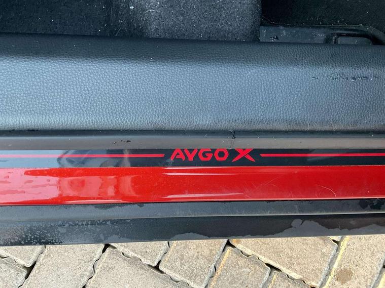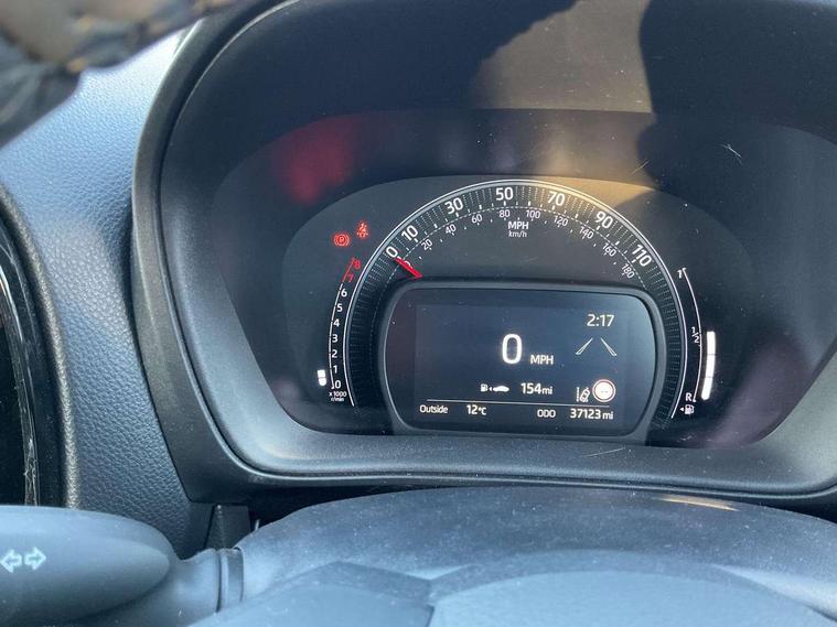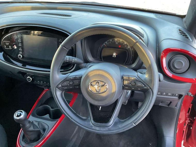 4.2" TFT colour screen, Adjustable speed limiter, Analogue speedometer, Bluetooth connectivity, Digital tachograph, Driver attention alert system, eCall emergency call system, Electric power steering, Intersection turn assist, Key reminder warning, Noise reduction kit, Pre collision system with emergency steering assist, Reversing camera with static guide lines, Smart phone integration with Apple car play/Android Auto, Speed limit display, Start and stop, Vehicle Stability Control (VSC), 4 speakers, DAB digital audio broadcast, Toyota touch 2 multimedia System with 8" Screen display, USB connector, Auto headlights, Auto wipers, Automatic headlights cut-off, Bicycle towing hook, Black fog light surrounds, Black side protection mouldings, Black wheel arch mouldings, Body colour door handles, Body coloured front bumper, Boot door scuff plate, Eclipse black rear bumper, Electric heated door mirrors, Follow me home headlights, Front fog lights, Front power windows, Gloss black door mirrors, Gloss black upper front grille, Headlight cut-off reminder, LED daytime running lights, LED front light guide, LED High mounted stop lamp, Manual day/night rear view mirror, Manual headlight levelling, Pagoda roof, Power adjustable door mirrors, Privacy glass, Projector halogen headlights, Rain sensor, Rear combination lights LED bulb type, Rear side wing doors, Rear windscreen defogger, Rear windscreen wiper, Short antenna, Variable intermittent windscreen wipers, 12v power outlet - front, 2 seat bench in 2nd row, 3 spoke leather steering wheel, 50/50 split folding rear seat, Adhesive roof headlining, Adjustable speed limiter switch on steering wheel, Audio and telephone switches on steering wheel, Auto air conditioning, Black insert on steering wheel, Black roof lining, Boot light, Centre room light, Chrome interior door handles, Chrome surround on air conditioning buttons, Clean air filter, Fabric upholstery, Floor mats, Front and rear cup holders, Front head rest deco art, Front head restraints, Height adjustable driver seat, Intelligent adaptive cruise control switch on steering wheel, ISOFIX child restraint system on rear seats, Lane departure alert switch on steering wheel, Leather gearshift knob, Manual tilt steering wheel, Manually reclining and sliding driver seat, Manually reclining and sliding front passenger seat, Multimedia switches on steering wheel, Pollen filter, Rear door pockets, Rear head restraints, Satin silver insert on gear shift knob, Single compartment glovebox with lights, Single front passenger seat, Soft tonneau cover, Sun visors with mirror on driver and passenger side, Voice recognition switch on steering wheel, Toyota safety sense pack - Aygo X, Anti lock braking system + Electronic brake force distribution, Child safety door lock, Emergency brake light signal (EBS), Hill start assist control (HAC), Passenger airbag on/off switch, Seat belt reminder for front and rear seats, Supplement restraints system (SRS) - 6 airbags, Traction control, Tyre pressure warning system, Immobiliser, Remote power door locks, Black wheel centre caps, Tyre repair kit,