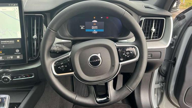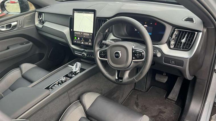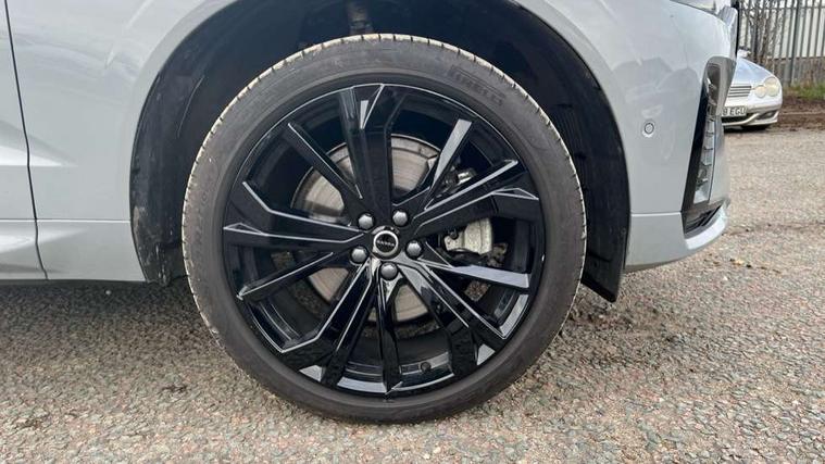 11.2" centre console touch screen, 12.3" Progressive Driver Display, 360 degree surround view parking camera with side proximity sensors, Adaptive cruise control, Adjustable steering wheel force, Android auto (Wired), Apple carplay (wired), Bluetooth handsfree system, Driver alert control with lane keeping aid, Emergency services call system, Front and rear park assist, Google Automotive Services, Intelligent speed assistance, Oncoming Lane Mitigation, PAS, Power operated tailgate with handsfree opening and closing, Service interval indicator, Speed limiter, Speed sensitive steering, Trip computer, Volvo cars services with app, Volvo on call with App, Wireless/Inductive Mobile Phone Charging, 8 speed automatic transmission with start/stop + manual change functions, DAB Digital radio, Premium Sound by Harman Kardon, dirac unison, dolby pro logic II surround sound, 13 speakers/600W output and fresh air subwoofer, Steering wheel remote infotainment controls, Adaptive brake lights with high level LED brake lights, Auto dimming interior + exterior mirrors, Automatic headlight levelling system, Automatic LED Headlights + Active high beam incorporating daytime running lights, Dark tinted windows for rear side windows and cargo area, Electric adjustable/heated/auto power folding door mirrors, Electric front+rear windows, Front aluminium tread plates, Heated front windscreen, High gloss black door mirrors and window surround, High gloss black front and rear bumper decoratives, High gloss black front grille, Surround, Strikethrough and Ironmark, High gloss black rear model, engine and volvo logo badges, Home safe and approach lighting, Integrated roof rails in high gloss black, Puddle lights, Rain sensor with automatic windscreen wiper activation, Rear side wing doors, Rear wiper, Roof antenna, Roof spoiler, Tinted windscreen, Visible VIN plate, 12V socket in front tunnel console and luggage compartment, 3 seat bench in 2nd row, 3 Spoke tailored steering wheel with chrome trim, 4 Zone electronic climate control, A-pillar parking ticket holder, Air purifier particulate matter (PM) 2.5 filter, B Pillar ventilation, Bright metal luggage scuff plate, Centre console cupholders and storage, Charcoal floor mats, Contour sports seats with nappa soft leather/textile upholstery, Front and rear courtesy lights, Front and rear door pocket illumination, Front cupholder illumination, Front footwell illumination, Front reading lights, Front seat cushion extensions, Glovebox compartment with illumination, Head restraints for all seats, Heated front seats, Heated steering wheel, Height/reach adjustable steering column, Illuminated luggage compartment, Illuminated vanity mirrors + ticket holder, Inner door release handle illumination, ISOFIX attachment on outer rear seats, Load cover, Load protection net, Multi directional lumbar support, Power driver seat with memory + exterior mirrors memory, Power height adjustable passenger seat, Power passenger seat with memory, Rear armrest with cupholder, Rear footwell and front and rear side step illumination, Rear reading lights, Rear seat concealed storage, Single front passenger seat, Tailgate illumination and ambient door lighting, Underfloor stowage compartment, Versatile split folding rear seat - 60/40, Driver assist pack without Adaptive cruise control - XC60, 5 three point seatbelts, City safety with steering support with Pedestrian + cyclist + front collision warning with full auto brake and rear auto brake, Drivers knee airbag, Dual stage driver/passenger airbags, Electronic parking brake with auto hold, First aid kit, Front seats SIPS airbags, Hill descent control - Off-road drive mode, Hill start assist, IC (Inflatable Curtains) - Full Length, Passenger airbag cut-off device, Power child locks on rear doors, Road sign information display, Run off Road Mitigation, Run off Road Protection, Seatbelt reminder and pretensioners, SIPS (Side Impact Protection System), Slippery road and hazard light alert, Stability and Traction Control with Spin control, Engine Drag Control and Corner Traction Control, Tyre pressure monitoring system, Vehicle deceleration control with Anti-lock Brake System, Electronic Brake Distribution and Emergency Brake Assist, Warning triangle, WHIPS whiplash protection system - front, Anti-theft alarm including immobiliser/volume sensor + level sensor, Key integrated remote control central locking + fuel flap with deadlocking system and auto open/close power windows, Keyless Drive (includes Keyless Entry and Keyless Start), Locking wheel nuts, Private locking for tailgate, 21" 5 Double spoke high gloss black alloy wheels, Summer tyres,