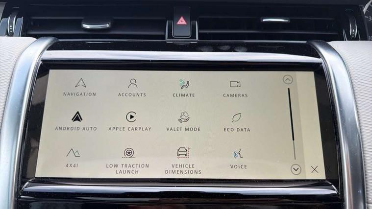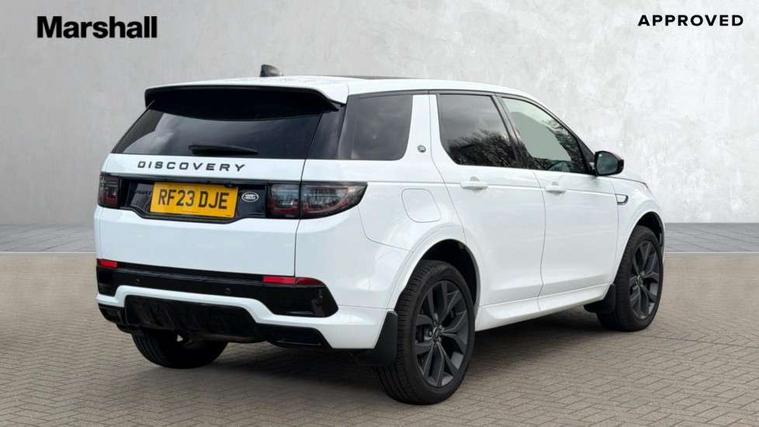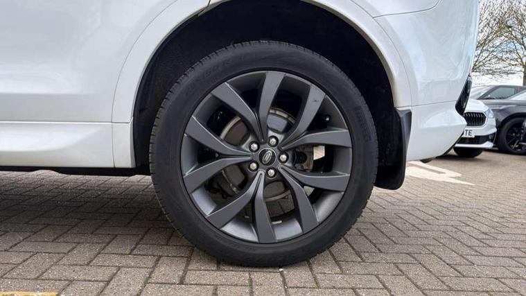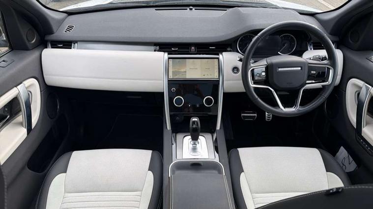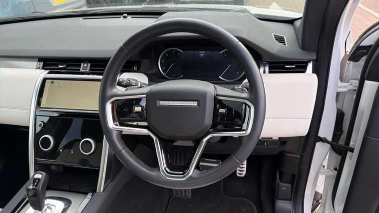 10" touch screen, Adaptive cruise control, Android Auto, Apple CarPlay, Blind spot assist, Clear exit monitor, Driver condition monitor, eCall emergency call system, Front and rear parking aid, InControl remote premium, Lane keep assist, Locking fuel flap, PAS, Pivi Pro connected navigation system with upgraded Infotainment, Powered tailgate/boot lid, Push button start, Rear collision monitor, Rear traffic monitor, Service interval indicator, Traffic sign recognition with adaptive speed limiter, Trip computer, Wade Sensing, All terrain progress control, Coil suspension system, Diesel particulate filter, Dynamic stability control, Efficient Driveline, Terrain Response 2, Bluetooth connectivity including audio streaming, Digital Audio Broadcast radio-DAB, Steering wheel mounted audio controls, 3rd brake light, Automatic headlight levelling, Automatic headlights, Black number plate plinth, Electric front/rear windows, Electric heated/power fold door mirrors with approach lights and auto dimming driver side, Front and rear recovery eyes, Heated rear window, Heated windscreen including heated washer jets, Privacy glass, R Dynamic badge, Rain sensing windscreen wipers, Rear fog lights, Rear side wing doors, Rear wing door, Rear wiper, 5 standard seating configuration, Bright metal pedals, Centre console with armrest, Footwell lights, Front and rear grab handles, Front passenger isofix child seat attachment, Loadspace cover, Loadspace light, Overhead lighting console, Overhead stowage for sunglasses, Rear headrests, Satin chrome gearshift paddles, Sunvisors with illuminated vanity mirrors, Tilt/reach adjustable steering wheel, Black exterior pack - Discovery sport R-Dynamic SE/HSE, Online pack with data plan - Discovery, 3 point seatbelts on all seats, ABS, Brake hold function, Child locks on rear doors, Collision mitigation braking system, Cornering brake control (CBC), Driver/Front Passenger airbags, Drivers knee airbag, Electronic brake force distribution, Electronic parking brake, Emergency brake assist, ESP + traction control, Hill descent control, Hill launch assist, Pedestrian airbag system, Rear seat ISOFIX, Roll stability control, Side and curtain airbags for front and 2nd row seats, Trailer stability control, Tyre pressure monitoring system, Battery Back Up System (BBUS) with tilt sensor, Global lock and unlock switch on driver door, Intrusion sensor, Keyless entry, Locking wheel nuts, Centre stack rails in noble chrome,