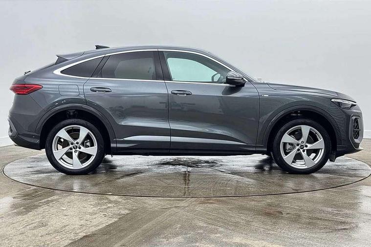 Adaptive cruise control, Advanced driver attention alert, Audi application store, Audi connect emergency call and service, Audi drive select, Audi smartphone interface, Audi virtual cockpit plus with 11.9" OLED colour display, Camera based traffic sign recognition, Fatigue monitor, Front cross traffic intersection assist, Lane departure warning system, MMI navigation plus with high resolution 14.5" OLED touchscreen colour display, Park assist plus, Parking system plus with 360 display, PAS, Reversing camera, Swerve assist and turn assist, Traffic sign based speed limiter, 2 USB-C ports in both the front and rear, Audi sound system impressive sound with 8 loudspeakers including centre speaker and subwoofer, 6-channel amplifier with a total output of 180 watts, DAB Digital radio, Smartphone compartment with wireless charging, Auto dimming rear view mirror, Body coloured door mirrors, Coming/leaving home lighting function, Electrically adjustable heated and folding + automatically dimming exterior mirrors, Front and rear electric windows, Front door sill trims with aluminium inlays, illuminated with 'S' logo, Grill frame, inlay and front air inlets in matt anthracite chrome, Headlight cleaning system, Heated rear window, High beam assist, High gloss window surrounds, LED headlights plus incl. digital DRL, dynamic coming and leaving home function with turning/all weather/motorway/manouevring and intersection lights, LED rear lights pro incl. dynamic rear indicators and illuminated light strip with animated coming and leaving home function, Logo projection light in exterior mirrors, Privacy glass, Projection third brake light for rear window in LED, Radiator grille in phantom black, Rear and side windows with heat insulating glass, Rear honeycombe grille in matt black with inlay in matt anthracite chrome, Rear side wing doors, Rear wash/wipe, S Line badge on the front wings, S line bumpers in contrasting Volcano grey metallic paint finish, Towbar preparation, Windscreen with acoustic glazing, 3 rear head restraints, 3 seat bench in 2nd row, 3 spoke leather steering wheel with multi-function buttons with touch control, flattened on top and bottom, with S badging and contrast stitching, 40:20:40 split folding rear seat bench with centre armrest and cup holders, Comfort centre armrest front, Deluxe 3 zone electronic climate control, Front and rear floor mats, Front seats with manual adjustment for position and 4-way electric lumbar support, Front sport seats with integrated head restraints, Headlining in black cloth, Heated front seats, i-Size child seat mounting on the front passenger side and outer rear seats, i-Size and top tether on the outer rear seats, Interior trim in aluminium look, Luggage compartment lid, electrically opening and closing, Manual steering column adjustment, S embossed logo on front sport seats, Single front passenger seat, Softwrap in leatherette, Stainless steel pedals and footrest, Steering wheel grips in perforated leather and shift paddles, Ambient lighting package plus - Q5, Storage and luggage compartment pack - Q5, 3x3 point rear seatbelts, ABS, Acoustic vehicle alerting system, Driver and front passenger airbag with passenger airbag deactivation, Electric child safety locks, First aid kit with warning triangle and high visibility vests, Front emergency brake assist, Front side airbags with head airbag system and front interaction airbag, Hill hold assist, Rear seat occupant reminder, Tyre pressure loss indicator, Anti theft alarm, Anti-theft wheel bolts, Remote control key with SAFELOCK and keyless go, Accent surfaces and control buttons in gloss black, Anthracite matt brushed aluminium inlays with linear embossing, Black dashboard with contrast stitching, Upper and lower interior elements in artificial leather, Tyre repair kit,