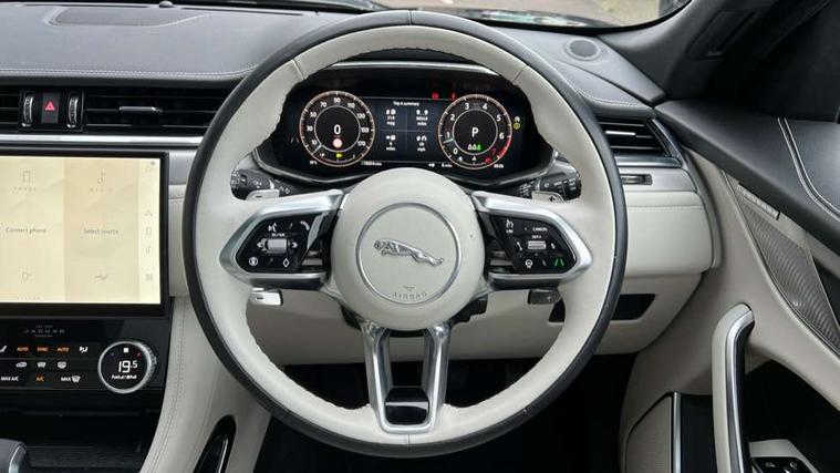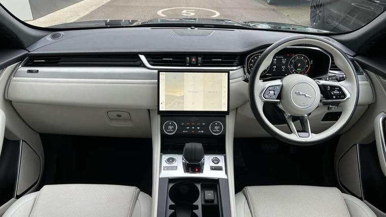 11.4" touchscreen, Android Auto, Apple car play, Bluetooth connectivity, Driver alert system, Driver condition monitor, eCall emergency call system, Eco driving style assistant, Electric power assisted steering, InControl remote, Jaguar Toggle shift selector, Lane departure warning system, Lane keep assist, Outside temperature gauge, Personalisation profile management, Pivi pro connected navigation system with app interface and media storage, Pro services and wifi hotspot, Push button starter, Service interval indicator, Speed proportional steering, Start up sequence with movement in dials and lighting, Traffic sign recognition with adaptive speed limiter, Trip computer, Voice control system, Wireless device charging, 8 speed automatic transmission, All terrain progress control, All Wheel Drive (AWD), Open differential with torque vectoring by braking, AM/FM radio, Bluetooth streaming, DAB Radio (Digital Audio Broadcasting), Dynamic volume control, InControl apps, InControl protect, iPod integration, 3 flash lane change indicators, AHBA and animated directional indicators, Approach Illumination, Auto dimming rear view mirror, Automatic headlights, Electric heated/power fold memory door mirrors with approach lights and auto dimming driver side, Electric windows with one touch open/close and anti trap, F-Pace and R Dynamic badge, Green tinted glass, Heated front windscreen + heated washer jets, Heated rear window with timer, Jaguar script and leaper, LED High level third brake light, LED tail lights, Metal load space scuff plates, Non acoustic front windscreen, R Dynamic badge on side door, Rain sensor windscreen wipers, Rear fog lights, Rear metal tread plates, Rear side wing doors, Rear wiper, Trailer stability assist, Variable front intermittent wipers, 12V power point front, 3 rear headrests, 3 seat bench in 2nd row, Additional power sockets - Two additional USB sockets in rear centre console and one 12V socket in trunk, Air distribution speed, Centre armrest console, Centre console with side storage, Deletion loadspace storage rails, Door sill tread plates, Fold flat front seats, Front centre armrest with storage compartment, Front door storage space, Glovebox finisher with jaguar script, Heated steering wheel, Hooks in loadspace, Illuminated glovebox, Interior front door handles with separate locking switches, ISOFIX on outer rear seats, Jaguar sense, Leather steering wheel, Luggage tie downs in loadspace, Mist sensing, Multifunction steering wheel, Overhead lighting console, Overhead stowage for sunglasses, Passive front head restraints, Premium carpet mats, Rear air vents, Rear armrest with twin cupholders, Rear centre headrest, Rear door storage space, Reversible boot floor, Satin chrome gearshift paddles, Shopping bag hook, Single front passenger seat, Sunvisors with illuminated vanity mirrors, Twin front cupholders with cover, Online Pack with data plan - F-Pace, 355mm front brakes and 325mm rear brakes, 3x3 point rear seatbelts, ABS, All surface progress control (ASPC), Brake pad warning light, DSC - Dynamic Stability Control, Electric parking brake (EPB), Emergency brake assist, Front airbags with passenger seat occupant detector, Front and rear seatbelt reminder, Front side airbags, Full length side window curtain airbag, Hill launch assist, Power operated child locks, Traction control, Tyre pressure monitoring system, Immobiliser, Keyless start, Locking wheel nuts, Perimeter alarm, Remote central locking, Valet mode,