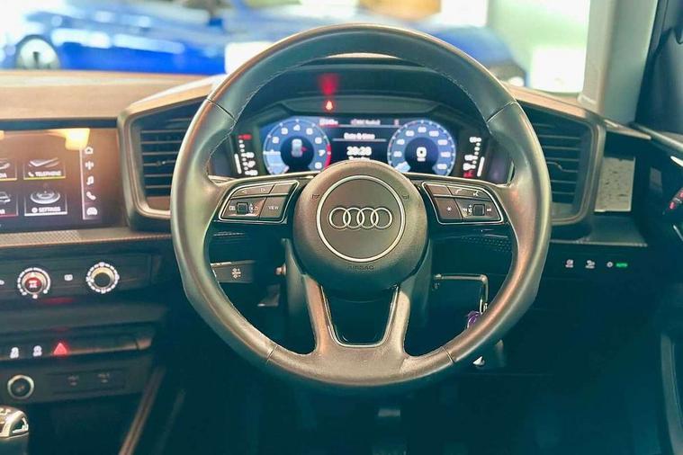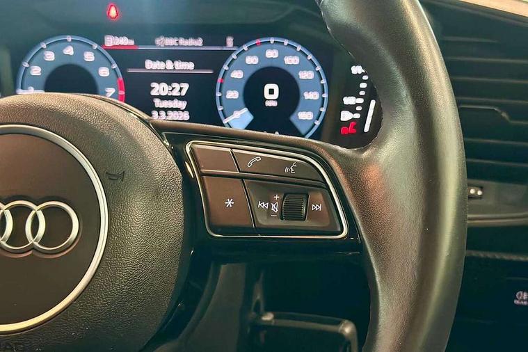10.25" Digital instrument cluster display classis style instrument dials + speed, odometer, time, outside temperature, telephone menu + fuel level warning, Audi smartphone interface with connect compatible smartphone via USB directly MMI display + Nav, music, third party apps controlled via MMI controller, Automatic start/stop system, Bluetooth interface, Driver's information system, Electromechanical power steering, Emergency e-call, Emergency services call system, Lane departure warning system, Service interval indicator, Speed limiter, Voice control system, Washer fluid level indicator, Dynamic suspension, 1 x SDXC card reader, 2 x USB type C connection points, 6 passive loudspeakers, DAB Digital radio, MMI radio plus with 8.8" colour MMI display screen and MMI touch, Auto dimming rear view mirror, Body coloured bumpers, Body coloured door mirrors, Electric front and rear windows, Electrically adjustable, heated, folding door mirrors with integrated LED side indicator, Front side air inlets with front spoiler lip and rear diffuser in matt black grained, Heat insulating glass windscreen and side windows, Heated rear windscreen, High level LED brake light, LED headlights with LED rear lights + dynamic rear indicators + headlight adjustment and high beam, turning light + LED daytime running lights, Radiator grille in matt black, Rain and light sensors, Rear fog lights, Rear side wing doors, Rear wing door, Rear wiper, 12V socket in centre console with two cup holders, 3 rear seats with headrests, 3 seat bench in 2nd row, 3 spoke leather multifunction plus steering wheel, 40:60 Split folding rear seat or folded fully, Air vents, door handle recesses and centre console in black, Delta cloth upholstery, Driver and passenger seat with manual height adjust with forward and backwards adjustment, Front head restraints, Front passenger seat, Front/rear floor mats, Height and reach adjustable steering wheel, ISOFIX child seat mounting for front passenger and outer rear seats including top tether attachment point of outer rear seats, Leather gear knob with aluminium trim, Leatherette handbrake grip, Luggage compartment light with front and rear reading lights, Manual air conditioning, Titanium grey cloth headlining, Luggage compartment pack - A1, 3x3 point rear seatbelts, Audi pre-sense front with pedestrain and cyclist recognition, Brake assist function, Driver and front passenger airbag with front side and head airbags, Electronic Stability Control including ABS, EBD, ASR and EDL, Front passenger airbag deactivation switch, Hill hold assist, Manual rear child locks, Seatbelt height adjustment for front seats, Seatbelt monitoring, Tyre pressure warning light, Warning triangle and first aid kit, Anti theft alarm, Anti theft wheel bolts and loose wheel warning, Immobiliser, Remote central locking with 2 foldaway keys, Black inlays polygon structure, 15" 5 arm design alloy wheels,