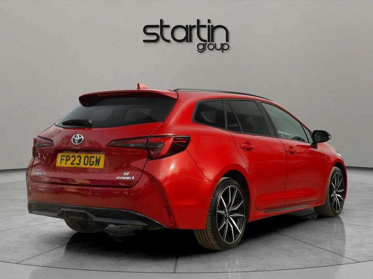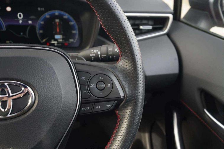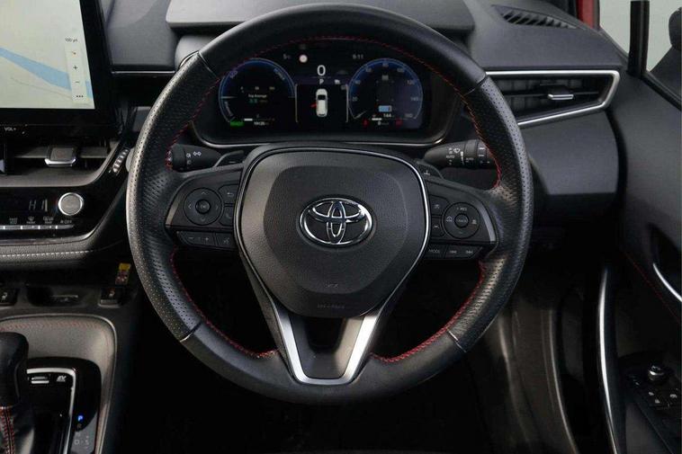 10.5" Multimedia display screen, Attention assist, Bluetooth telephone connectivity, Connected car functionality upgrade, tracker, remote status and e-care, Drive mode select (Eco, Normal), E-call, Electrically assisted power steering, EV drive indicator, Front and rear parking sensors with auto brake, Full Digital 12.3" TFT Digital Combimeter, Key reminder warning, Lane Departure Alert (LDA) switch on steering wheel, Memory on adjustable speed limiter, MyT connected services, Proactive driving assist (PDA), Reversing camera, Smart entry and push button start with GR Logo, Smartphone integration with Apple CarPlay and wired android auto, Tailgate, Toyota remote services, Toyota smart connect navigation, Wireless charger, Gasoline particulate filter, Vehicle Stability Control (VSC), 6 speakers, AM/FM radio, DAB Digital radio, Front USB-C in centre console, Front USB-C in dashboard, Smart voice assist/ Voice recognition, USB and Aux in connectors + 12V front outlet, Anti-jam protection on power windows, Auto up and down function on all power windows, Automatic folding mirrors, Automatic headlights with high beam assist, Black centre and side air vents, Black roof rails, Black toyota logo in front, Body coloured bumpers, Body coloured door mirrors, Body coloured outside door handles, Dark chrome lower grille, Electrochromatic mirror, Follow me home headlights, GR Sport dark chrome front mesh grille and black rear grille, GR Sport exclusive under guard, GR sport scuff plates, Height memory opening on power tailgate, LED daytime running lights, LED dual beam projector headlights, LED front fog lights, LED High mounted stop light, LED rear combi lights with LED lightguide, Manual headlight levelling system, New grille pattern, Noise reduction layer on front windows, Noise reduction layer on windscreen, Piano black diffuser, Power adjustable heated door mirrors, Power front windows, Power rear windows, Power tailgate with kick sensor, Privacy glass with UV filter, Rain sensing wipers, Rear side wing doors, Rear window defogger, Rear window wiper, Remote tailgate release on key, Reverse tilting door mirrors, Rocker and door lower moulding, Roof spoiler, Satin chrome insert on front air vents, Satin chrome insert on front door assist grips, Satin chrome inserts on rear passenger air vents, Satin silver front spoiler, Shark fin antenna, Tailgate release with push button, Tailgate remote release in cabin, Time adjustment on intermittent wiper, Turning signal integrated indicators in door mirrors, Unique lower skirt, Unique side rocker with black insert, UV-filter on driver and passenger windows, 12v power outlet - luggage side, 2 Shopping bag hooks in luggage compartment, 3 rear headrests, 3 seat bench in 2nd row, 3 spoke leather steering wheel with satin insert/red stitching + gear knob, 4 tie down hooks in luggage compartment, 60/40 split folding rear seat, Adaptive cruise control (ACC) switch on steering wheel, Adjustable speed limiter switch on steering wheel, Audio, multimedia and telephone switches on steering wheel, Black armrest on centre console box, Black gear shift console, Boot underfloor storage, Driver and front passenger personal light, Driver and passenger assist grip, Driver and passenger seatback pockets, Driver and passenger sun visor with mirror and light, Dual level boot floor, Dual sided deck board in boot, Dual zone automatic air conditioning with ECO mode switch, Fabric/synthetic leather upholstery, Front and rear cup and bottle holders, Front and rear door pockets, Front head restraints, Front passenger seat, Front sliding synthetic leather armrest, GR Sports seats with partial leather bolsters, Heated seats, Illuminated entry system in room lamp, ISOFIX seat fixing (2 fixings on rear outer seats), LED boot light, Luggage utility boot rails, Manual height adjustable for driver and front passenger seat, Manually tilt with sliding driver and front passenger seat, Paddle shifts, Pollen filter, Power window switches with satin chrome inserts, Rear armrest with 2 cupholders, Rear passenger coat hooks (2), Rear passenger personal lights, Red stitching on gear shift, Remote air conditioning, Retractable tonneau cover with luggage partition net, Satin chrome inside door handles, Satin chrome surround on heater control panel, Satin chrome surround on speedometer, Side storage in boot, Sliding armrest on centre console box, Slow opening glovebox with lights, Textile floor mats, Tilt/telescopic steering column, Tonneau cover with under floor storage, Toyota easy flat system, Voice recognition switch on steering wheel, Whiplash Injury Lessening (WIL) feature (active headrest) for seats, White ambient lighting on open tray and front cup holder, Toyota safety sense 3 pack - Corolla, 3x3 point rear seatbelts, Adjustable driver and front passenger seat belt extender to top anchor point, Anti lock braking system + Electronic brake force distribution, Brake assist function, Child locks on rear doors, Downhill Assist Control (DAC), Electronic parking brake, Emergency brake light signal (EBS), Front passenger airbag on/off switch, Front seatbelt reminder, HAC-Hill-start Assist Control, Rear seat belt reminder, Seatbelt pretensioners and force limiters, Supplemental restraint system (SRS) 7 airbags - dual driver, dual side curtain, side impact and driver knee airbags, Traction control, Tyre pressure warning system, Acoustic vehicle alert system (AVAS), Alarm with motion sensor and immobilizer, Power passenger window lock, Remote central locking + deadlocks, GR Sport interior and exterior styling, Satin chrome dash trim, Soft touch texture on upper dashboard, Stitching on lower dashboard, 18" black machined face 10 spoke alloy wheels, Tyre repair kit, Unique wheel finish with red wheel cap,