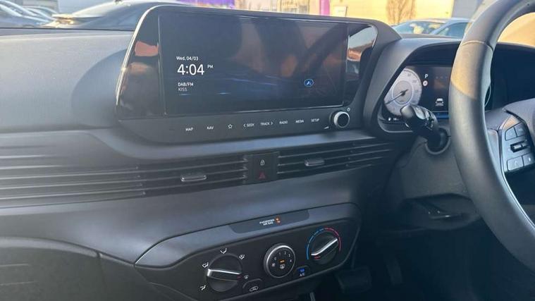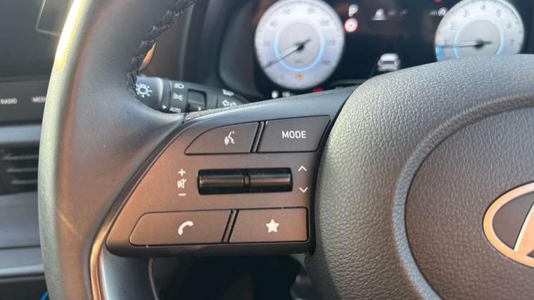 10.25" touchscreen + navigation, 2nd Gen eCall, 8" Touchscreen DAB Radio with android auto and apple carplay, Cruise control + speed limiter, Forward collision assist with car, pedestrian and cycle detection, Intelligent speed assist, Intelligent speed limit warning, Lane follow assist, Lane keep assist, PAS, Rear parking sensor, Rear view camera with dynamic guidelines, USB C port front, Automatic headlights with dusk sensor, Electric adjustable heated door mirrors, Front grille mesh pattern design, High beam assist, LED 3rd brake light, LED daytime running lights, LED Headlights, LED taillights, Rain sensor, Rear side wing doors, Rear wiper, Repositioned flat metal hyundai emblem, Trailer wiring, 3 seat bench in 2nd row, Adjustable head restraints, Air conditioning, Cloth upholstery, Floor mats, Leather steering wheel, Single front passenger seat, 3x3 point rear seatbelts, ABS with front and rear diagonally split, Autonomous emergency braking, Child locks on rear doors, Front ventilated disc brakes, Rear solid disc brakes, Tyre pressure monitoring system, 16" alloy wheels, Tyre repair kit,