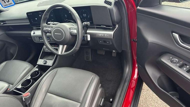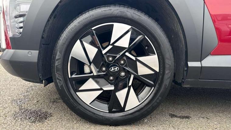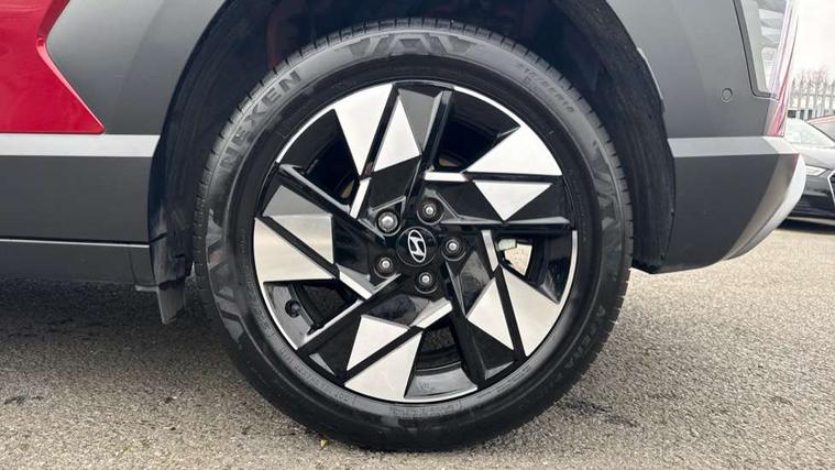 12.3" touchscreen centre console display satellite navigation with bluelink, live services and mapcare, Blind spot collision avoidance assist, Blind spot view monitor, Bluetooth connectivity with voice recognition, Digital clock, Driver status monitor (DSM), Driver supervision instrument cluster with 12.3" LCD display, eCall emergency call system, Feature on demand - Enabled, Forward collision avoidance assist (FCA 1.5) - Car, pededstrian, cycle and junction turning, Front parking sensor, HDA - Highway Drive Assist Level 1.5, Height adjustable power tailgate, Intelligent speed limit assist, Lane follow assist, Lane keep assist, Leading vehicle departure alert (LVDA), Parking Collision Avoidance Assist-Reverse (PCA-R), Parking distance warning - side, Parking system with rear camera and guidance system, PAS, Rear cross traffic collision avoidance (RCCA), Rear parking sensor, Roadside assistance, Safe exit warning (SEW), Smart cruise control with stop and go functionality, Smartphone integration compatible with Apple CarPlay and Android Auto, Surround view monitor, Windscreen washer fluid sensor and warning indicator, Wireless phone charging pad, 2 front USB C and 2 rear USB C charging points, Bose Premium Audio system with 7 premium speakers + subwoofer, DAB Digital radio, Steering wheel audio, phone and cruise controls, Auto dimming rear view mirror, Automatic headlights with dusk sensor, Automatic windscreen wipers with rain sensor, Black painted wheel arch inserts, Body colour bumpers, Body colour exterior door handles, Body coloured door mirrors, Door mirror LED indicator lights, Electric front windows with anti-trap mechanism and one touch control, Electric rear windows, Electric sunroof, Electrically adjustable and heated door mirrors, Horizon centre LED DRL, LED projector headlights, LED upper and lower rear lights, Power folding door mirrors, Privacy glass - Rear windows and tailgate, Rear roof spoiler with integrated LED brake light, Rear side wing doors, Rear skid plate - silver, Rear wiper, Roof rails, Solar glass with front door glass and windscreen, Tinted glass in front and rear doors, Windscreen auto defog function, 12V power outlet in front console, 2 zone climate control, 3 seat bench in 2nd row, 40/20/40 split folding rear seat, Adjustable head restraints, Ambient lighting, Driver and passenger front seat pockets, Driver's seat electric adjustments, Driver's seat lumbar support, Driver/passenger sunvisors and illuminated vanity mirrors, Floor mats, Front passenger's seat electric adjustments, Heated front seats, Heated rear seats, Heated steering wheel, Height/reach adjustable steering column, Isofix rear child seat fastenings, Leather upholstery, Leather wrapped steering wheel, LED centre interior light, LED front interior light, Luggage compartment LED lighting, Luggage net, Luggage shelf, Metal paint effect interior door handles, Parcel shelf, Rear centre armrest, Rear centre console with air vents, Shift by wire SBW, Single front passenger seat, Ventilated front seats, Vertical adjustment rear head restraints, Trailer wiring package - Kona, Airbag - front, front side, curtain and centre front airbag, Anti-lock brake system (ABS), Childproof rear door locks, Downhill brake control, EBD + Brake Assist, Electric parking brake, Electronic stability control, Fasten seatbelt reminder, Fixed 3 point for second row centre passenger seatbelt, Front seatbelt pretensioners, Height adjustable front seatbelts, Hill start assist control (HAC), Passenger airbag deactivate switch, Rear seat alert, Traction control, Tyre pressure monitoring system, Alarm/immobiliser, Deadlocks, Folding key, Locking wheel nuts, Remote central locking, Smart key with keyless entry and engine start/stop button, Five year annual vehicle health checks, 18" Alloy wheels, Temporary mobility kit (TMK),