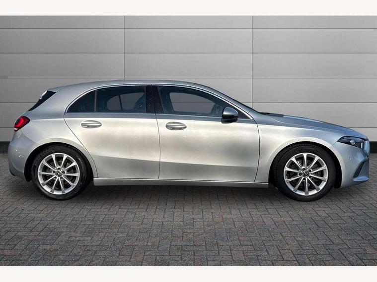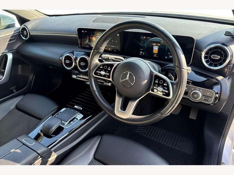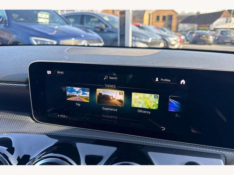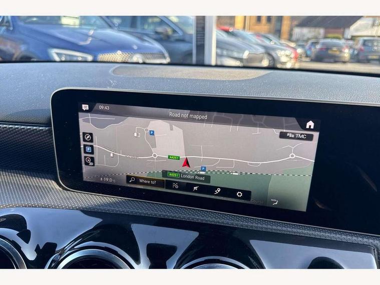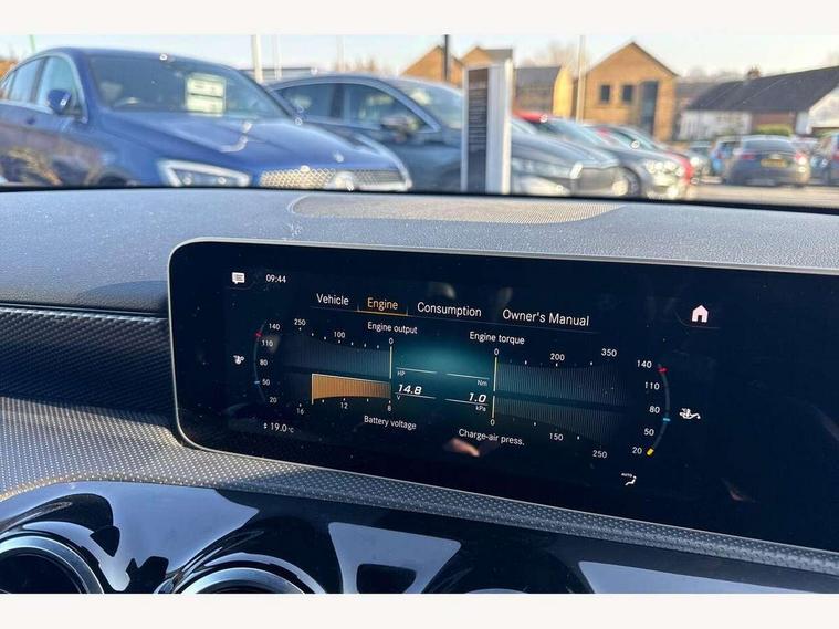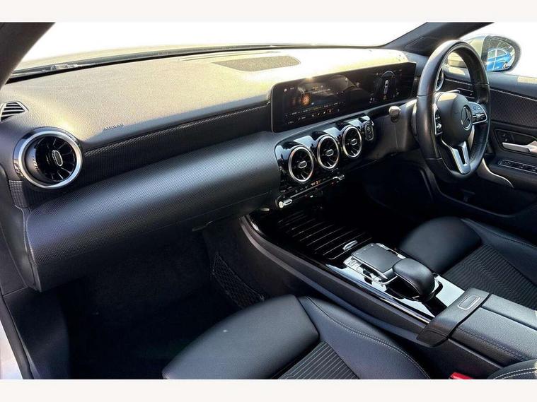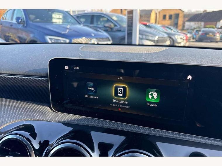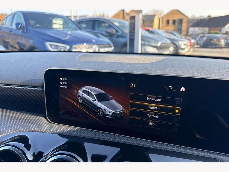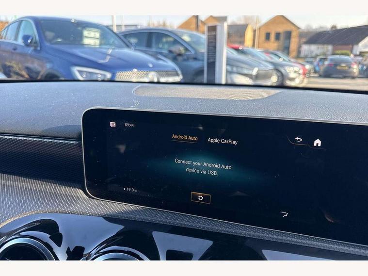 10.25" media display, 180 degree rear view camera with parking guidelines, 7" colour screen in instrument panel, Active lane keep assist, Active park assist with parktronic system including front and rear parking sensors, Attention assist, Brake pad wear indicator warning light, Cruise control + speed limiter, Direct steering, Dual bluetooth interfaces, DYNAMIC SELECT with a choice of driving modes (ECO, Comfort, Sport and Individual), ECO start/stop function, Fluid level warning indicator for fuel, oil, coolant and washer fluid, Hard-disk navigation, Hey Mercedes Voice activation, Lamp failure indicator, MBUX multimedia system with DAB digital radio and touchpad including satellite navigation, Mercedes me connect including emergency call system, accident recovery, breakdown management and maintenance, Outside temperature gauge, Owners manual in English, Pre-installation for car sharing, Pre-installation for Vehicle Monitoring, Pre-installation for Vehicle Setup, Preinstallation for Mercedes Benz link, Service indicator (ASSYST), Smartphone integration with Apple CarPlay and Android auto, Speed sensitive power steering, Trip computer, Wireless charging, Lowered comfort suspension, Rear axle torsion beam, 2 USB ports (type C) in rear stowage compartment and one in front of center console, 6 speakers, DAB Digital radio, Mercedes-Benz sound system - 100W, 4 Electric Front and Rear windows, Adaptive brake lights, Black weather strip, Body colour bumpers, Body colour door handles, Body colour side skirt, Body coloured door mirrors, Chrome beltline trim, Diamond radiator grille with black pins with one louvre in silver + chrome insert, Electric adjustable and heated door mirrors with integrated LED side indicators, Exhaust system - Twin visible tailpipes in polished stainless steel, Headlamp assist automatic headlamp activation, Heated glass rear windscreen + timer control, LED high performance headlamps with integrated LED daytime running lights, LED tail lamp, LED third brake light, Radio aerial, Rain sensing windscreen wipers with two sensitivity settings, Rear fog lights, Rear wiper, Window line trim strip in chrome, 3 Spoke leather multi function steering wheel, 40:20:40 split folding rear seats, Artico man-made leather/Fleron fabric upholstery, Auto Mercedes-Benz child seat recognition sensor, Black air vents with surround in silver chrome, Black roof lining, Controller on centre console with chrome surround, Front centre armrest with storage compartment, Front comfort seats with adjustable head restraints, Front door sills with Mercedes benz lettering, Front seat backs luggage nets, Front seat cushion length adjustment, Gearshift paddles on steering wheel, Heated front seats, Height/reach adjustable steering column, ISOFIX and top tether child seat fixing points in two outer rear seats, Manual height adjustable front seats, Rear head restraints, Seat occupancy sensor for front passenger seat, Spectacles compartment for driver, Stowage compartment in centre console with retractable cover, Sunvisors with illuminated vanity mirrors, Touchpad on center console, Twin front cupholders, Two zone thermotronic luxury automatic climate control, Velour floor mats, Light and sight pack - A Class, Mirror package - A Class, Seat comfort pack - A Class, 3 rear 3 point seatbelts, ABS with Brake Assist, Active bonnet, Active brake assist includes forward collision warning system with autonomous braking, Adaptive brake assist with hold function and hill start assist, Black seatbelts, Childproof locks manually operated for rear doors and electrically operated for rear power windows, Crash responsive emergency lighting, Driver and passenger head and side airbags, Drivers knee airbag, Dual stage driver/passenger airbags, Electronic parking brake, ESP curve dynamic assist, ESP with ASR, Front and rear seatbelt reminder, Tyre pressure monitoring system, Warning triangle and first aid kit, Window airbags, Alarm system/interior protection/immobiliser, Keyless Go, Remote central locking and crash sensor with emergency opening function, Dark carbon fibre interior trim, 17" 10 spoke light alloy wheels painted in vanadium silver, Summer tyres, Tirefit sealant kit,