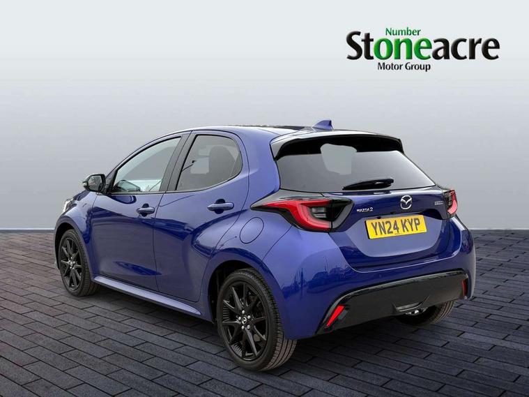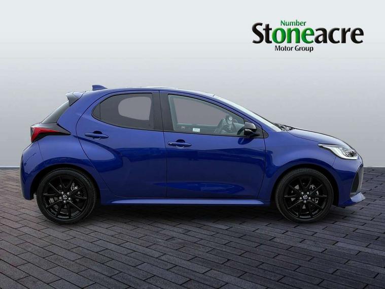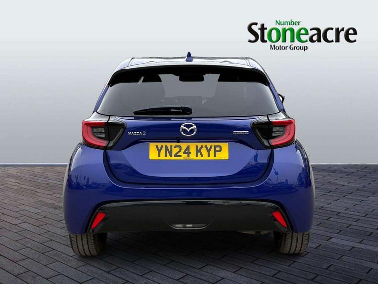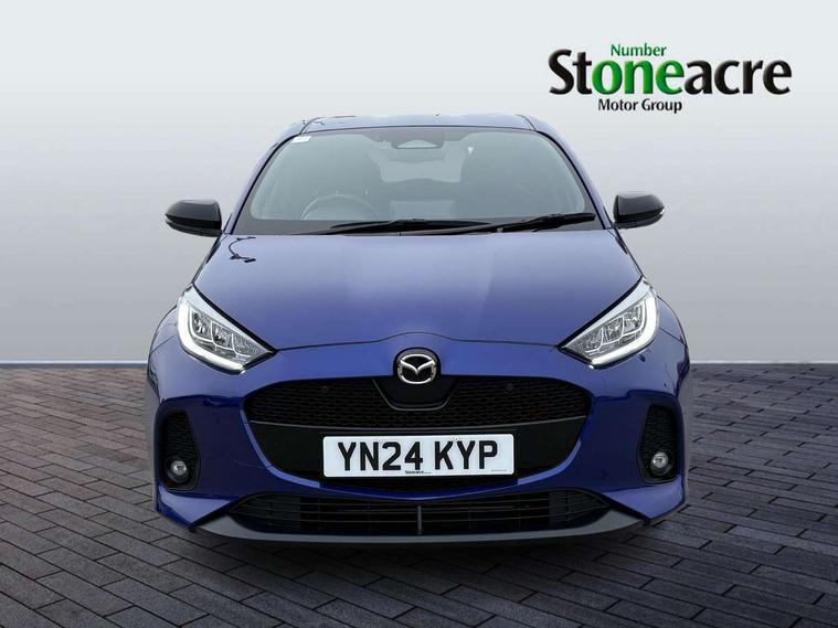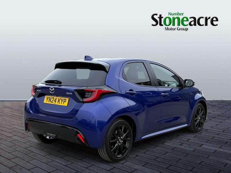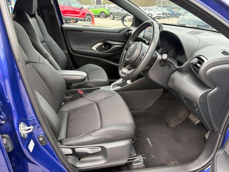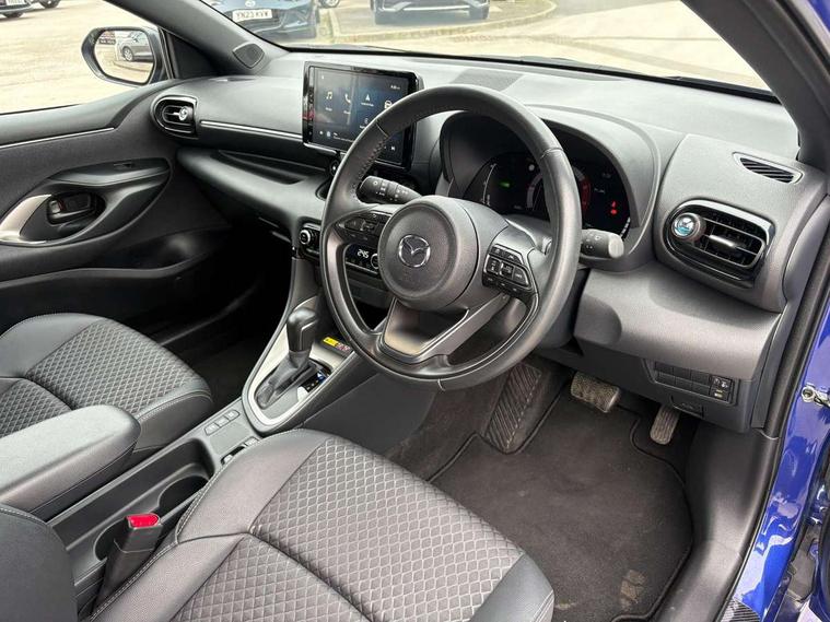 7" Digital instrument cluster with speedometer and hybrid system indicator, Adjustable speed limiter, Drive mode selector (Eco, Normal and Power), Driver attention alert system, Dynamic radar cruise control, E-call with GPS, EV drive mode, Front and rear parking sensors, Integrated bluetooth, Lane tracing assist includes Lane centering, Lane departure alert, Steering assist and Vehicle sway warning, Multi-information display, PAS, Push button start and stop, Qi wireless charging, Rear cross traffic alert with auto braking, Reversing camera, Road sign assist - RSA, Service indicator, Tailgate, Trip computer, Wireless Apple CarPlay and wired Android Auto, i-stop, 6 speaker audio system and 9" colour screen centre display, DAB Digital radio, Steering wheel mounted audio/bluetooth controls, USB type C port, Auto dimming rear view mirror, Auto folding door mirrors, Automatic high beam - AHB, Body coloured front bumper, Body coloured rear bumper with gloss black lower mouldings, Coming home function, Dusk sensing headlights, Front and rear electric windows, Gloss black electric adjustable/heated door mirrors, Gloss black front grille, Gloss black rear roof spoiler, Hybrid badge, LED front fog lights, LED headlights with manual headlight levelling and LED daytime running lights, LED rear combination light with LED turn signals, LED third brake light, Mazda unique tailgate garnish, Piano black lower window garnish, Privacy glass in rear side and rear windows, Rain sensing front wipers with adjustable sensitivity and speed, Rear side wing doors, Rear wash wiper, Shark fin antenna, Welcome lighting, 12V power outlet, 3 seat bench in 2nd row, 60/40 split fold down rear seats, Ambient lighting, Black roof lining in pillar and ceiling, Cloth/Synthetic leather upholstery, Driver, front passenger and two rear door storage, Driver, Front passenger and two rear grab handles with coathooks, Drivers seat manual slide recline and height adjustment, Drivers/front passengers with covered vanity mirrors and light, Dual zone climate control, Front centre armrest with console storage, Front head restraints, Front passenger seat manual slide, recline and height adjust, Front sport seats, Glovebox, Interior courtesy light with LED illumination, ISOFIX child seat anchorage points attached on outer rear seats, Leather handbrake, Leather wrapped gearshift, Leather wrapped steering wheel with telescopic and tilt adjustment, Luggage compartment light, Seatback pocket at rear of the front passenger seat, Single front passenger seat, Three height adjustable rear head restraints, 2x3 point front seatbelts with pre-tensioners, 3 point seatbelts on all rear seats, Airbags - driver and front passenger, Anti-lock braking system (ABS), Blind spot monitoring with rear cross parking support brake function, Collision mitigation braking system, Driver and passenger central airbags, Dynamic stability control + Traction control, Electronic parking brake with auto-hold and auto-disengage function, Emergency brake light signal (EBS), ESP, Front and rear curtain airbags, Front passenger airbag cut-off switch, Front side airbags, Hill start assist control (HAC), Manual child lock in rear doors, Pre-crash safety system - PCS, Rear parking support brake, Regenerative braking system, Seatbelt reminder audible warning, Tyre pressure monitoring system, Deadlocking system, Remote central locking, Smart keyless entry, Thatcham approved immobiliser and alarm, 17" Alloy wheels, Emergency tyre repair kit,