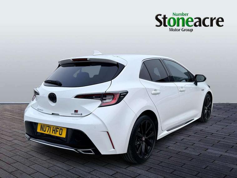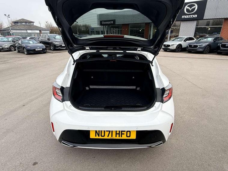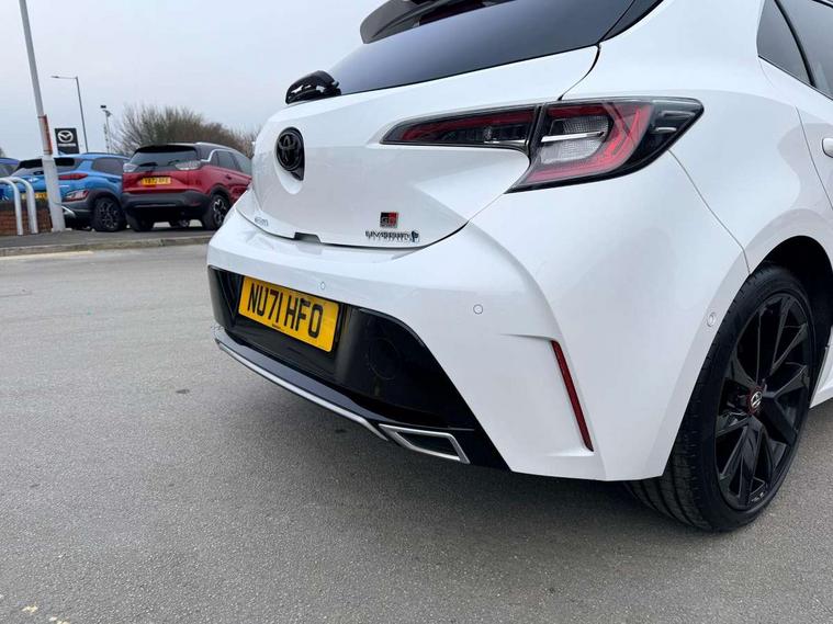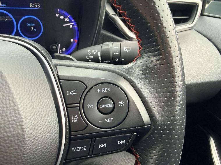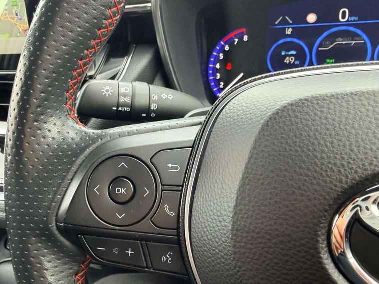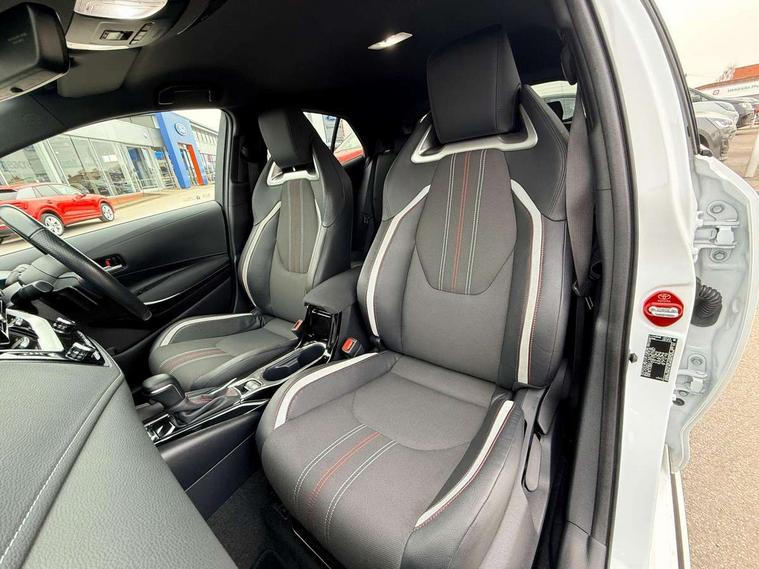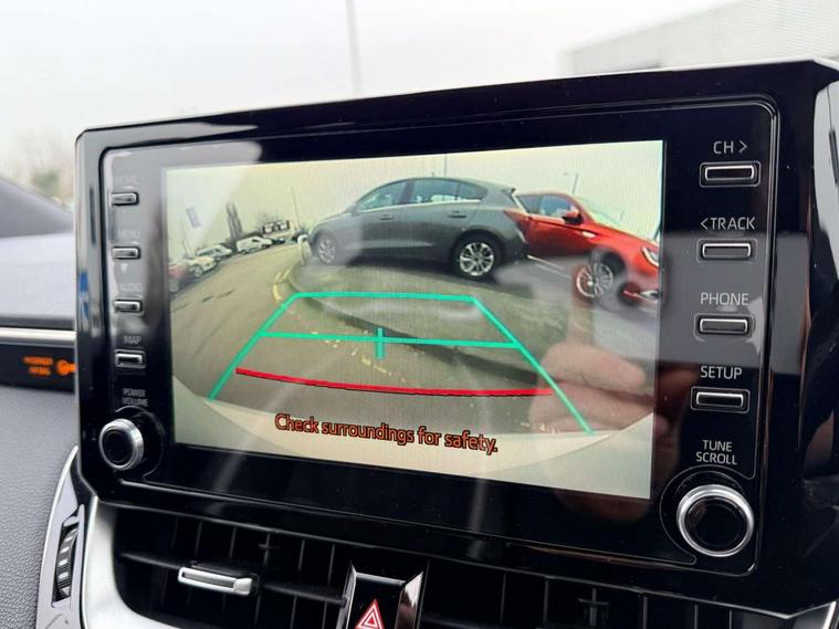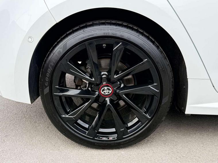 7" Multi information display screen, Adjustable speed limiter switch on steering wheel, Bluetooth telephone connectivity, Connected car functionality upgrade, tracker, remote status and e-care, E-call, Electrically assisted power steering, EV drive indicator, Head up Display, Intelligent park assist, Lane Departure Alert (LDA) switch on steering wheel, Memory on adjustable speed limiter, Push button start, Reversing camera, Smartphone integration with Apple CarPlay and Android auto, Voice recognition switch on steering wheel, Gasoline particulate filter, Vehicle Stability Control (VSC), 6 speakers, 8" Touchscreen with MM19 Multimedia system and voice recognition, AM/FM radio, DAB Digital radio, Toyota touch 2 with go navigation system, USB and Aux in connectors + 12V front outlet, Anti-jam protection on power windows, Auto dimming inside rear view mirror, Auto up and down function on all power windows, Automatic folding mirrors, Automatic headlights with high beam assist, Black toyota logo in front, Black window frames, Body colour rear spoiler, Body coloured bumpers, Body coloured door mirrors, Body coloured outside door handles, Follow me home headlights, LED daytime running lights, LED front fog lights, LED Headlights, LED High mounted stop light, LED rear combi lights with LED lightguide, Piano black surround on lower front grille with dark chrome mesh effect, Power adjustable heated door mirrors, Power front windows, Power rear windows, Privacy glass, Rain sensing wipers, Rear bumper with satin chrome plated inserts, Rear window defogger, Rear window wiper, Reverse tilting door mirrors, Shark fin antenna, Time adjustment on intermittent wiper, Turning signal integrated indicators in door mirrors, Unique lower skirt, Unique side rocker with black insert, UV-filter on driver and passenger windows, 3 rear headrests, 3 spoke leather steering wheel + gear knob, 60/40 split folding rear seat, Alcantara/partial leather upholstery, Audio, multimedia and telephone switches on steering wheel, Boot light, Centre room light, Clean air filter, Driver and front passenger personal light, Driver and passenger assist grip, Driver and passenger seatback pockets, Driver and passenger sun visor with mirror and light, Dual zone automatic air conditioning with ECO mode switch, Dynamic rador cruise control (with RSA) switch on steering wheel, Fabric armrests, Front and rear cup and bottle holders, Front door pockets, Front head restraints, Heated driver and front passenger seats, Illuminated entry system in room lamp, ISOFIX seat fixing (2 fixings on rear outer seats), Leather gear shift with satin chrome on gear shift console, Manual height adjustable for driver and front passenger seat, Paddle shifts, Parcel shelf, Pollen filter, Power adjustable lumbar support on driver seat, Power window switches with satin chrome inserts, Rear armrest with 2 cupholders, Rear passenger coat hooks (2), Satin chrome inside door handles, Shopping bag hooks in luggage compartment, Sliding armrest on centre console box, Slow opening glovebox with lights, Sports seats, Tilt/telescopic steering column, WIL - Whiplash Injury Lessening seats, Parking pack - Corolla, Toyota safety sense 2 pack - Corolla, 3x3 point rear seatbelts, Adjustable driver and front passenger seat belt extender to top anchor point, Anti lock braking system + Electronic brake force distribution, Brake assist function, Downhill Assist Control (DAC), Electronic parking brake, Emergency brake light signal (EBS), Front passenger airbag on/off switch, Front seatbelt reminder, HAC-Hill-start Assist Control, Rear seat belt reminder, Seatbelt pretensioners and force limiters, Supplemental restraint system (SRS) 7 airbags - dual driver, dual side curtain, side impact and driver knee airbags, Traction control, Tyre pressure warning system, Acoustic vehicle alert system (AVAS), Alarm with motion sensor and immobilizer, Remote central locking + deadlocks, Smart entry, Satin chrome dash trim, Soft touch texture on uppder dashboard, Space saver spare wheel, Unique wheel finish with red wheel cap,