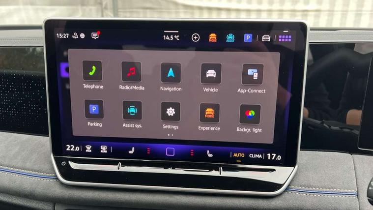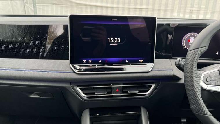 Adaptive cruise control (ACC), Advanced driver attention and drowsiness monitor, Bluetooth mobile phone interface, Digital Cockpit Pro - 10.25" high resolution dash display screen with customisable menus and information, Driving profile selection, Dynamic road sign display, E-Sim card for online connectivity, Easy Open and Close Electric tailgate with virtual pedal activation, eCall emergency call service, Extended safety system (proactive passenger protection system), Front Assist - Autonomous emergency braking with pedestrian and cyclist monitoring, IDA voice assistance with ChatGPT, Inductive smartphone charging without external antenna connection, Lane change system, Side assist, Rear traffic alert and Exit warning system, Multifunction front facing camera, Navigation system, Oncoming vehicle braking when turning including swerve support, Park assist plus with park distance control, Power assisted steering with speed sensitive, Start/stop system with regenerative braking, Tailgate/trunk lid unlocking from outside, Warning signal and warning light for front and rear seatbelts not fastened, Wireless App-Connect, Front shock absorption, Front wheel drive, 12.9" infotainment display, Digital radio reception (DAB), Diversity antenna for FM reception, 3D rear combination light special signal pattern, Ambient lighting with logo projection, Auto dimming interior rear view mirror, Automatic headlight control system, Body coloured door handles, Chrome moldings on the side windows, Coming/leaving home lighting function, Dynamic headlight range control with dynamic cornering light, Exterior mirrors convex on the left and aspherical on the right, Heat insulating glass in side and rear windows, Heat insulating windshield, High Beam Assist, automatic sensing for switching between dipped and main beam, High level 3rd brake light, Highway light, Illuminated door handle recesses, Illuminated lightline between headlamps, Illuminated logo front and rear, Laminated safety glass windshield, LED headlamps, LED separate signature day time running light, Poor weather light, Rain sensor windscreen wipers, Rear fog light on one side, reversing light on both sides, Rear side wing doors, Rear wiper, Remote electrically foldable door mirrors, puddle lights and reverse activated passenger's door mirror, 12V outlet in center console rear and in luggage compartment, 12V socket in centre console, 2 USB-C ports in the front, 2 USB-C charging sockets on the centre console in rear, charging capacity up to 45 W, 230V socket in luggage compartment, 3 bench rear seats in 2nd row, Air care climatronic 3 zone air conditioning system with rear air conditioning control panel, Black roof lining, Brushed stainless steel pedals, Carpet mats, front and rear, Centre console with illuminated storage compartment with sliding cover and two drinks holders, Chrome elements on the mirror switch and power window switches and door pulls, Door and side trim panel insert in Art velour, Drivers seat with manual adjustment of seat travel and height and backrest angle with thigh support longitudinally sliding, Front centre armrest, Front integrated head restraints, Front massage seats, Front scuff plates in aluminium, Front seats with manual height adjustment, Greyson sports cloth upholstery with inner side bolsters in artvelours, Interior ambient lighting with 30 colour options, ISOFIX anchors for child seats on outer rear seats and front passenger seat compatible with i-Size, Leather wrapped heated multifunction steering wheel with touch control and paddle shift, Mechanical rear seat release, Power adjustable lumbar support in front, Rear bench seat, split folding, longitudinally movable and folding with load-through hatch and centre armrest, Safety optimised front head restraints, Single front passenger seat, Sports comfort seats in front, Sun visors with illuminated vanity mirrors, Three rear head restraints, 3 point seat belt for centre rear seats, 3 Point seat belts in front with pretensioners, 3 point seatbelts in outer rear with ECE label, Driver and front passenger airbag with front passenger airbag deactivation, Electronic parking brake with auto hold, First aid kit with warning triangle and safety vest, Front and rear curtain airbags, Front centre airbag, Front disc brakes 1ZA, Hill start assist, Manual child proof rear door locks, Rear disc brakes, Rear side airbags, Two tone horn, Tyre pressure monitoring system, Alarm with interior protection, Central locking system keyless entry, Interior door handle in matte chrome, Soul instrument panel,