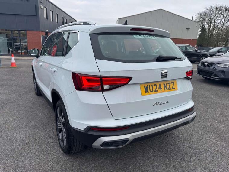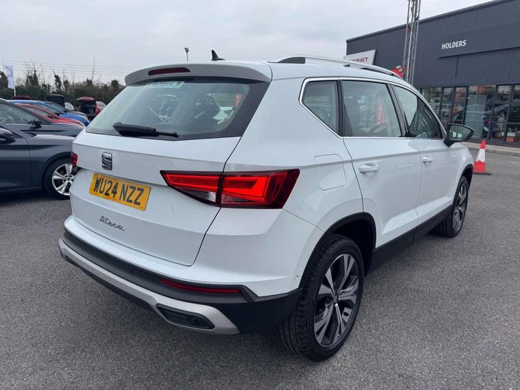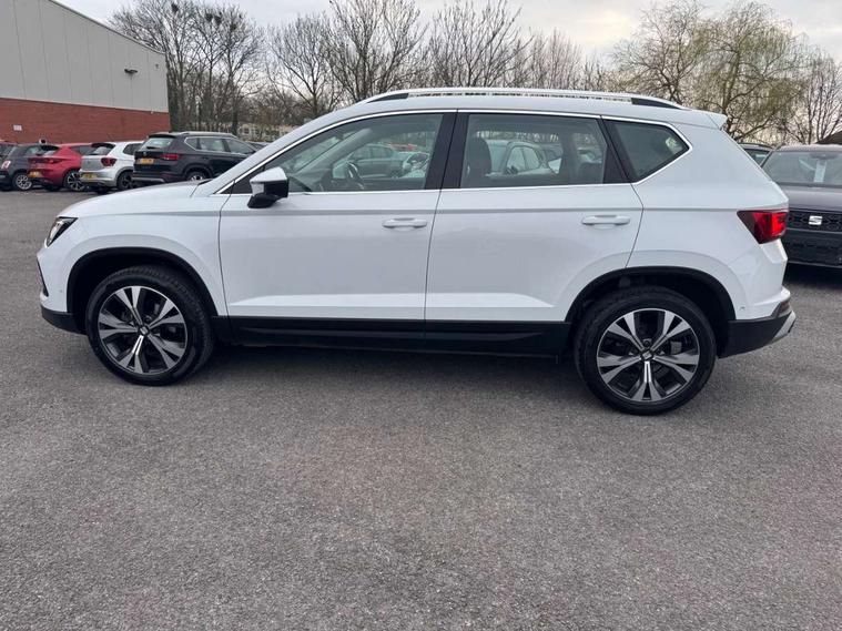 8" Digital cockpit, Colour multi-function on board computer display, Cruise control system with speed limiter, E-call, Outside temperature gauge, PAS, SEAT drive profile with driving experience button - Normal, Sport, Eco and Individual mode, steering and throttle response, Self parking functionality (includes front and rear parking sensors), Start/stop system, Tailgate, Trip computer, Wireless full link smartphone integration, Wireless phone charger, Steering wheel mounted audio/phone controls, Black wheel arch surrounds, Body colour bumpers, Chrome front grille frame, Chrome roof rails, Chrome side window trim, Daytime running lights, Door mirrors with welcome light silhouette, Dynamic headlight range control with self adjusting whilst driving, Electric adjustable/heated/folding door mirrors, Front and rear electric windows, Full LED headlamps with lens and LED front fog lamps with cornering function, LED rear tail lights with dynamic indicators, Rear fog lights, Rear side wing doors, Rear wash/wipe, Simulated exhaust pipes, Variable front intermittent wipers, 12V socket in front, 3 seat bench in 2nd row, 60/40 split folding rear seat, Cloth upholstery with front comfort seats, Drawer under right front seat, Dual zone climate control, Front and rear head restraints, Front centre armrest, Front seat back storage pockets, Height adjustable driver and passenger seat with lumbar adjustment, ISOFIX points in outer rear seats with top tether anchorage points, Leather steering wheel and gear knob, Rear armrest and easy back seat release mechanism from boot, Single front passenger seat, Interior lighting pack - Ateca, Navigation system pack with DAB - Ateca, 3x3 point rear seatbelts, ABS, Traction control system (TCS), Electronic stability control (ESC) and Electronic differential lock system (XDS), Airbags - Driver and front passenger airbag with deactivation, front side, two curtain and driver's knee airbags, Electric parking brake with auto hold function, Front and rear seatbelt reminder, Front assist with autonomous emergency braking, Hill hold control, Manual rear child locks, Single tone horn, Tiredness recognition system, Traction control, Tyre pressure monitoring system, Alarm, Keyless entry, Locking wheel bolts, Remote central locking, Chrome interior detailing, 18" Performance machined alloy wheels 36/2 in nuclear grey,