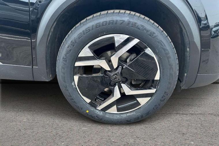 Bluetooth telephone facility, Driver attention warning, E-call, Exterior temperature indicator with ice warning, Front and rear parking sensors, Multi function trip computer, PEUGEOT i-Cockpit with 10" high definition capacitive touchscreen, PEUGEOT i-Cockpit with compact steering wheel, PEUGEOT i-Cockpit with configurable headup instrument panel, Speed limit recognition and recommendation, Wireless mirror screen with apple carplay and android auto, Petrol Particulate Filter, 1x USB-C socket in rear and 1x USB-A socket in rear, 2 USB-C ports in the front, 6 speakers radio with mp3 compatible, DAB Radio (Digital Audio Broadcasting), 2 X Rear number plate lights, Automatic hazard light activation upon heavy brake application, Black front wing trim with gloss black detail, Body coloured exterior door handles, Colour coded rear roof spoiler, Colour coded roof, Dark tinted rear side and tailgate windows, Diamond black mirror shells, Eco LED headlights, Electric, heated, and power folding door mirrors, Electrochrome rear view mirror, Front bumper - Meteor grey lower trim, Gloss black finish on B pillar, Gloss black rear cluster connecting strip, Gloss black roof bars, Headlights left on audible warning, LED daytime running lights with distinctive 3 claw signature, LED side indicator lights integrated into door mirrors, LED third brake light, Model designation badges front and rear, One touch electric front/rear windows with pinch protection, Radiator grille - Body coloured top edge trim, Radiator grille - body coloured vertical chequered grille, Rear full LED 3D peugeot signature claw effect lights with daylight function, Rear reversing lights, Rear side wing doors, Rear windscreen wiper triggered automatically in reverse gear, Tailgate with heated rear windscreen and wiper blade, Twin chromed exhaust pipes, Wheel arch extensions, 1/3 to 2/3 split folding rear seats, 12V socket, 3 seat bench in 2nd row, Automatic air conditioning with pollen and active carbon filter, Central front armrest with storage compartment, Driver and front passenger comfort seats, Driver seat manual adjustment - height, longitudinal and back rest angle, Electric power steering with reach and rake adjustable steering column, Front LED interior light with 2 reading spotlights and rear interior light with timer, Front passenger seat manual adjustment - height, longitudinal and back rest angle, High centre console, Leather steering wheel, Multifunction steering wheel, Piano keys: Gloss black and chrome toggle switches to access main functions of the vehicle and touchscreen functions, Roof lining - Mistral black, Seatbelt unfastened on the move audible and visual alert for front and rear seats, Single front passenger seat, Tri material cloth/leather effect upholstery, Visibility pack - 2008, 2x 2nd row ISOFIX child seat mountings, ABS (Anti-lock Braking System) with EBD (Electronic Brakeforce Distribution) and EBA (Emergency Braking Assistance), Active safety brake with night function/cyclists/pedestrians, Adaptive driver and front passenger airbags with passenger airbag deactivation function, Child locking functionality on rear doors, Driver/front passenger side airbags, Electric parking brake, ESP (Electronic Stability Program) + Hill Start Assist, Front and rear curtain airbags, Front and rear disc brakes, Front and rear three-point retractable seatbelts, with force limiters, Front optimised safety headrests and rear retractable headrests (x3), height adjustable, Tyre pressure sensor, Automatic door locking when moving off, Deadlocks, Electronic code immobiliser, Thatcham category 1 alarm, Carbon effect Dashboard, front and rear door panel finish, 17" Karakoy diamond cut alloy wheels,