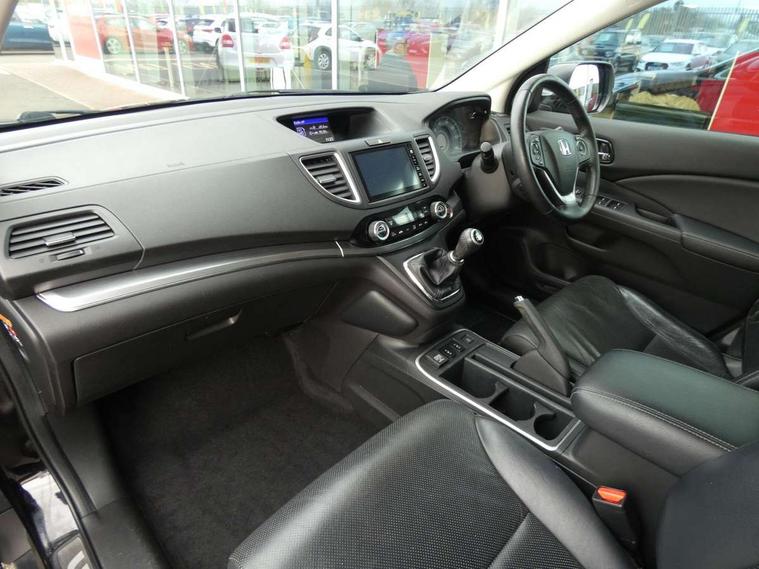 Bluetooth hands free telephone connection, Connect Navigation with 7" touchscreen, Digital Radio, Radio/CD/Mp3, Aha app integration, internet browsing, Cruise control, Electric power steering, Electric tailgate release, Front and rear parking sensors, Intelligent multi info display, Rear view camera, Service interval indicator, Speed limiter, Vehicle stability assist, 6 speakers, Steering wheel mounted controls, Subwoofer, USB/iPod connection, Aspheric door mirrors, Auto dimming rear view mirror, Automatic headlights with dusk sensor, Body colour bumpers, Body colour door handles, Body colour roof rails, Chrome door sill plates, Chrome rear garnish, Cornering light, Daytime running lights, Door mirrors tilt when reversing, Electric front windows/one touch facility, Electric rear windows + one touch facility, Electrically adjustable and heated door mirrors, Electrically retractable door mirrors, Front fog lights, Headlight washers, HID Headlights, High beam assist, Panoramic opening glass sunroof, Privacy glass, Rain sensor, Rear wiper, Shark fin roof aerial, Trailer stability assist, Welcome home function, 60/40 split folding rear seat, 8 way electric adjustable drivers seat, Accessory sockets, Ambient interior lighting, Boot light, Cargo hooks, Chrome interior door handles, Courtesy lights, Driver's electric adjustable lumbar support, Driver/passenger sunvisors with illuminated vanity mirrors, Dual zone automatic climate control, Electric lumbar adjustment on passenger's seat, Footwell ambient lighting, Front centre armrest, Front map lights, Front passenger seat height adjust, Front seatback pockets, Heated front seats, Illuminated glovebox, Isofix child seat preparation, Leather steering wheel and gear knob, Leather upholstery, Rear air vents, Rear centre armrest, Rear headrests, Tilt/telescopic adjustable steering wheel, Tonneau cover, 5 x 3 point seatbelts, ABS/EBD, Anti-whiplash front headrests, Brake assist function, City safety braking system, Deflation detection system, Dual front SRS airbags, Front and rear curtain airbags, Front side airbags, Hill start assist, Passenger airbag deactivate switch, Seatbelt warning, Honda super locks, Immobiliser, Remote keyless entry, Security alarm, Brushed alloy inlays, Temporary spare wheel,